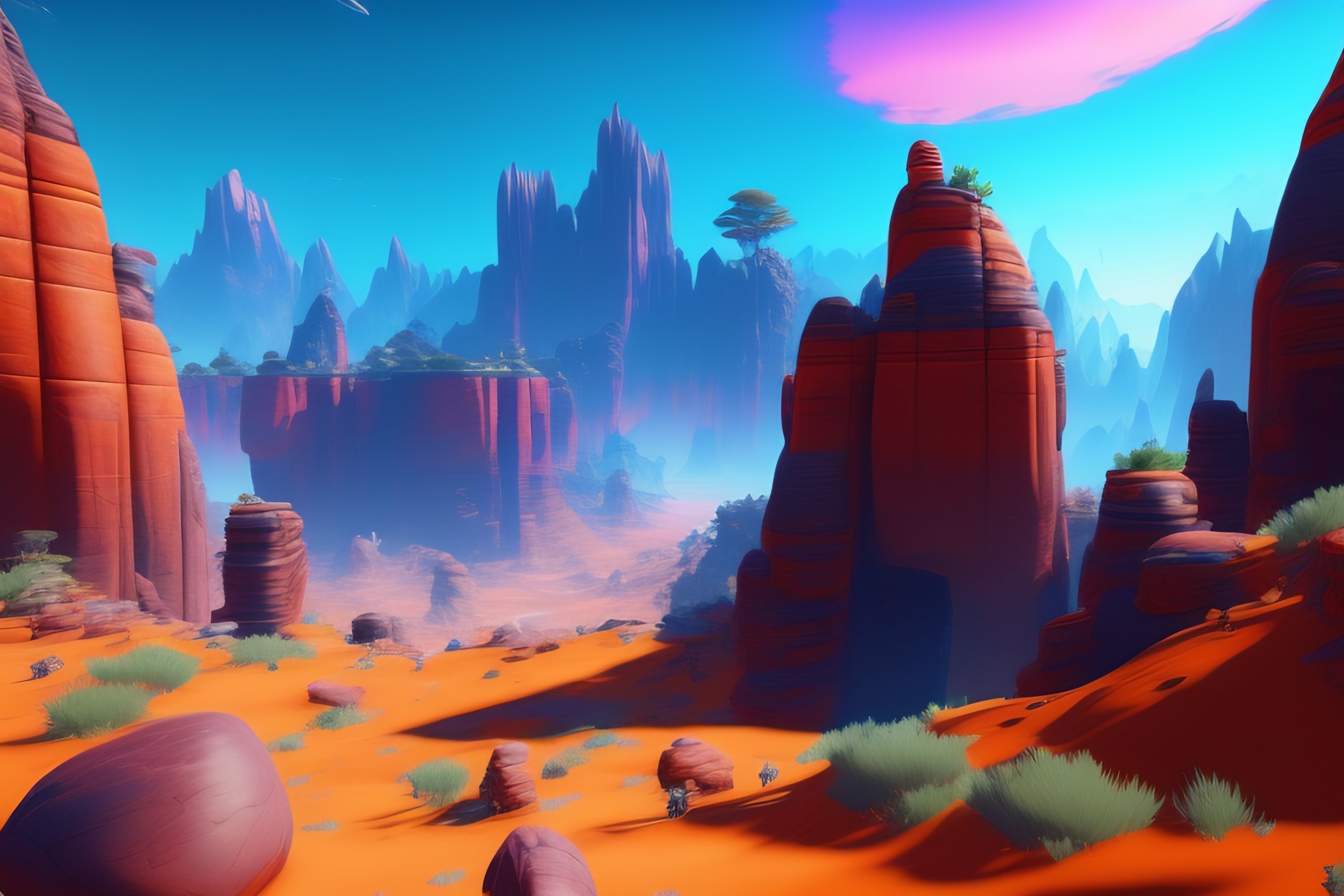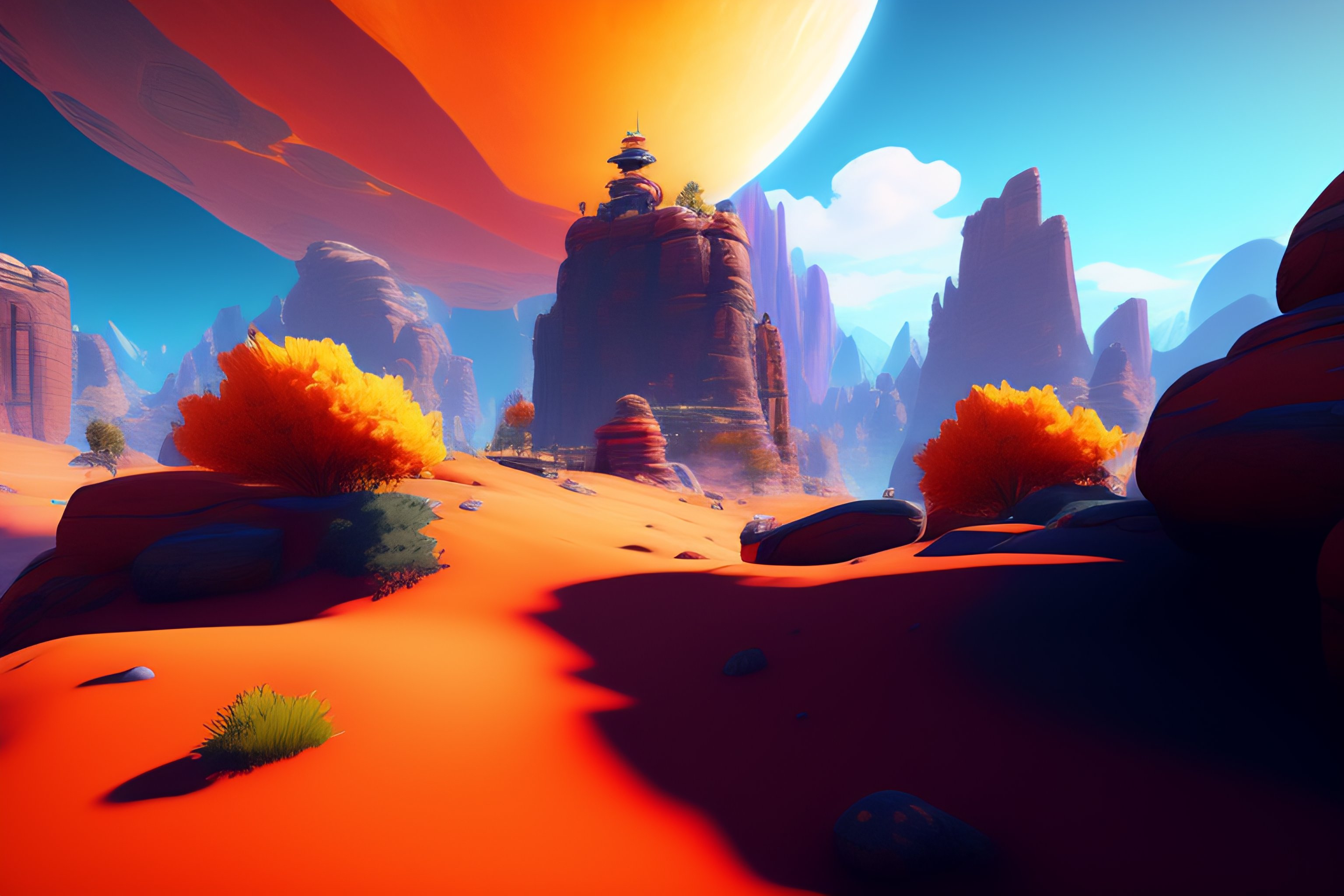 Landscape from the game apex legends, vibrant colors, winning-award masterpiece, aesthetic octane render, 8k hd resolution, space, sunny, simple