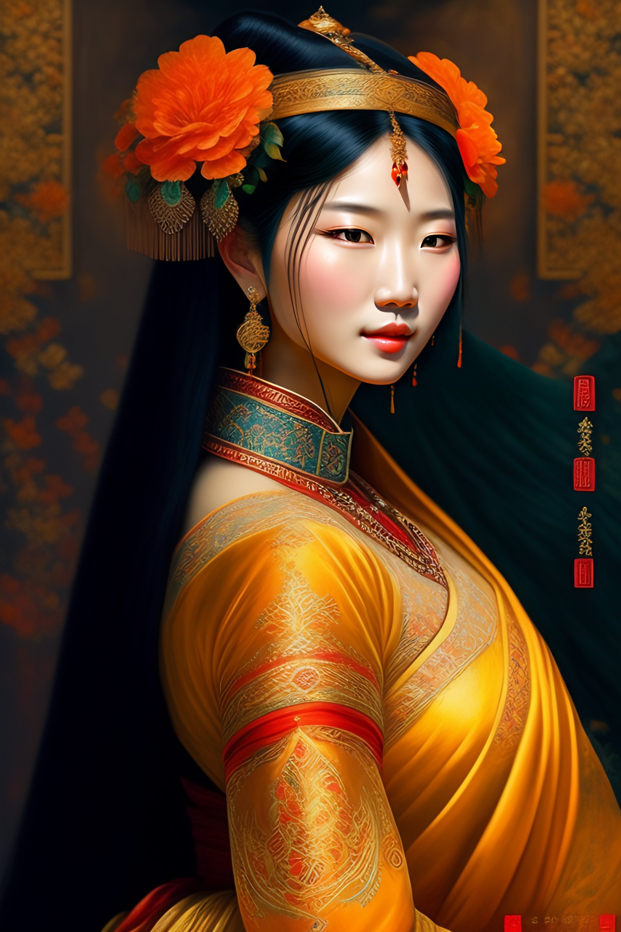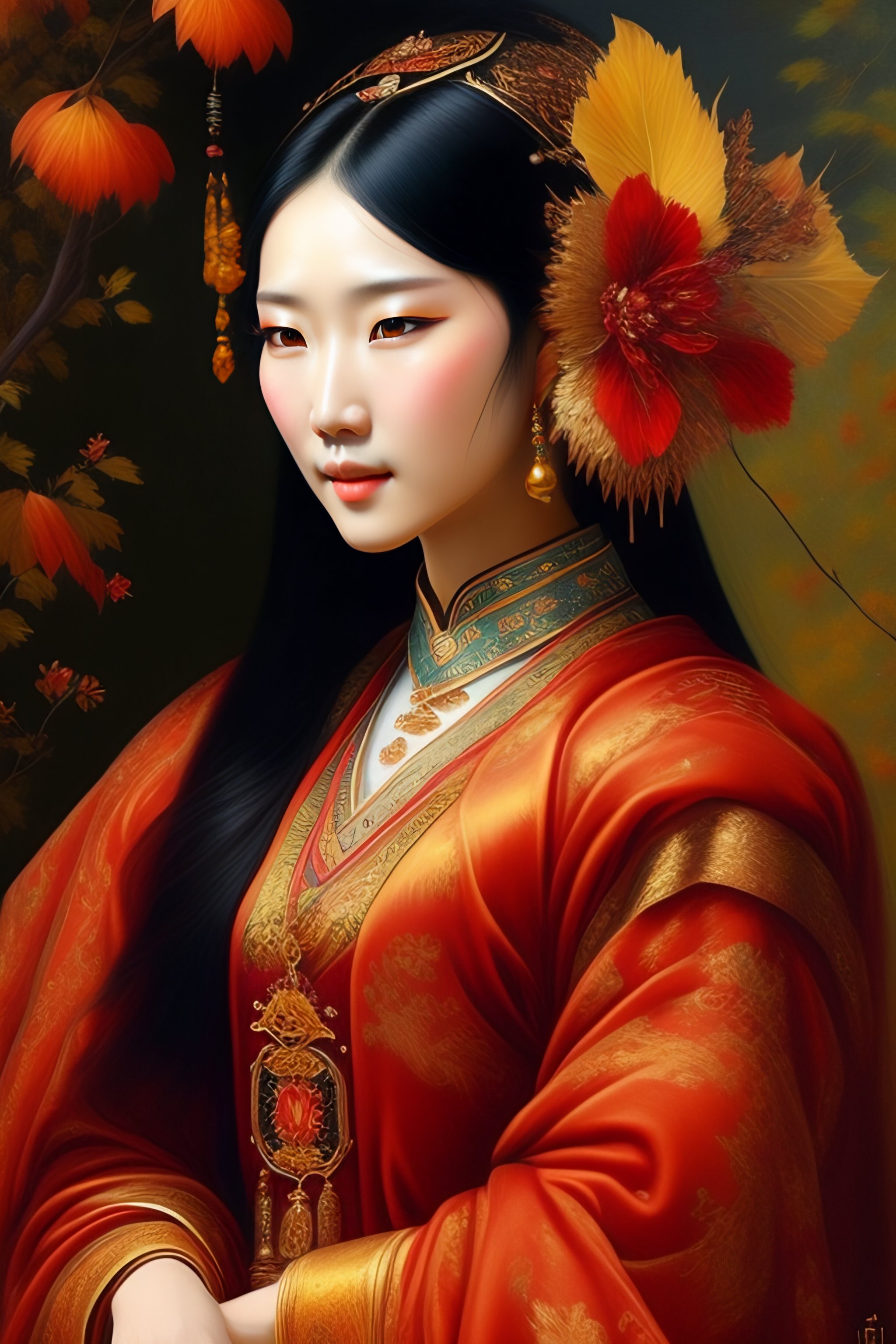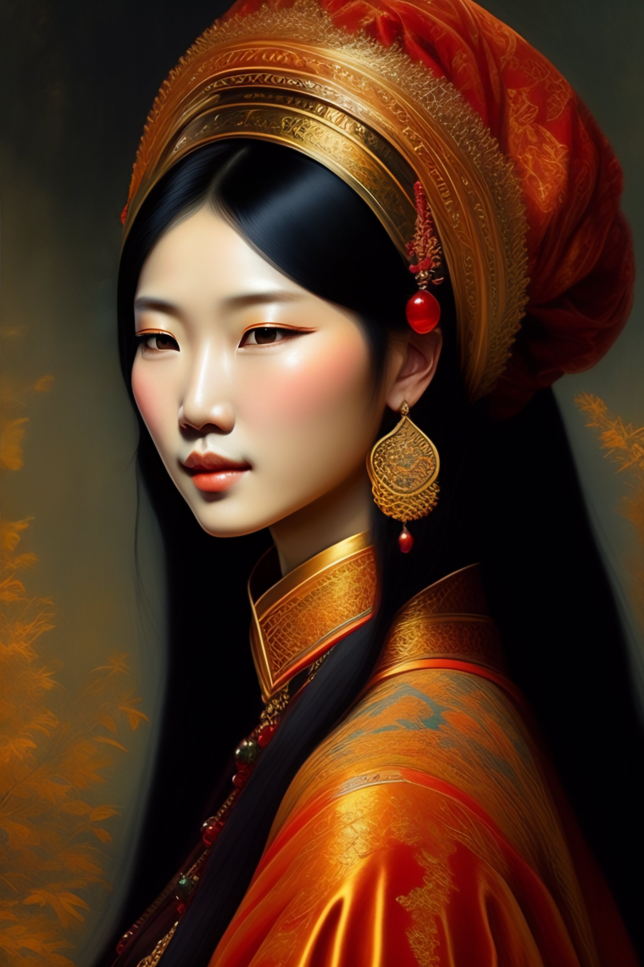 <ruan-jia> <hitokomoru-style> <huang-guang-jian> portrait of a pretty woman, russian headdress, intricate, ultra detailed, pre raphaelite, oil painting, brush-strokes, autumn colors, fantasy art