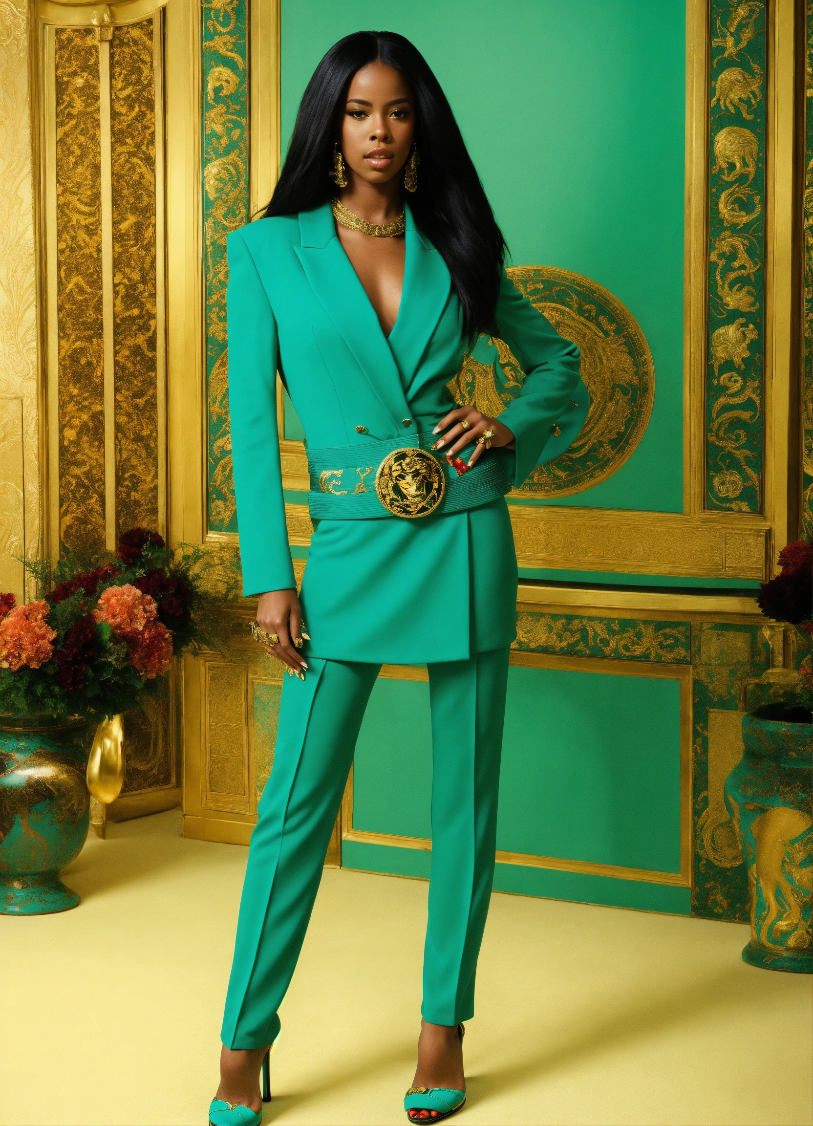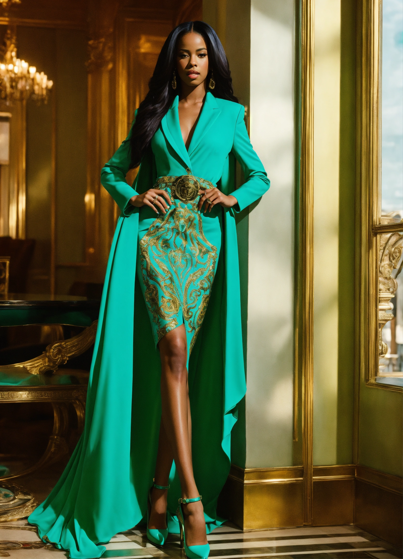 Aaliyah glamorous turquoise green combination versace style outfit with high heels