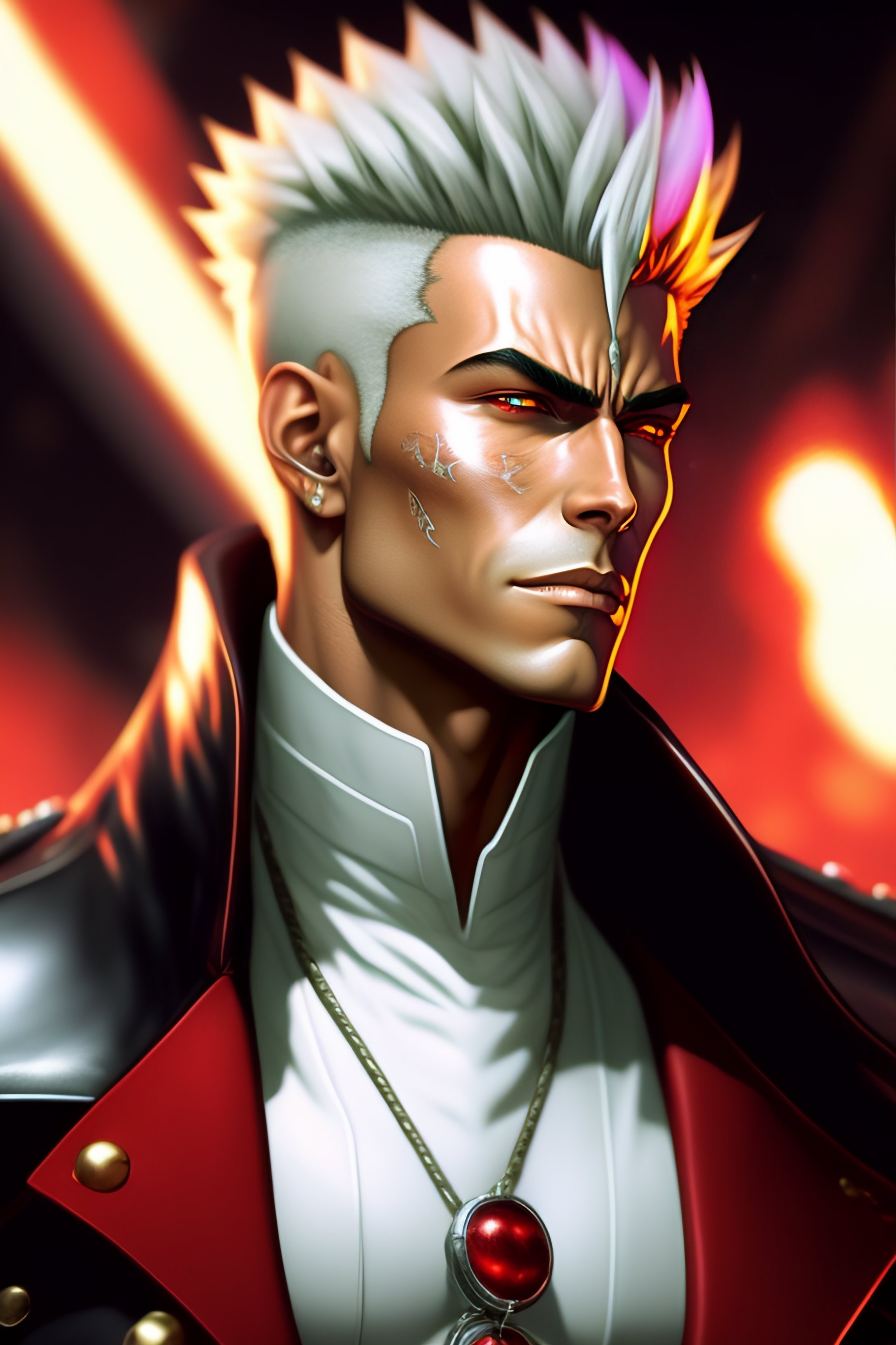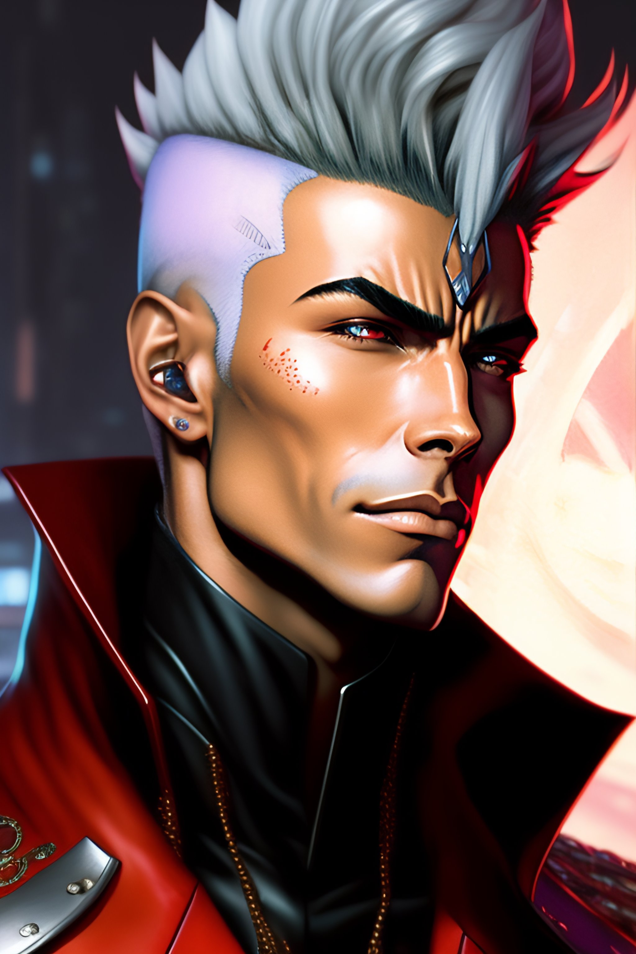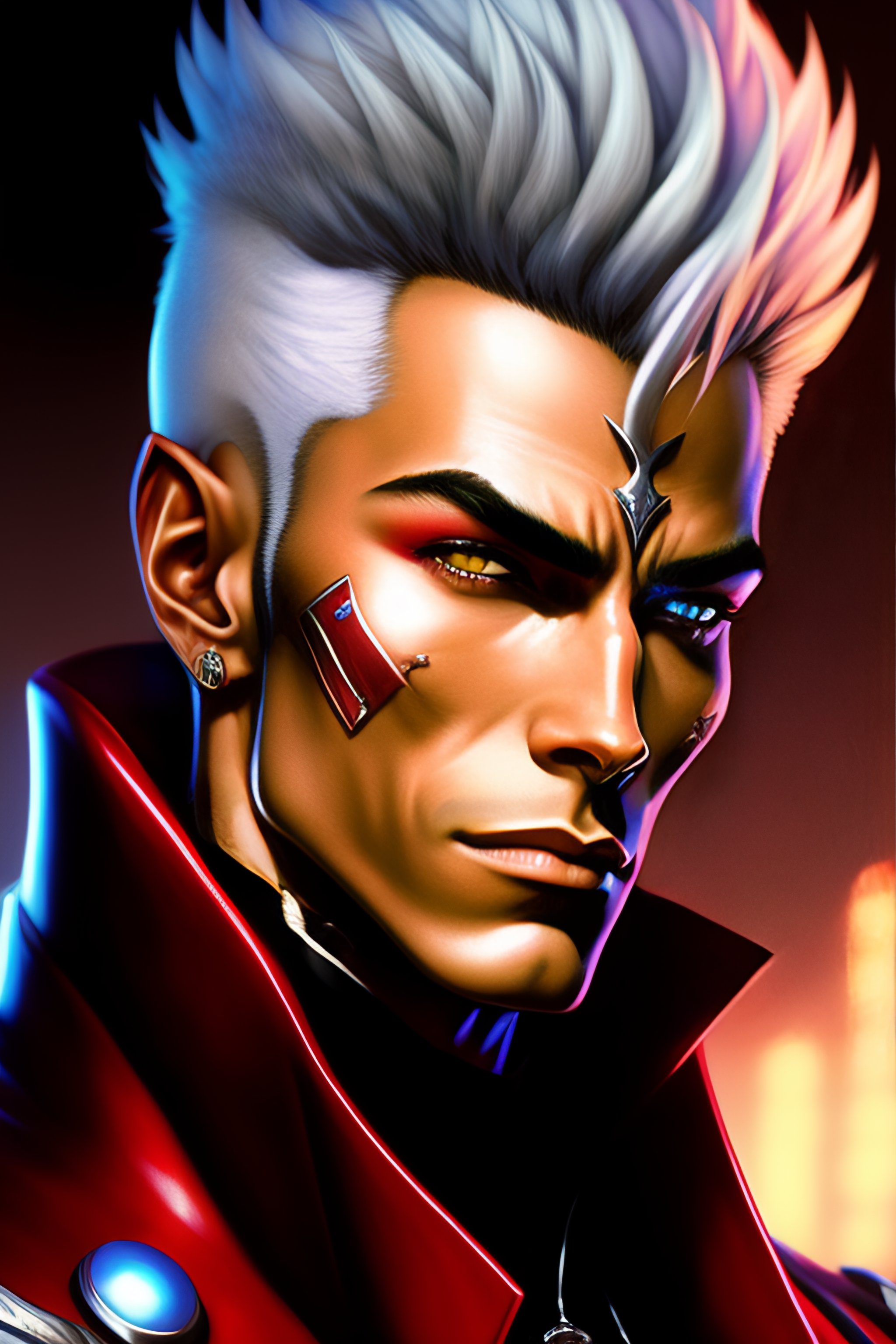 Vash from trigun, cyber cowboy, close up, concept art, highly detailed, sci - fi poster, in the style of alex ross, silver hair