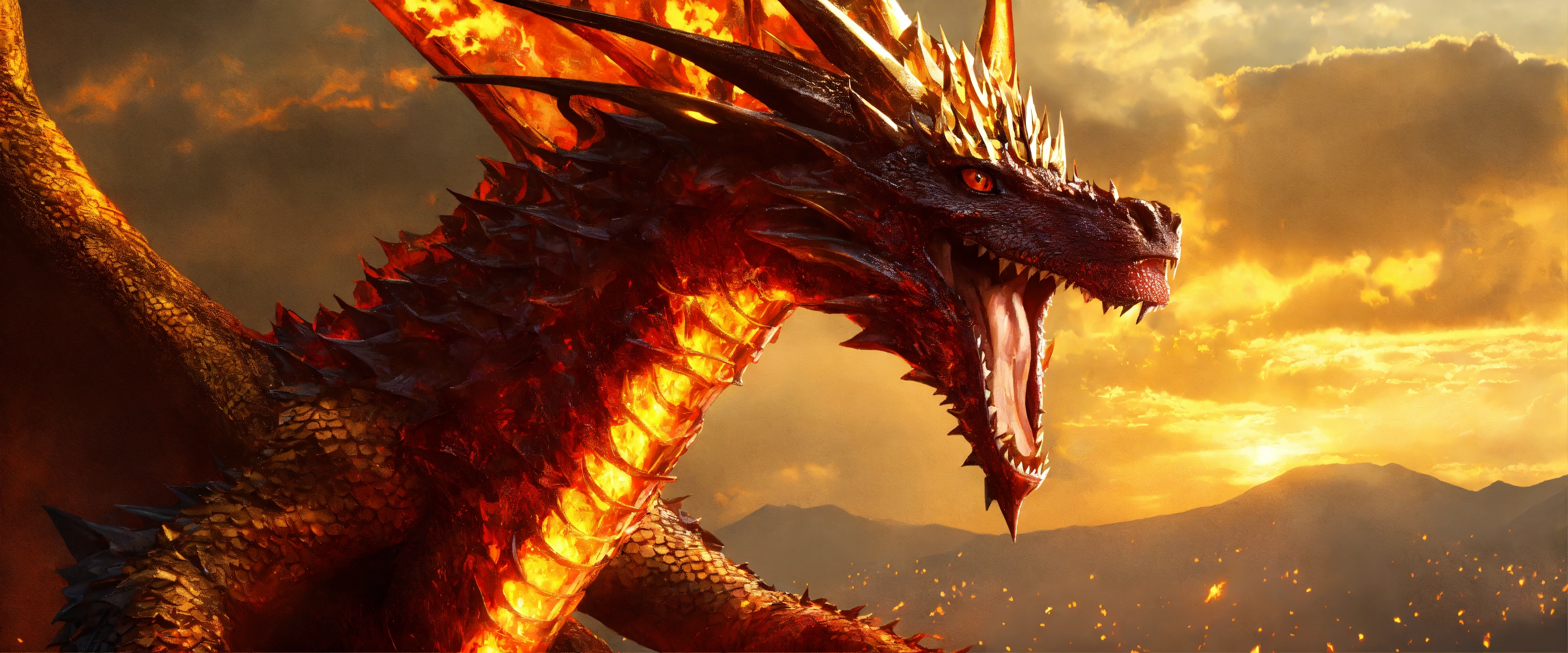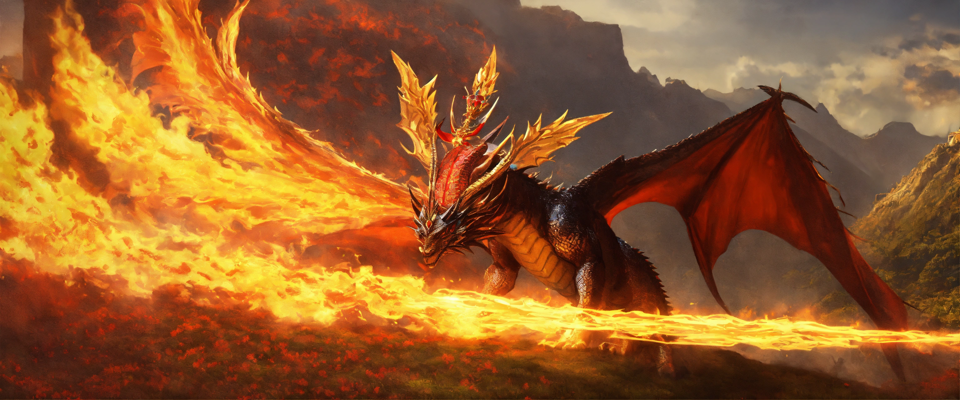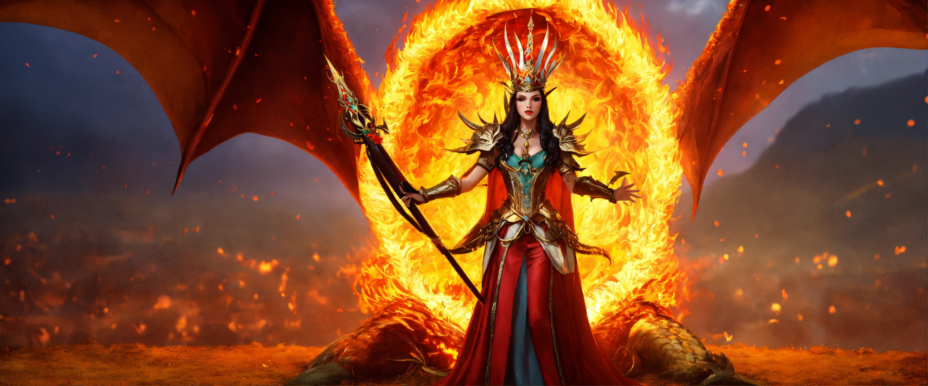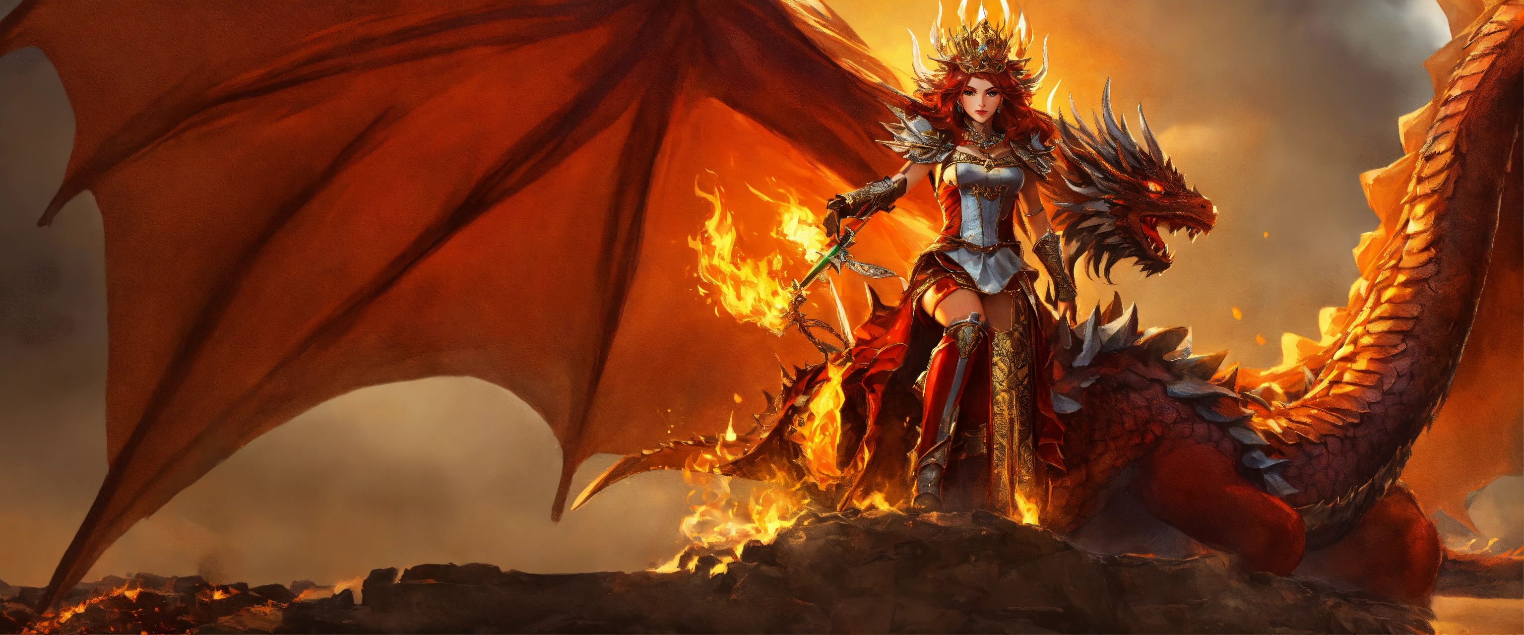Queen with fire crown on dragon