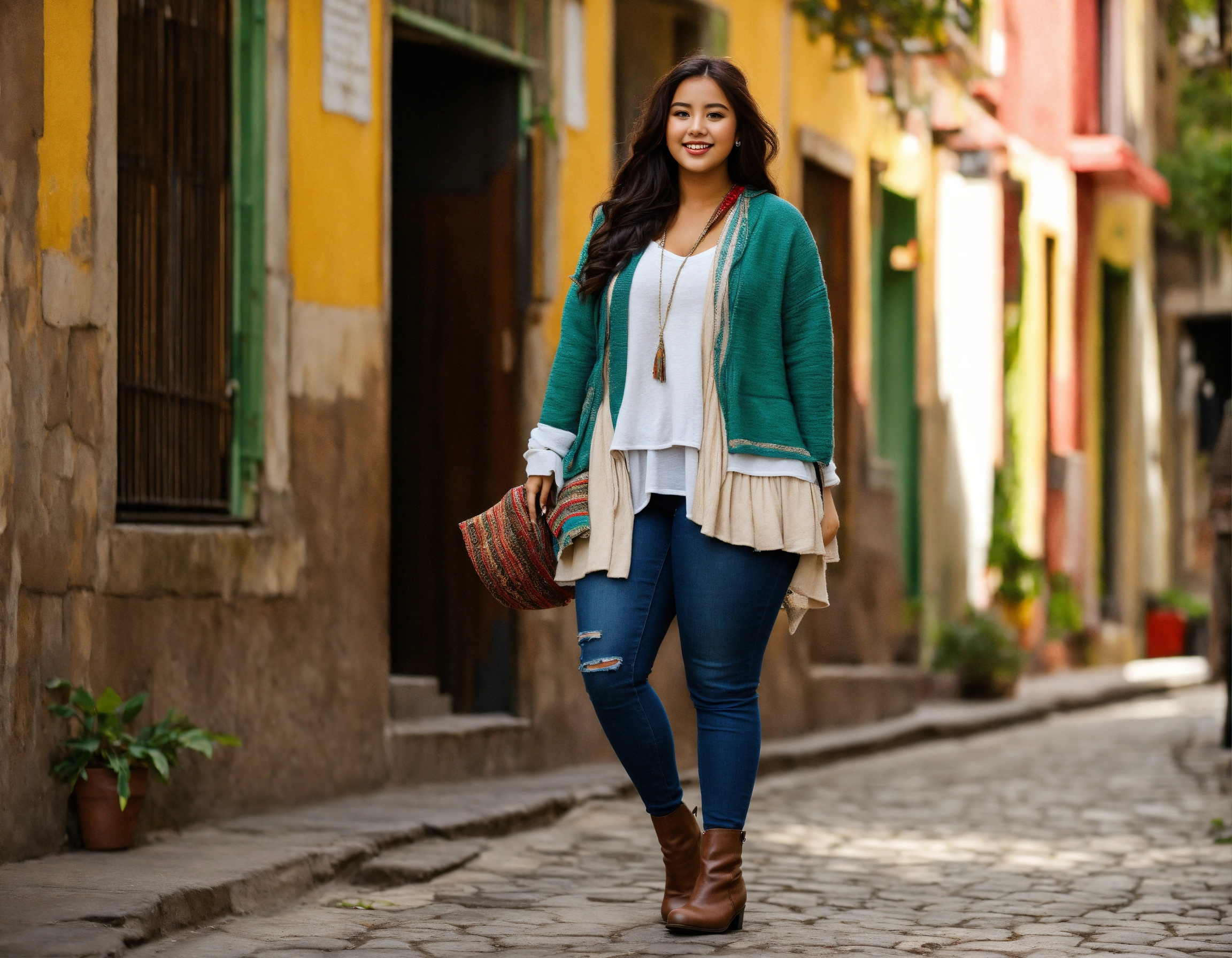 Slightly plump young woman people south america casual outfit