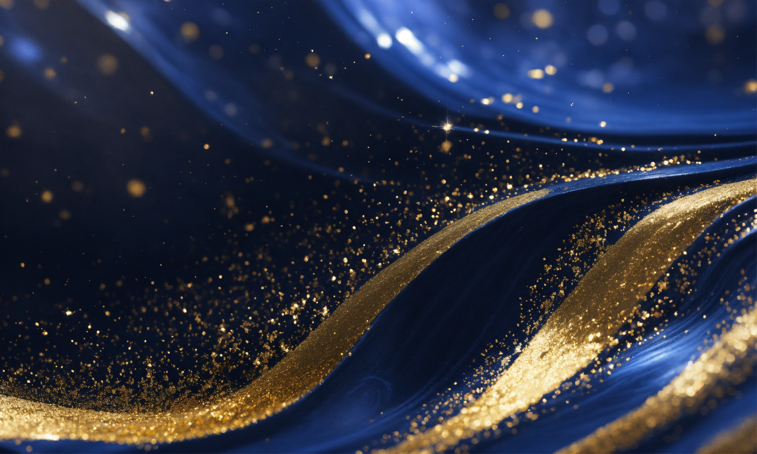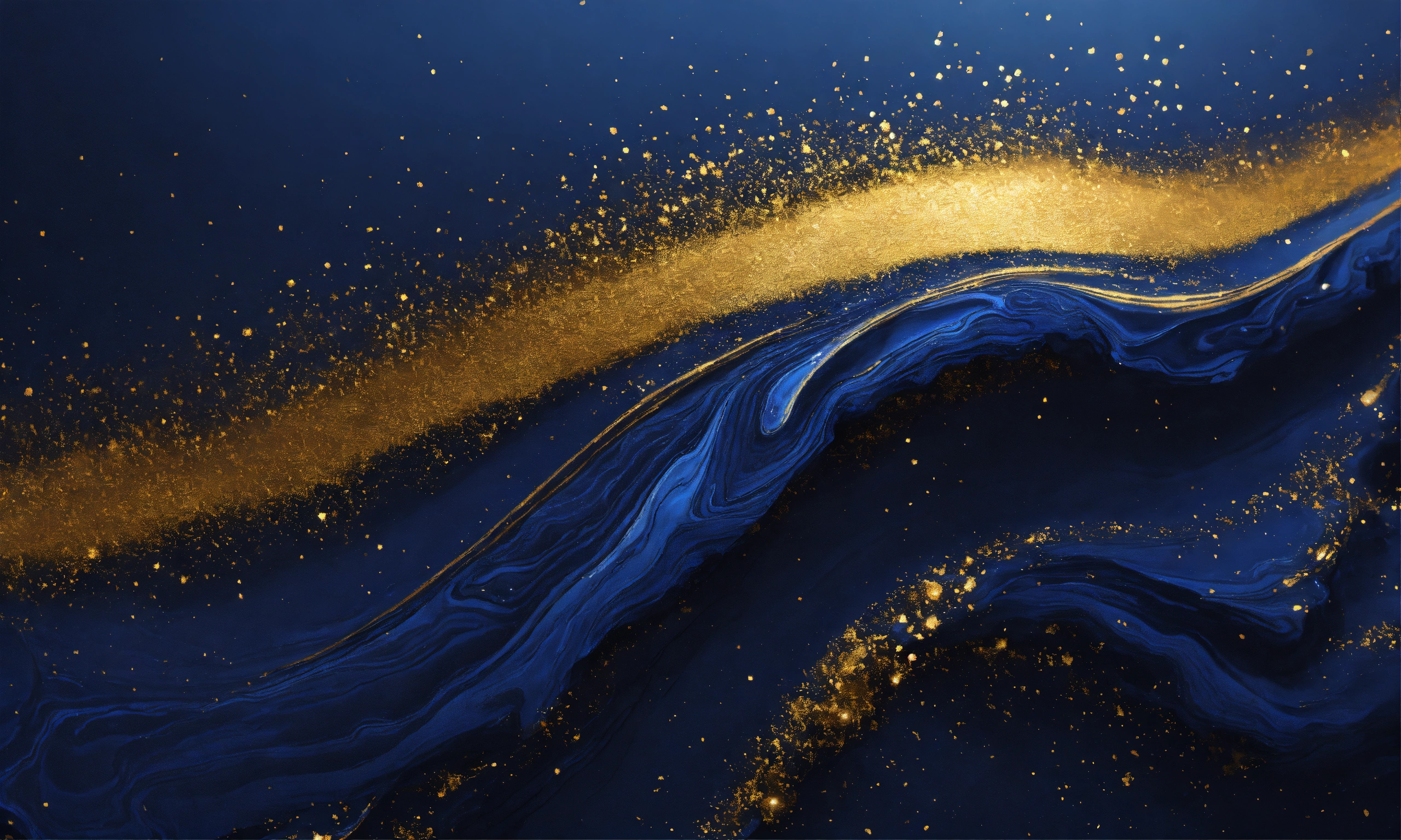 Glimmering fusion of sparkle dark blue texture, marbling, add gold dust, minimalist, high definition image, 8k