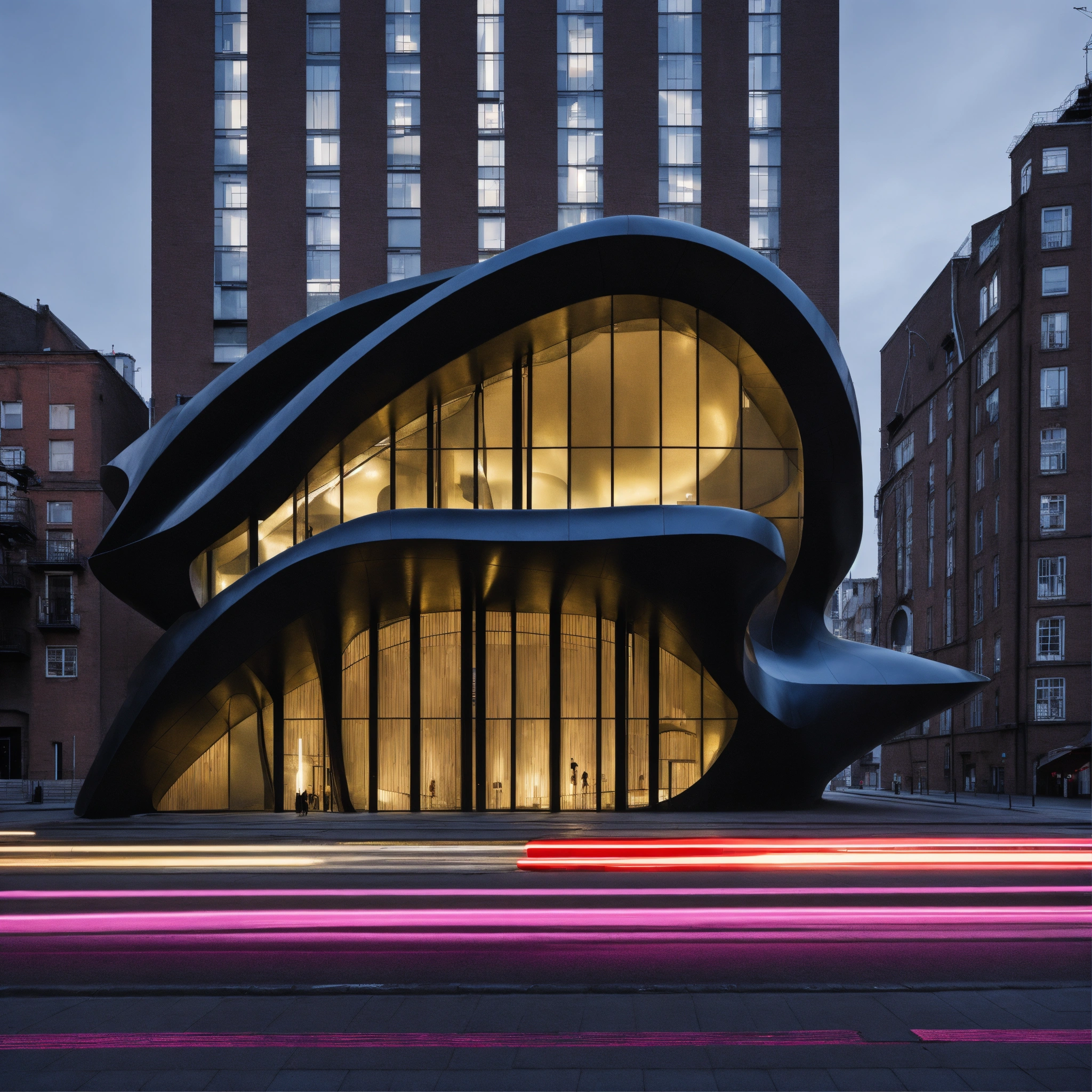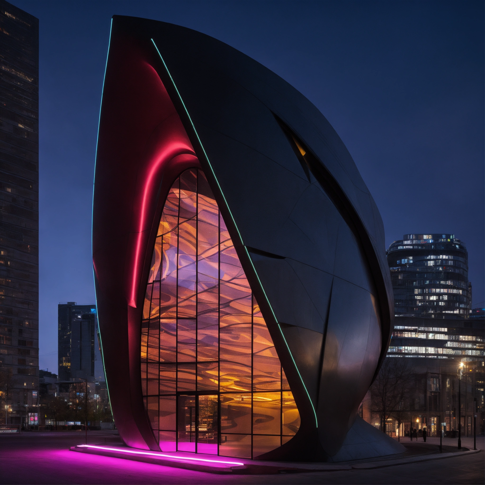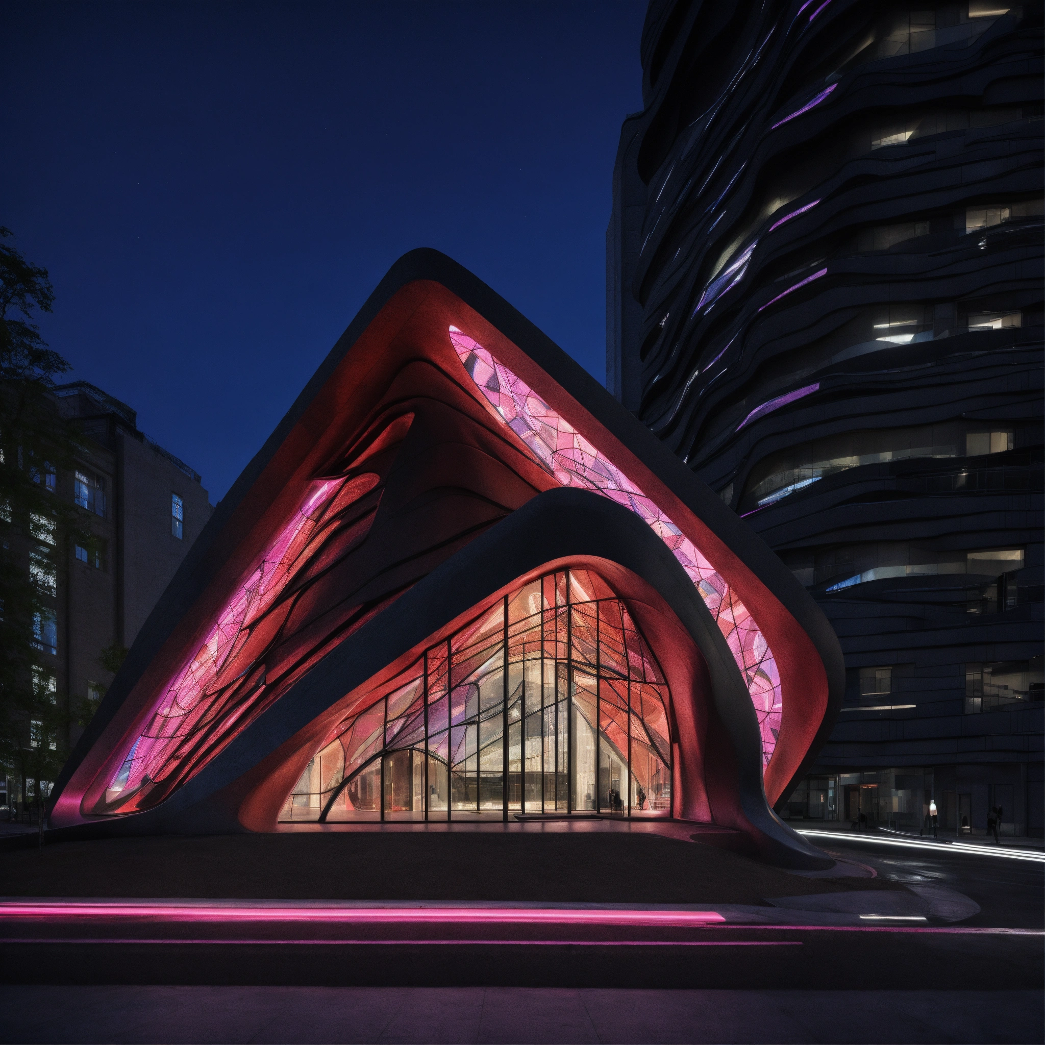 Zaha hadid neon noir ceramic church in the city