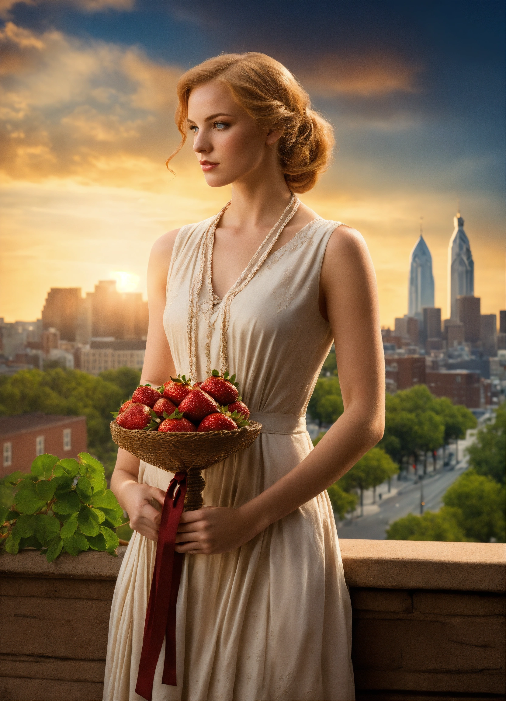 Create captivating background designs for the book cover that convey the theme of romance, family saga fiction, contemporary women's fiction, a young woman with strawberry blonde hair, blue eyes, and should be wearing a crucifix. wearing conservative clothing, ponytailed hair, and closed-neck clothing, from 1920s clothing, passionate about being a christian, background sky, photoreal, photorealistic, photoreal, history clothing, make it real photo, realistic, photoreal, with shadow effects, captivating cover, with lighting and shadow effects, face focus on top, with some effects, man and woman, captivating cover design, with lighting and shadow effects, facing camera, facing front, inspired by the cover design of "marrying miss marshal ", wearing philadelphia dress 1920s with collar, ponytail hair a skyline in philadelphia, with shadow and lighting effects, create an eye-catching background