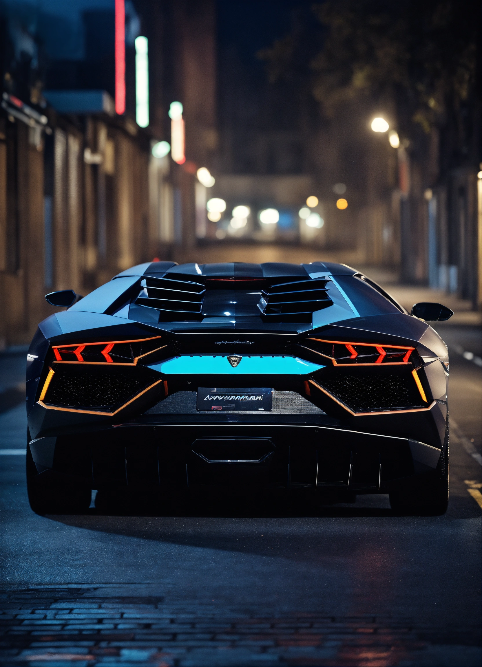 Photo of concept lamborghini aventador from 2025, 8k resoultion, hyper realstic, black, night, 35mm film, editorial, high fashion, gran turismo