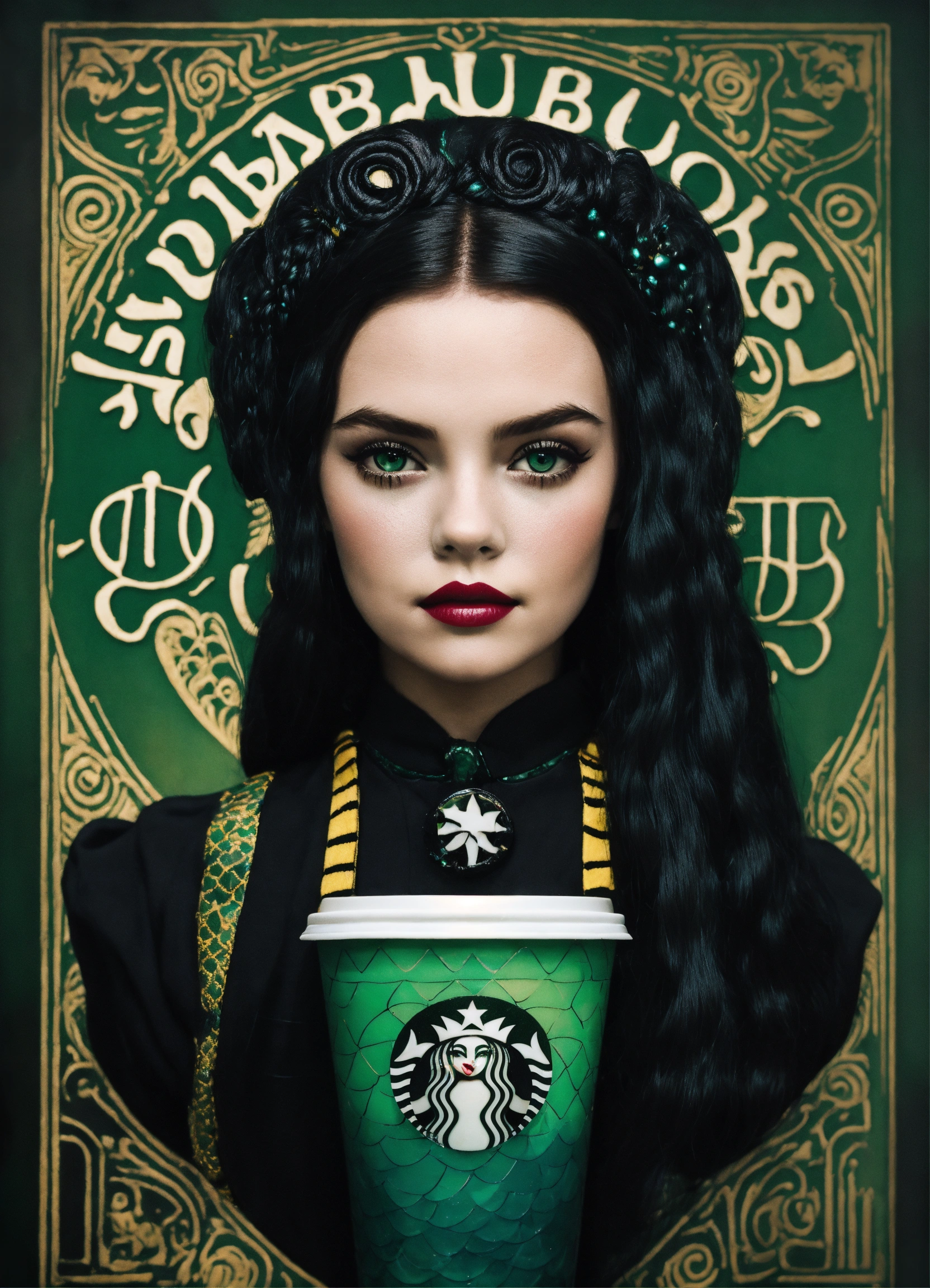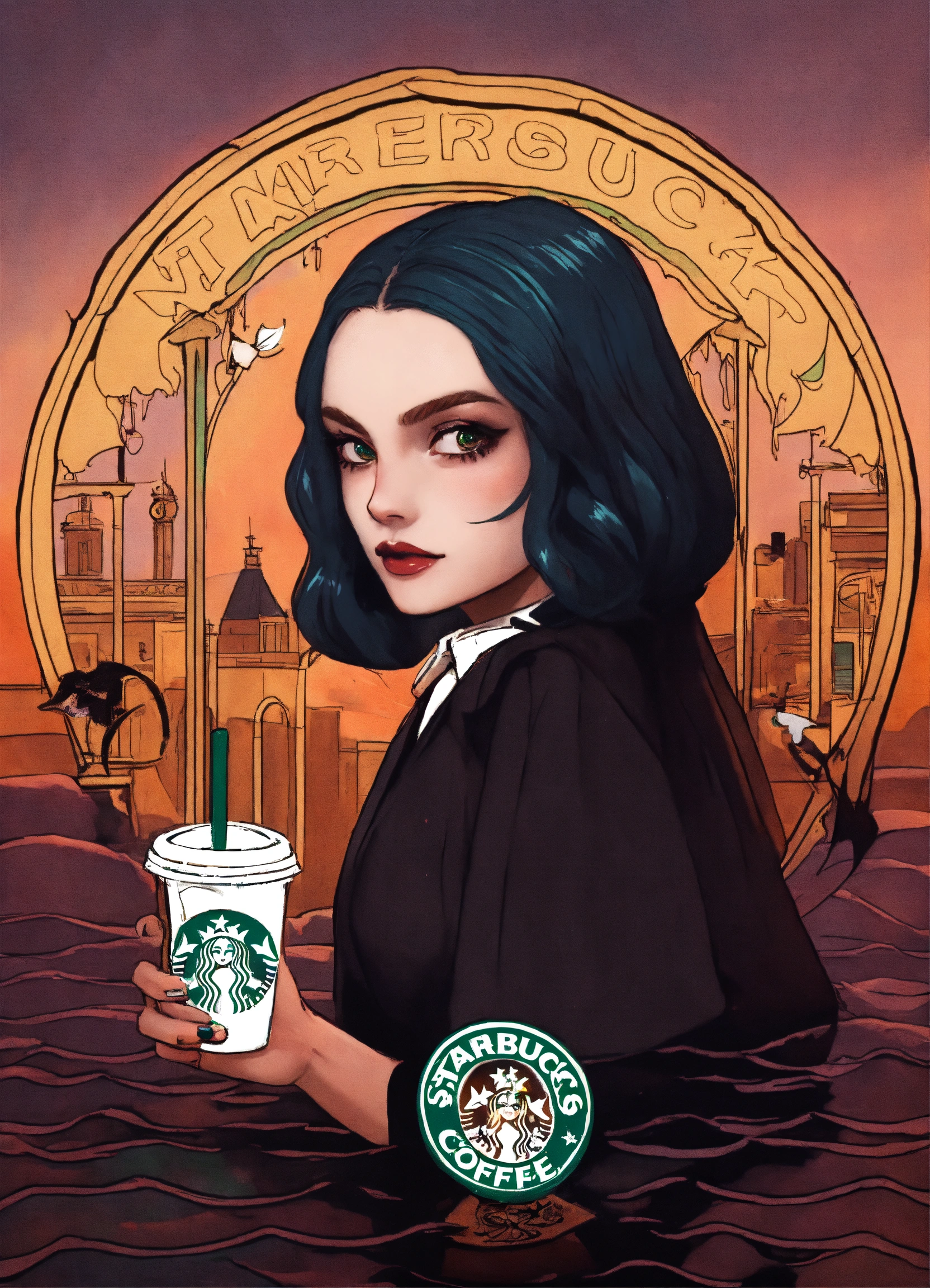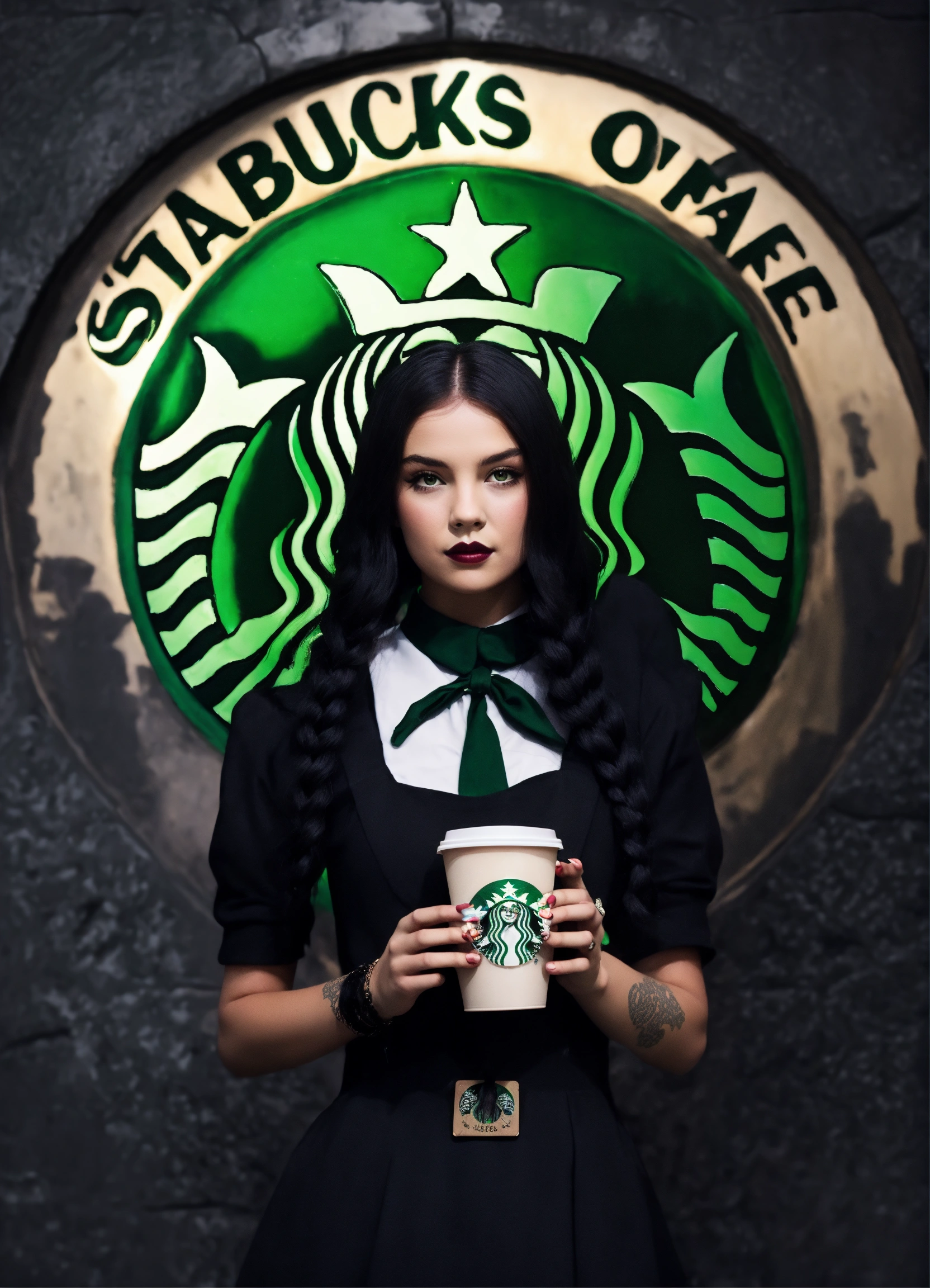 Starbucks logo mermaid as wednesday addams