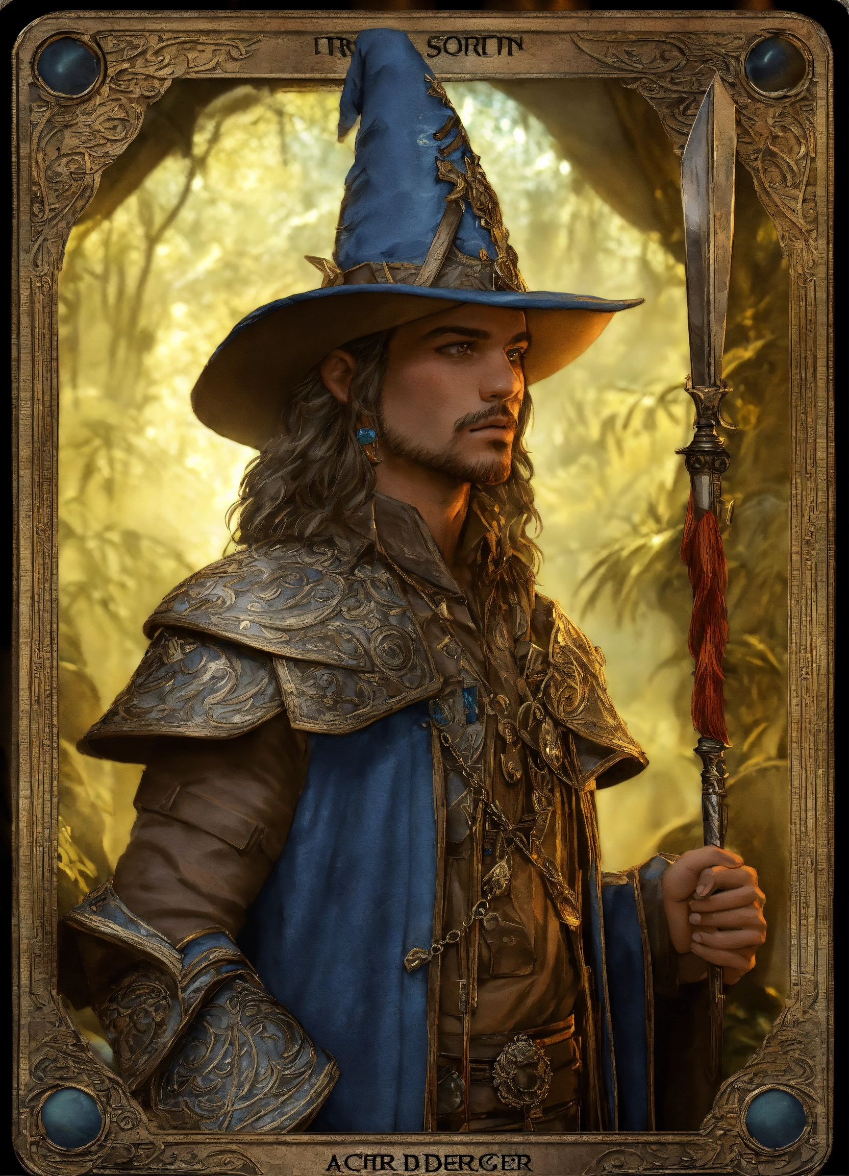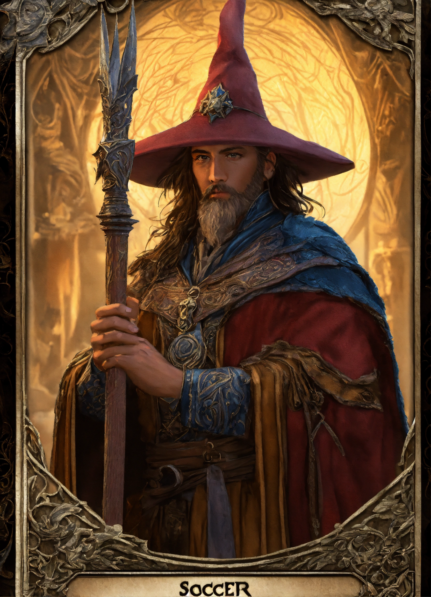 (((trading card))) featuring a sorcerer, highly detailed artwork with intricate design, by "tony diterlizzi" cryengine render, 8k.