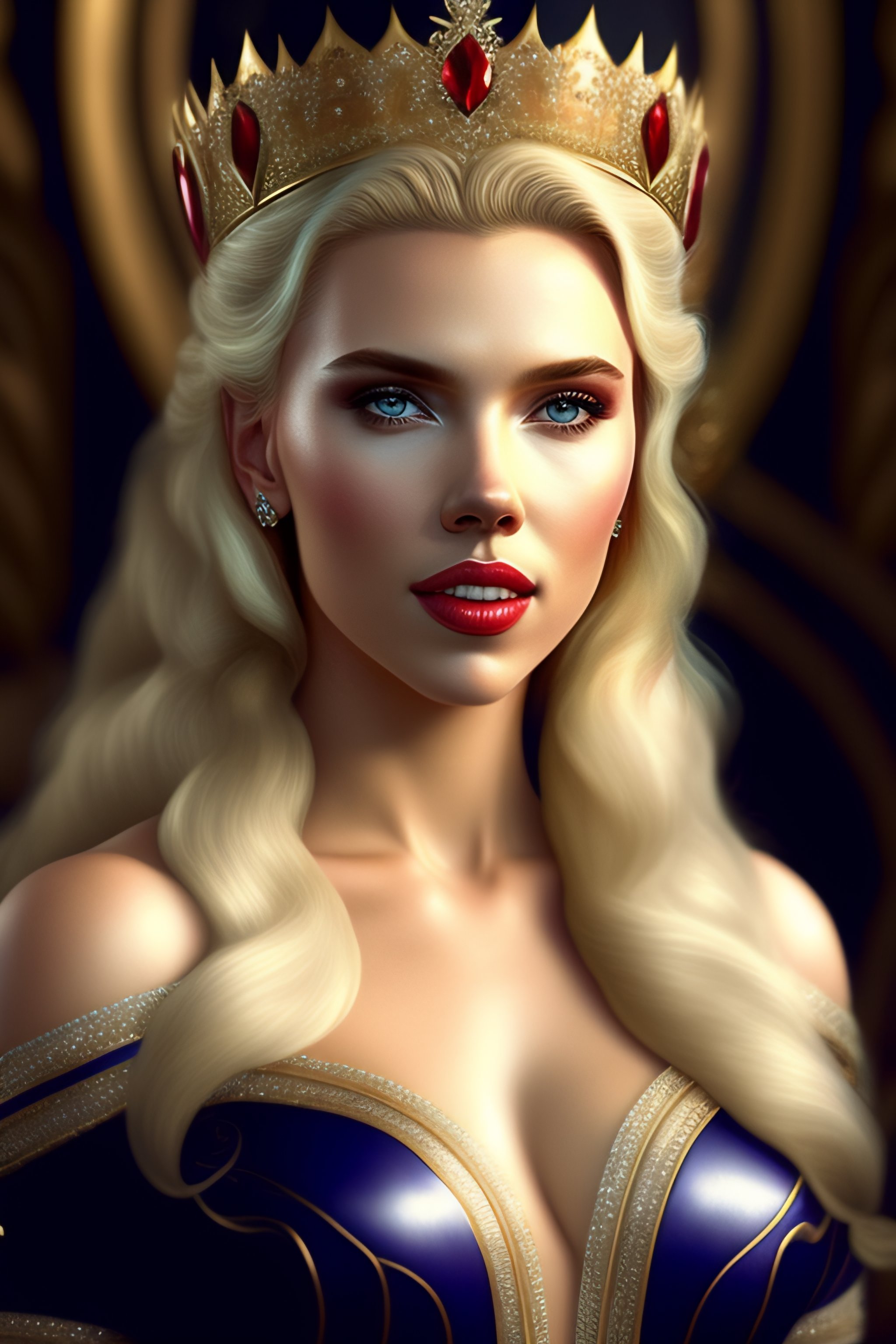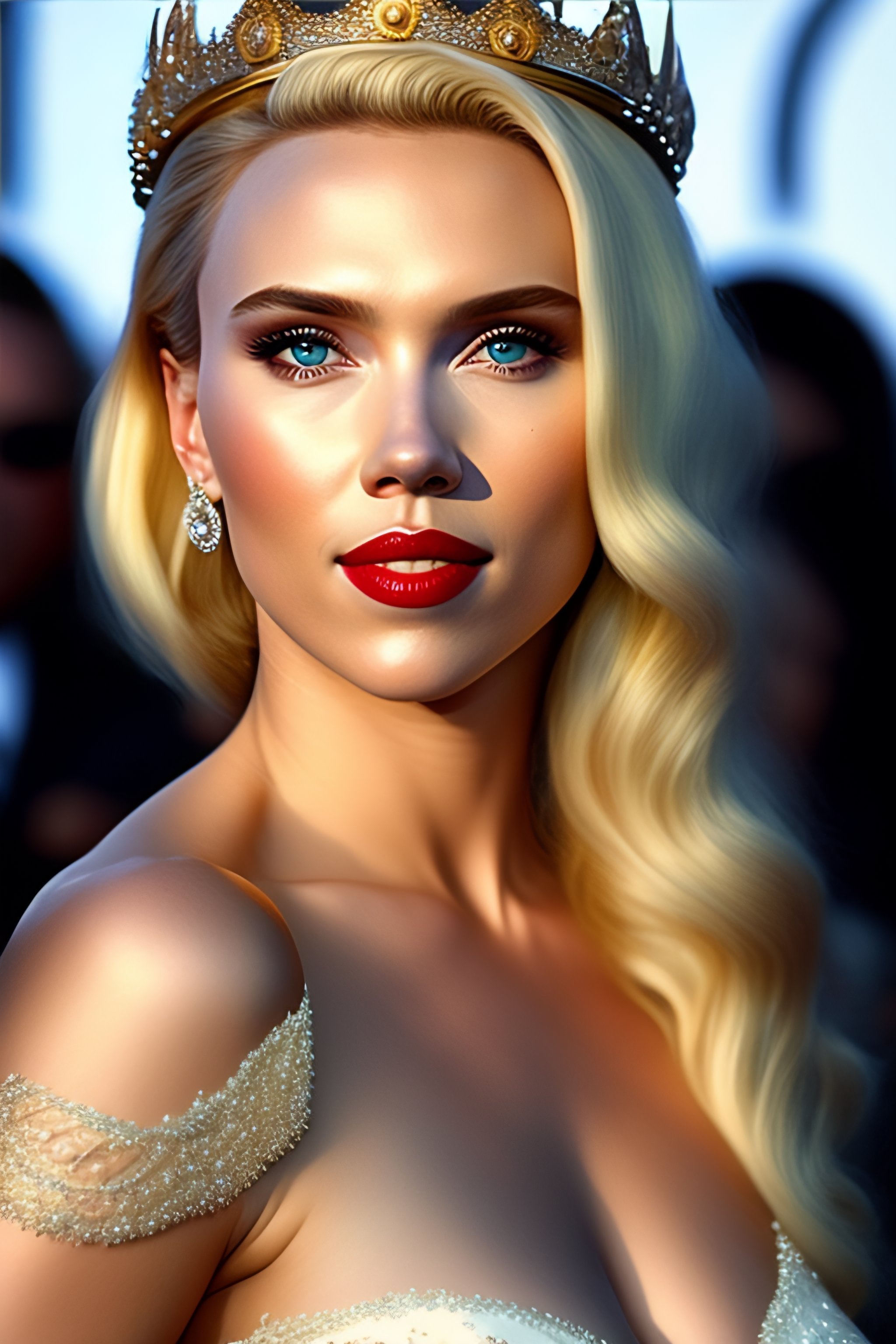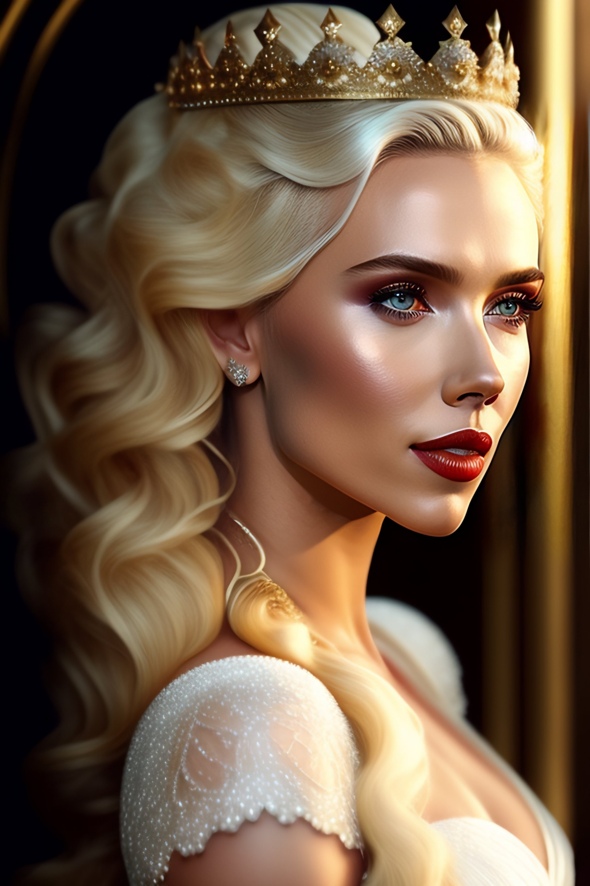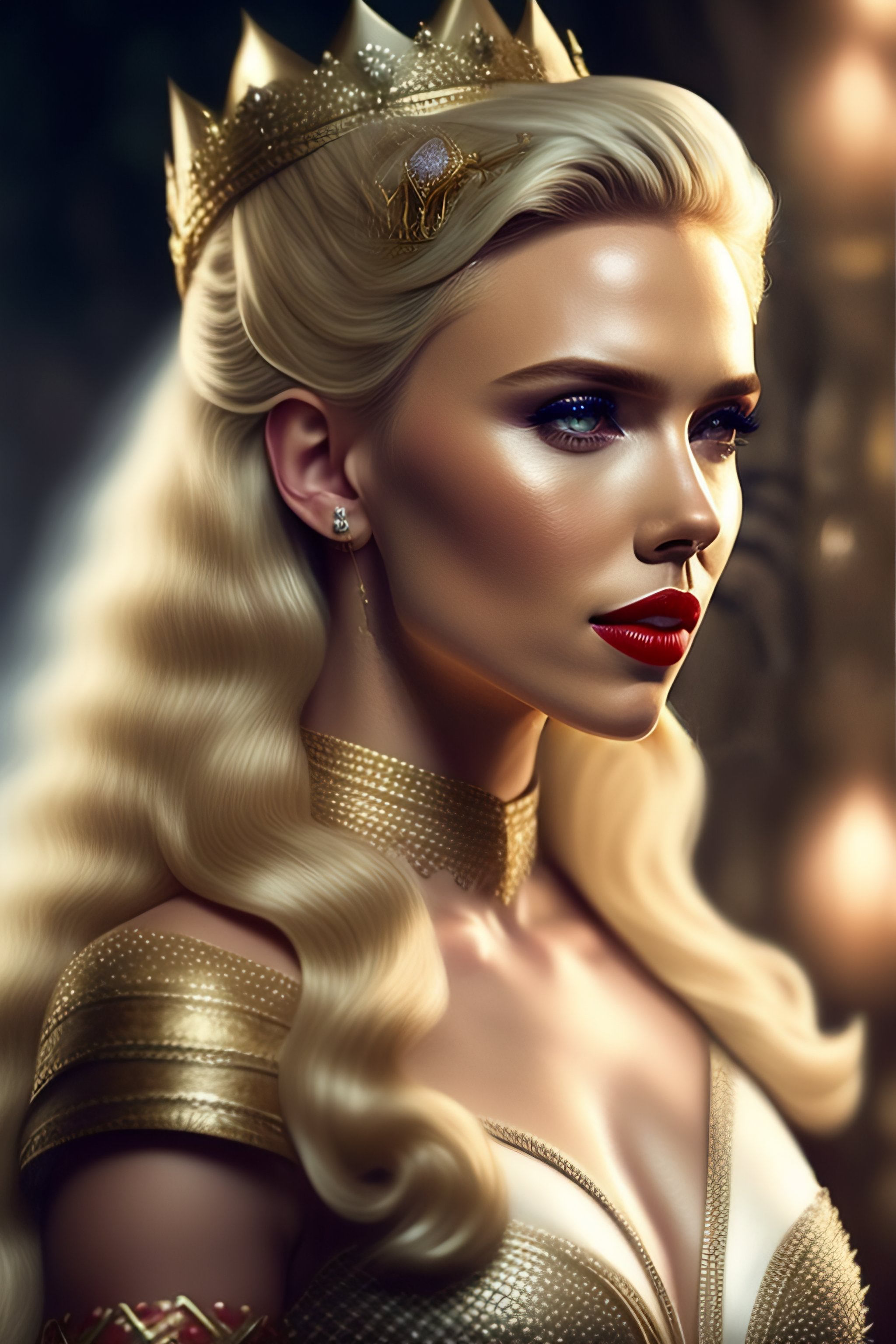 Scarlett johansson elves queen white intricate dress and crown beautiful detailed long blonde hair lord of the rings style