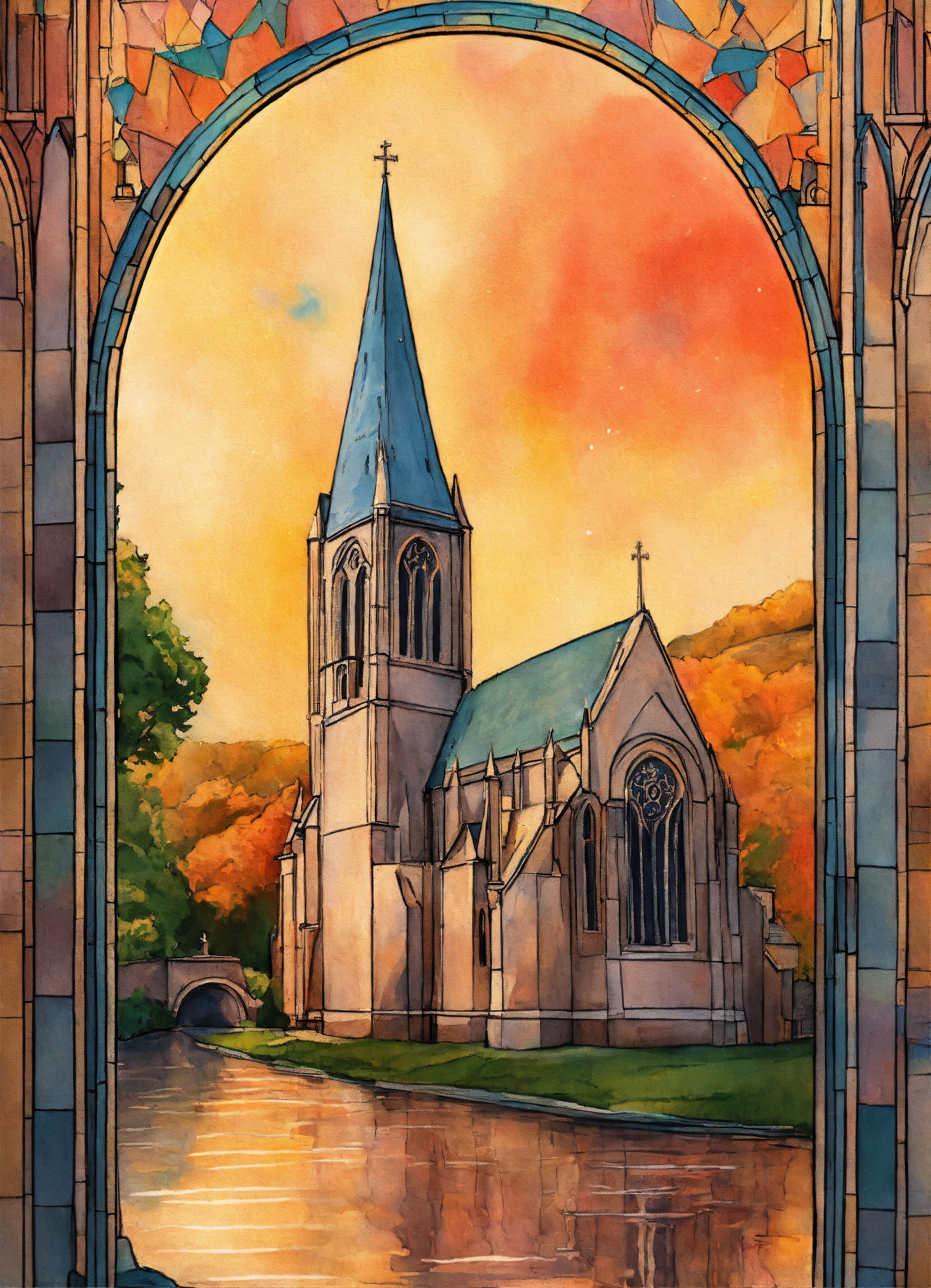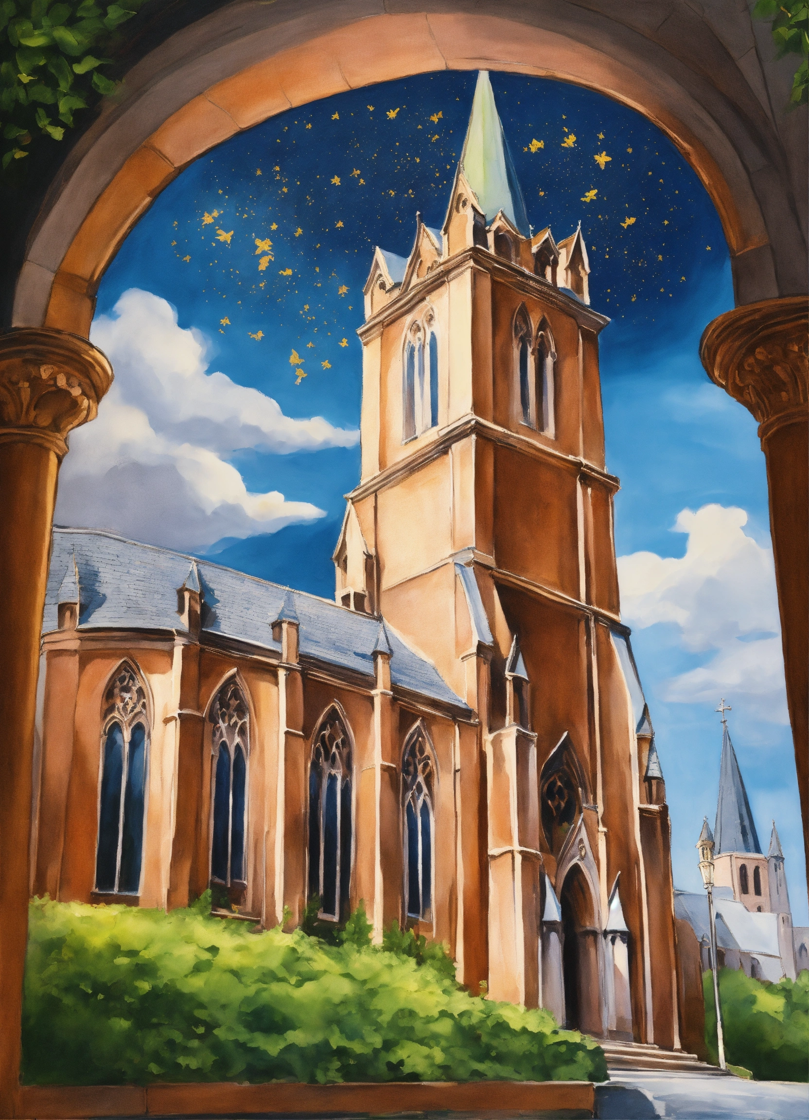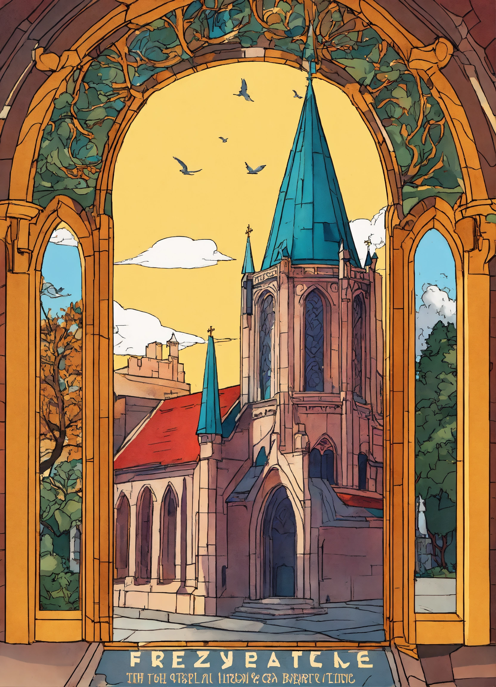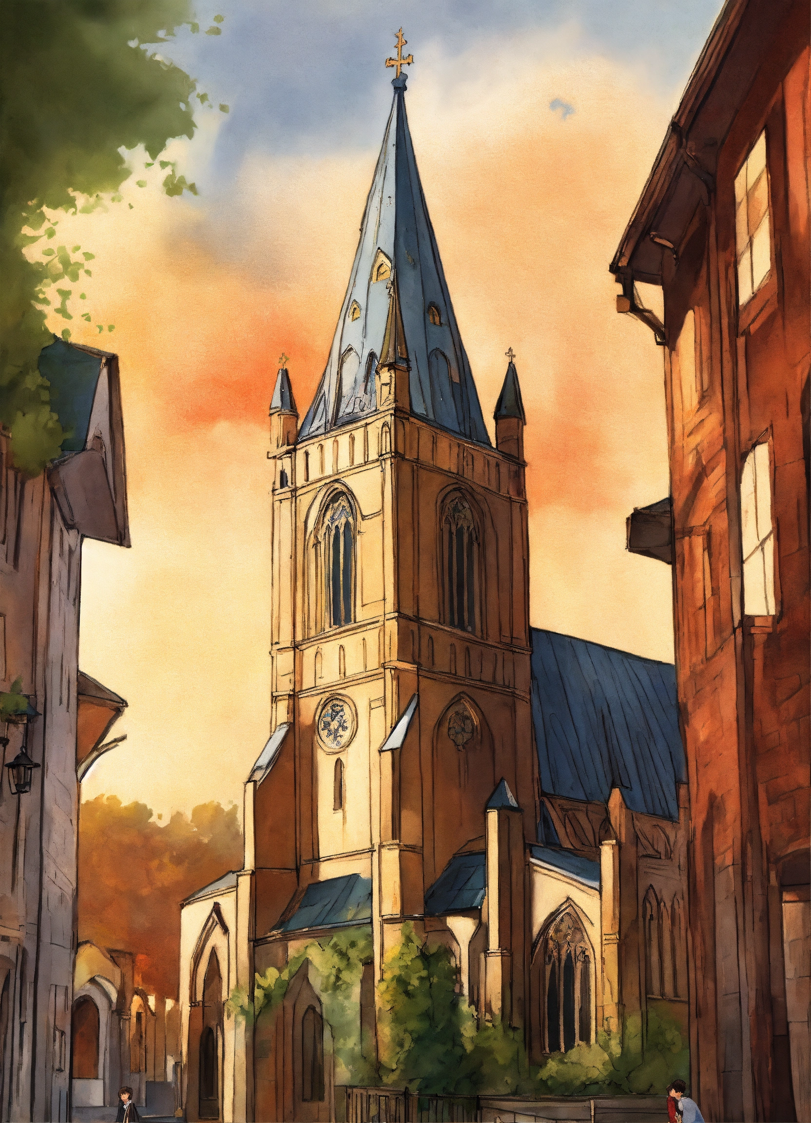 Create a beautiful cover illustrated paint cover inspired by jk rowling's harry potter drawing paint, a byzantine church side view