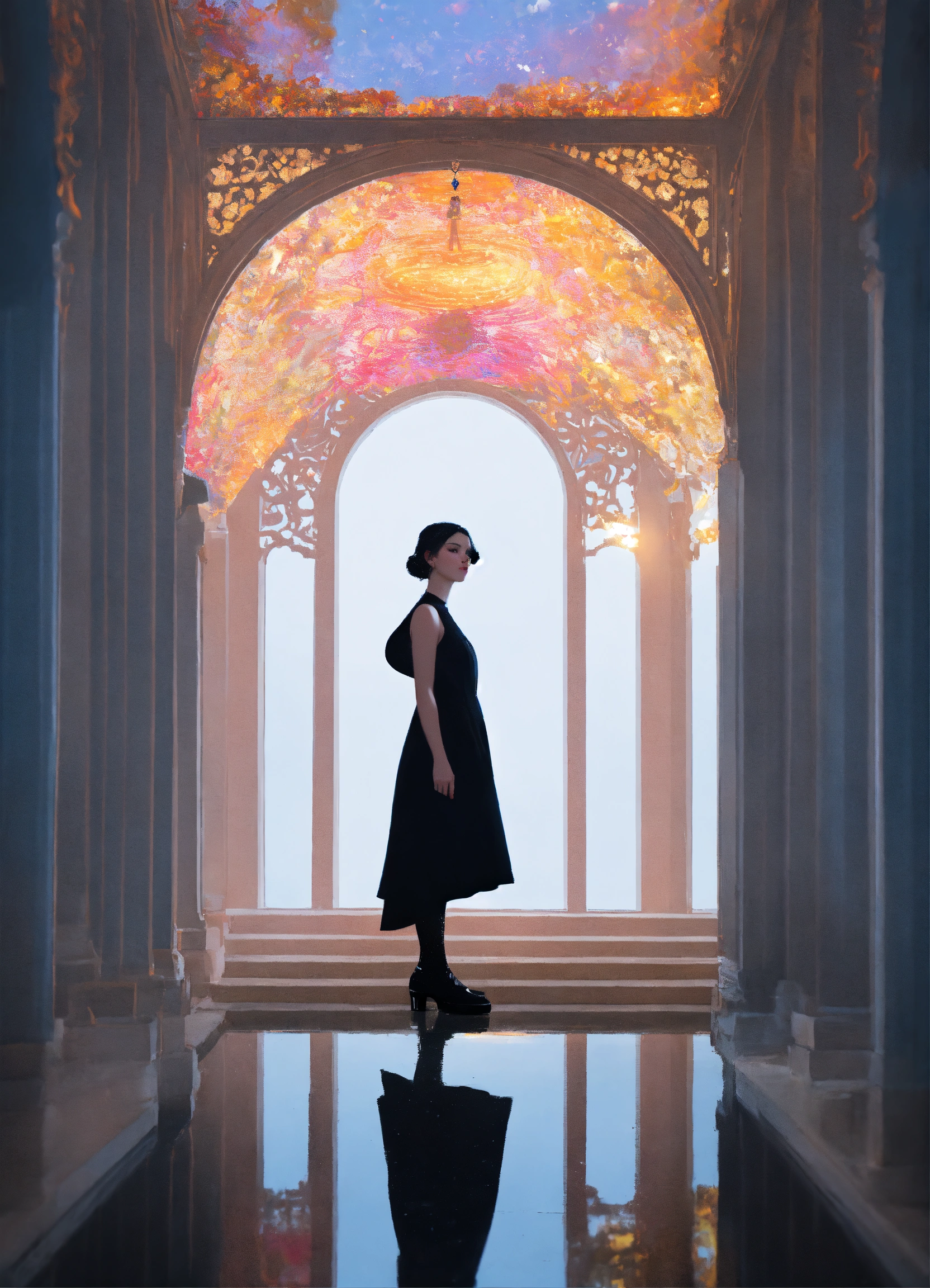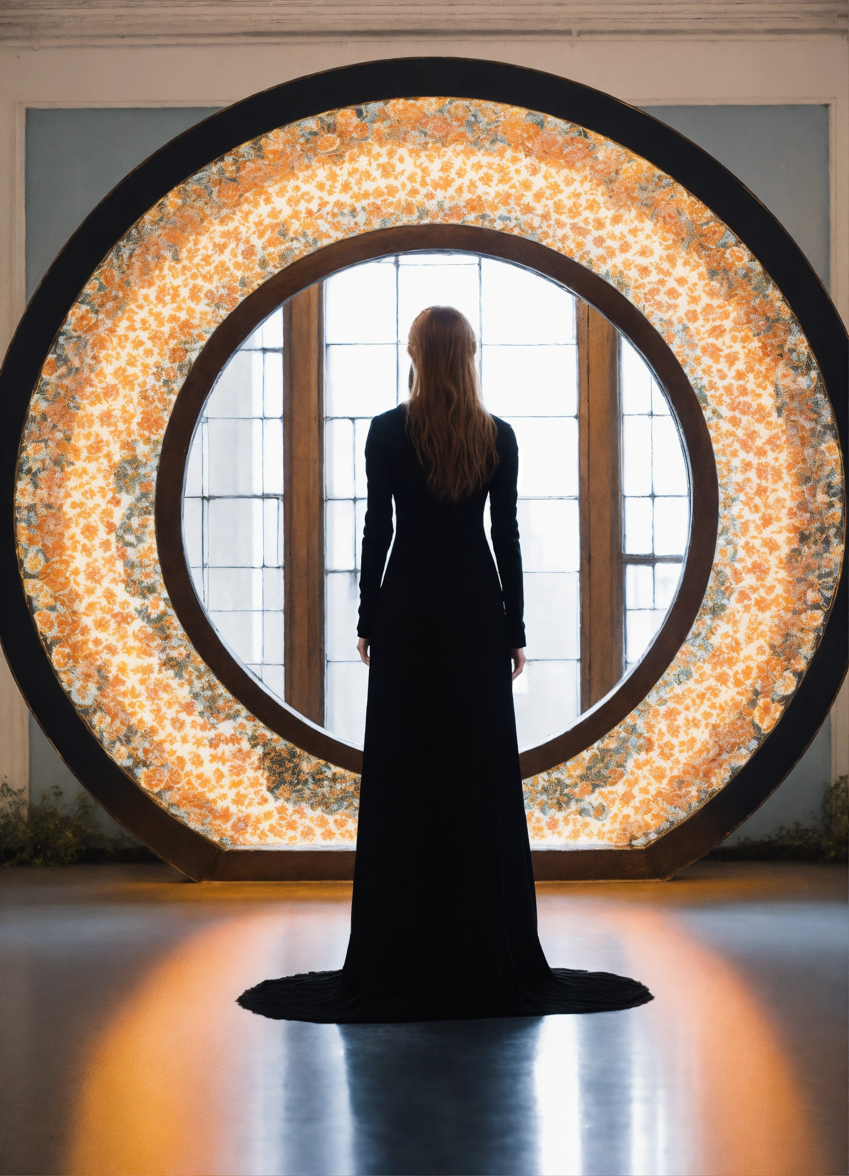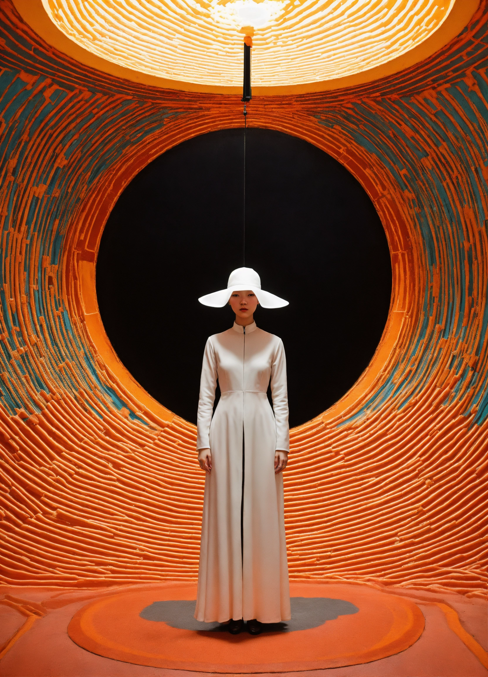 Psychedelic vantablack portal in a stark white void, adventurecore, dreamy, in the style of andrey remnev, jingna zhang, elisa lazo de valdez, allyson anne lamb, sarah moon, and courtney brooke