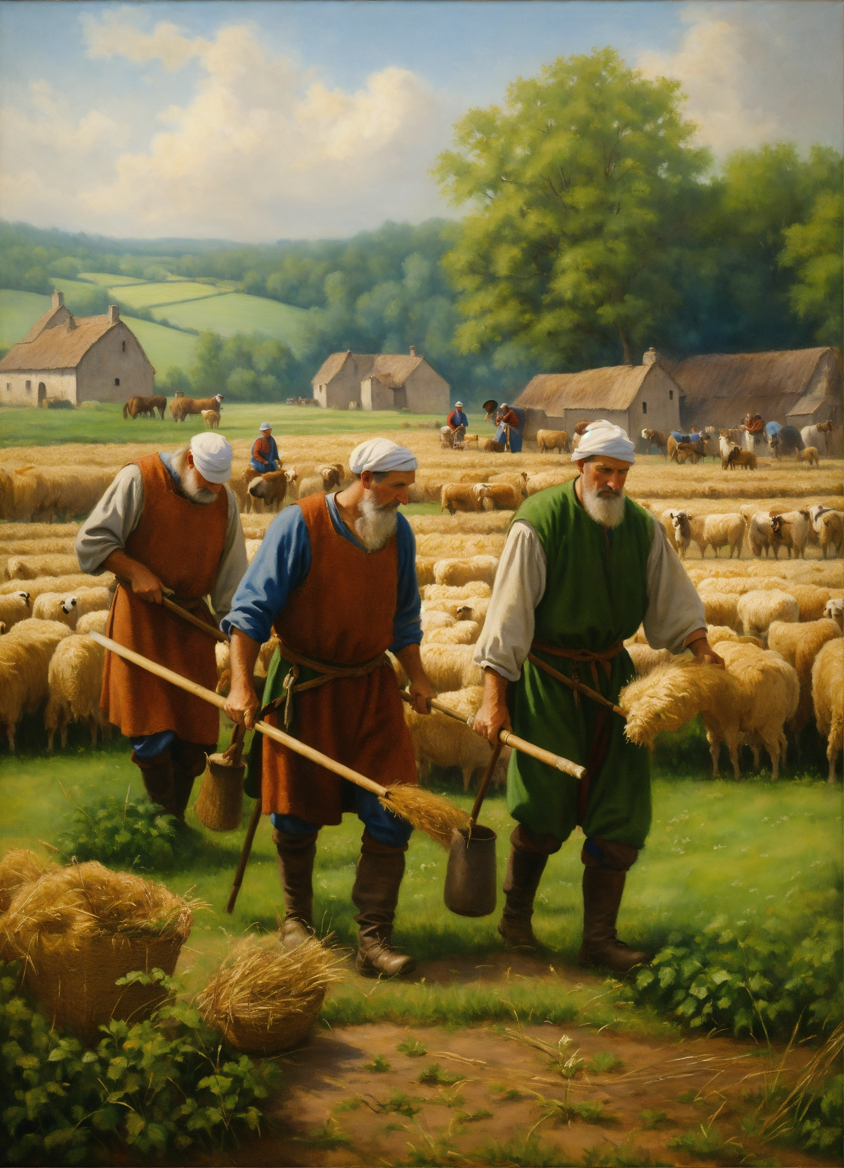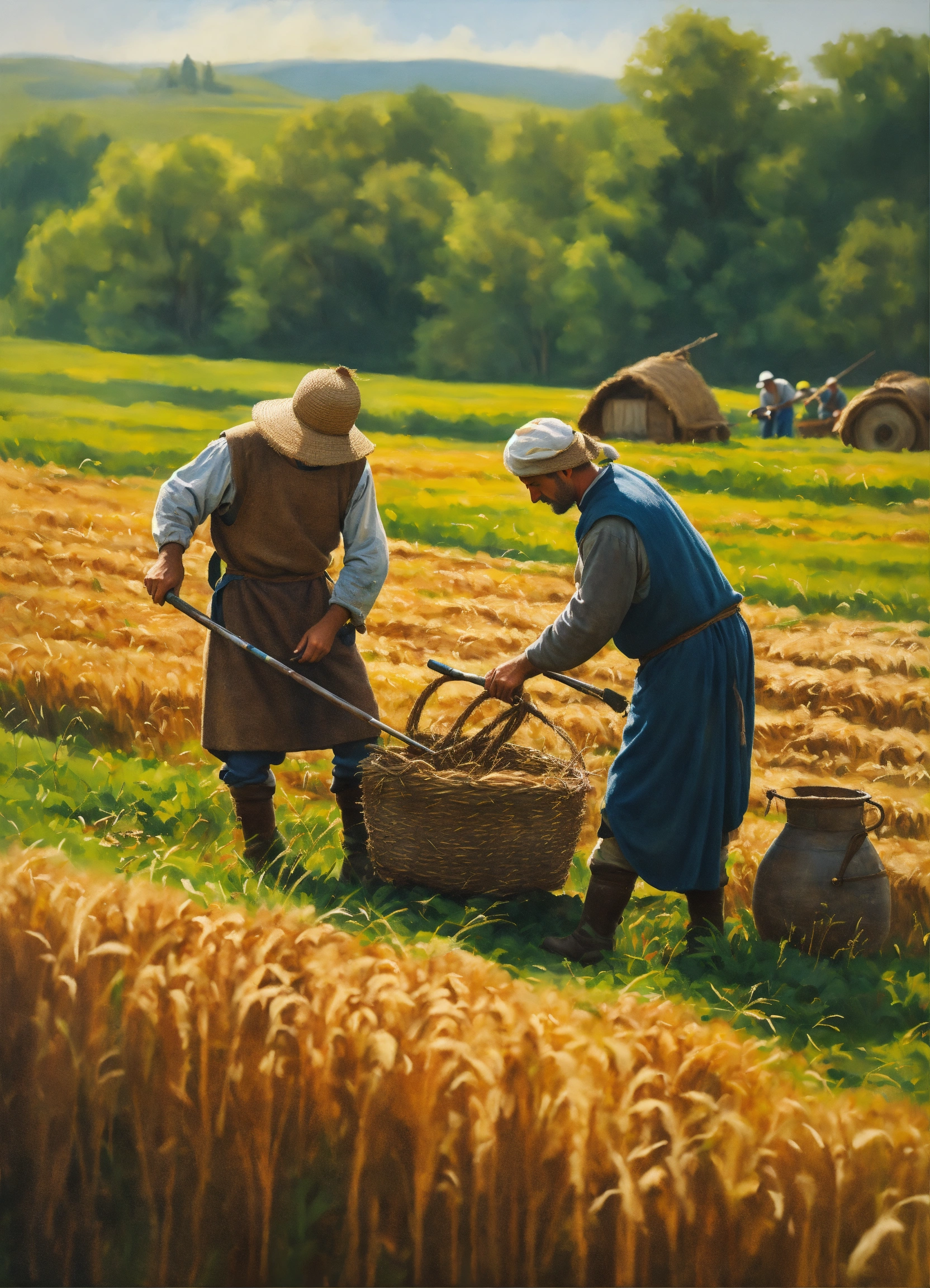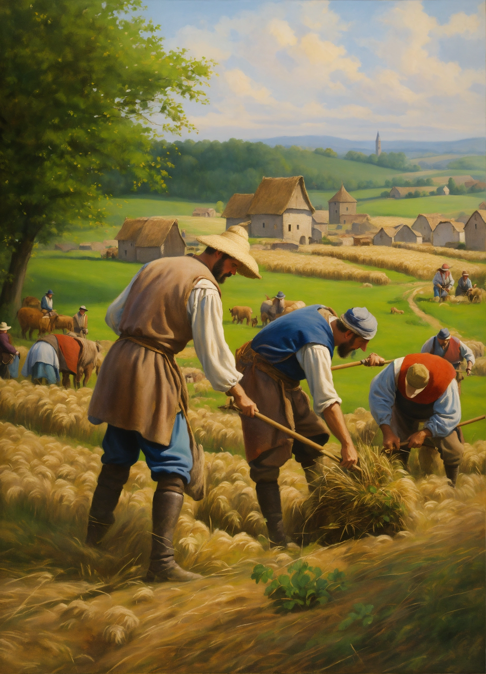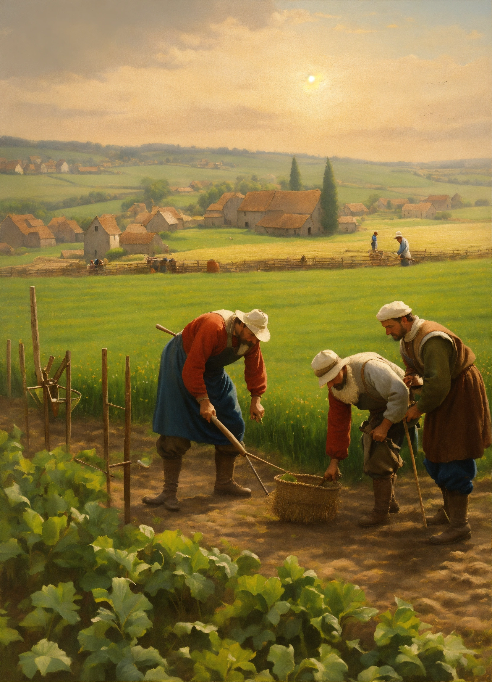 medieval farmers working on field