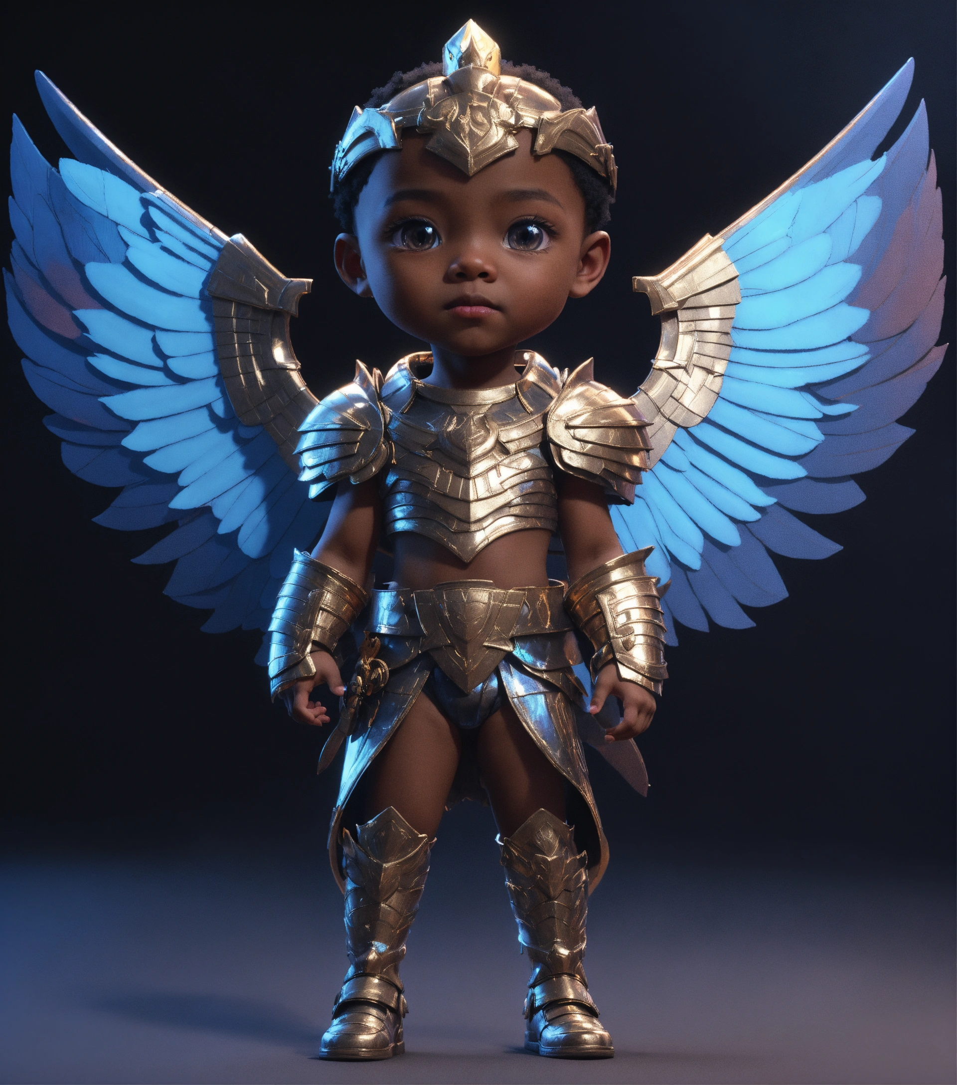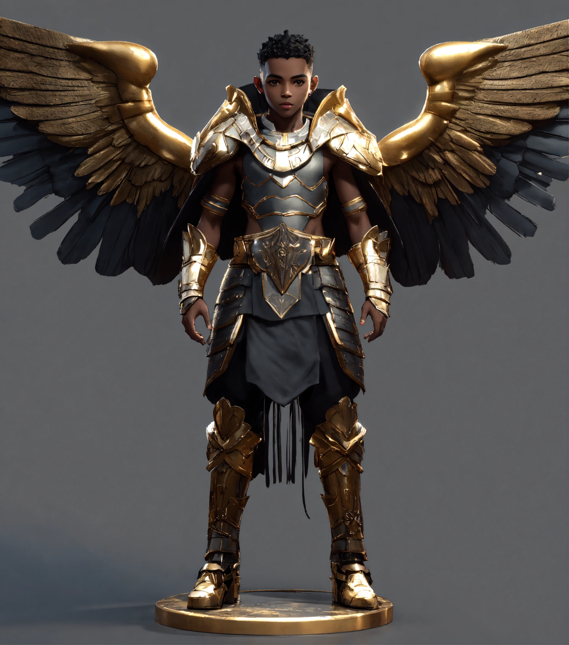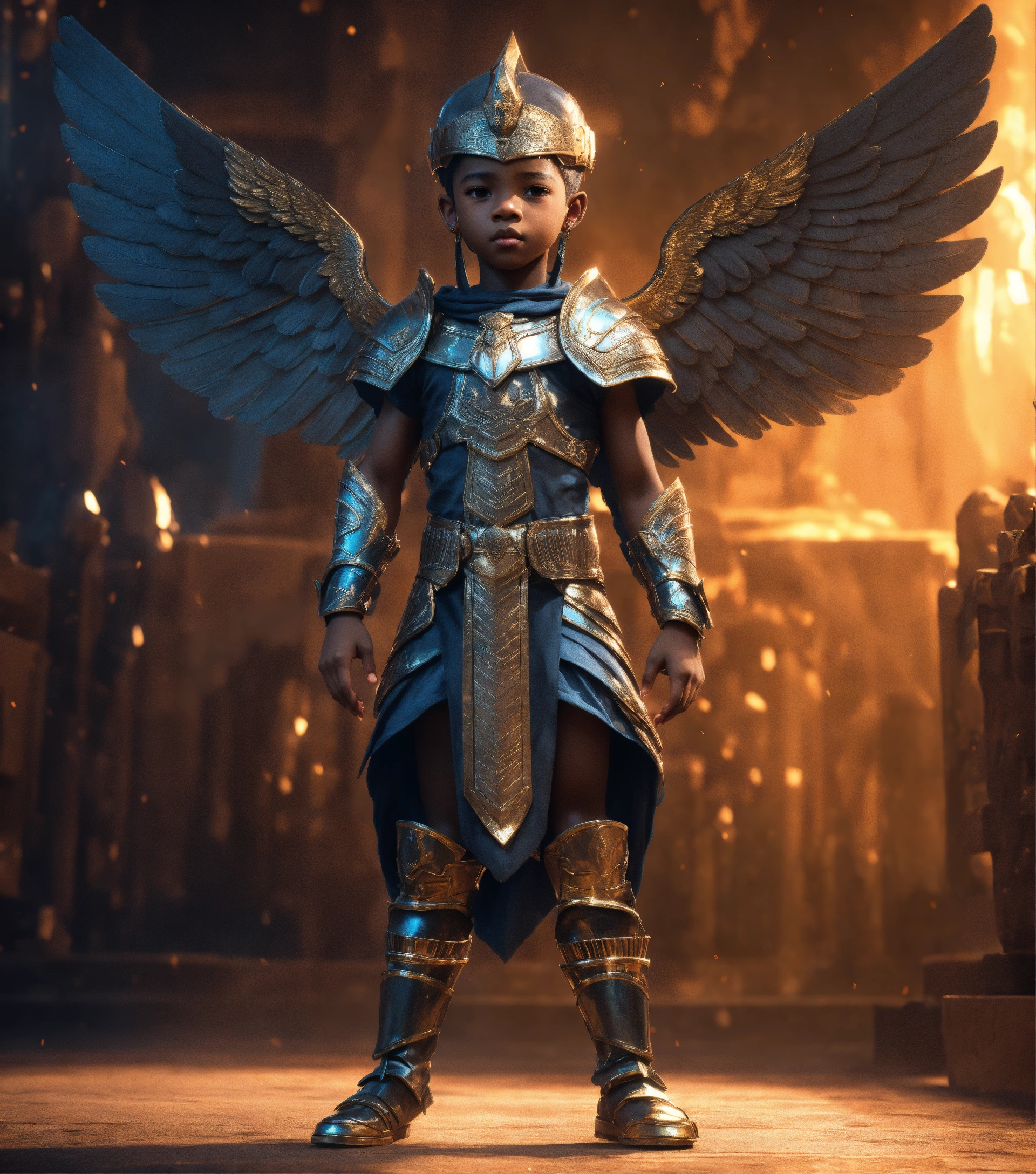 4d photographic image of full body image of a cute little black pharaoh anime boy wearing armor impressionistic, monochromatic octane render trending on artstation, artistic photography, photorealistic concept art, soft natural volumetric cinematic perfect light, uhd no background, intrinsic dystopian, with wings