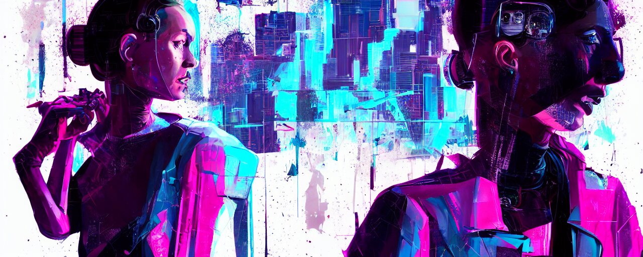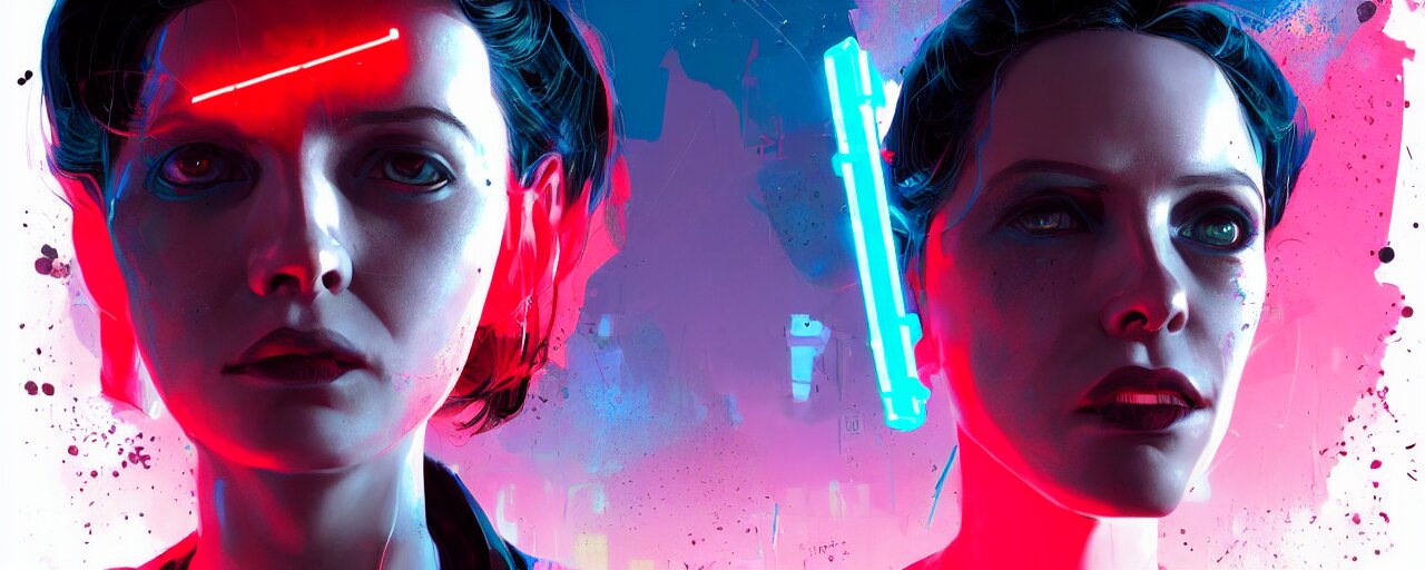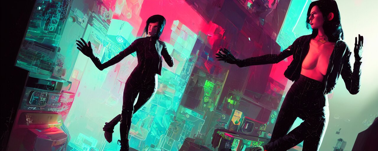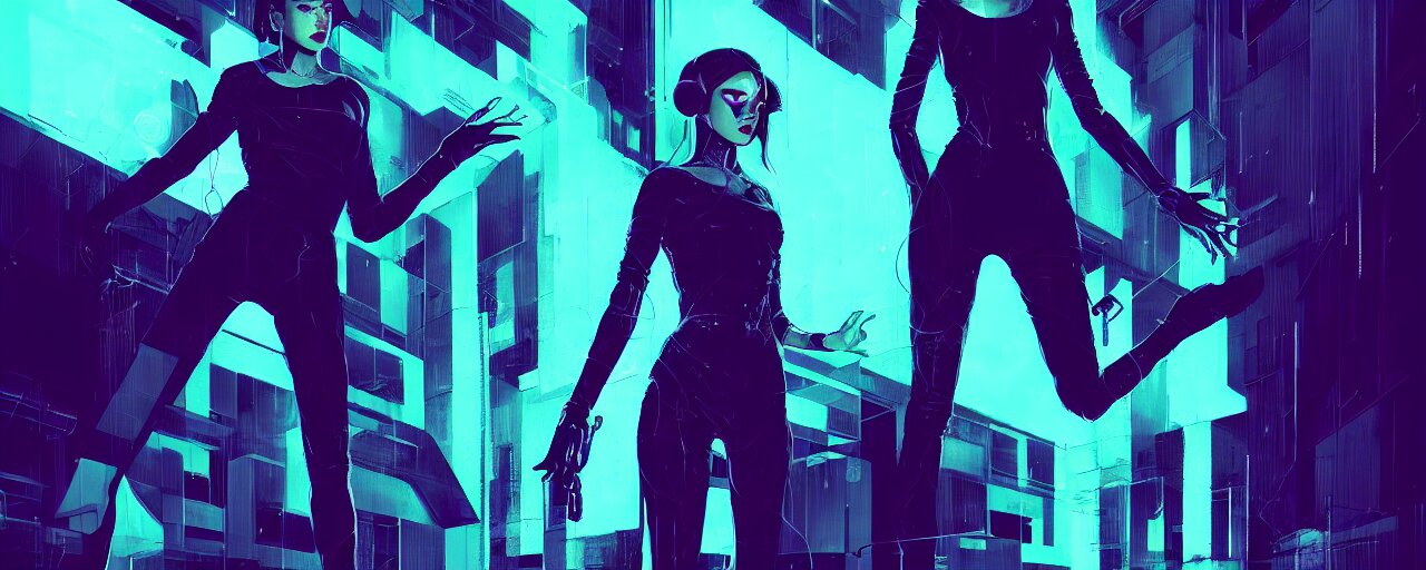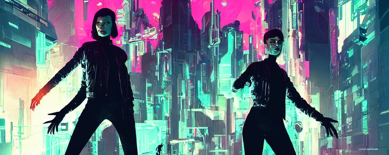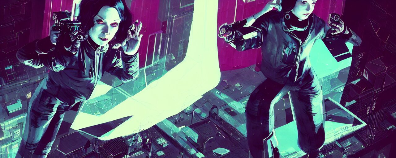 Duotone illustration 3 / 4 portrait of molly millions from neuromancer. mirror eye cyberimplants, claw blades in fingers, trinity matrix, tech noir volumetric lighting. dynamic composition. by sachin teng and sergey kolesov and ruan jia and heng z. graffiti art, scifi, fantasy, hyper detailed. octane render. concept art. trending on artstation