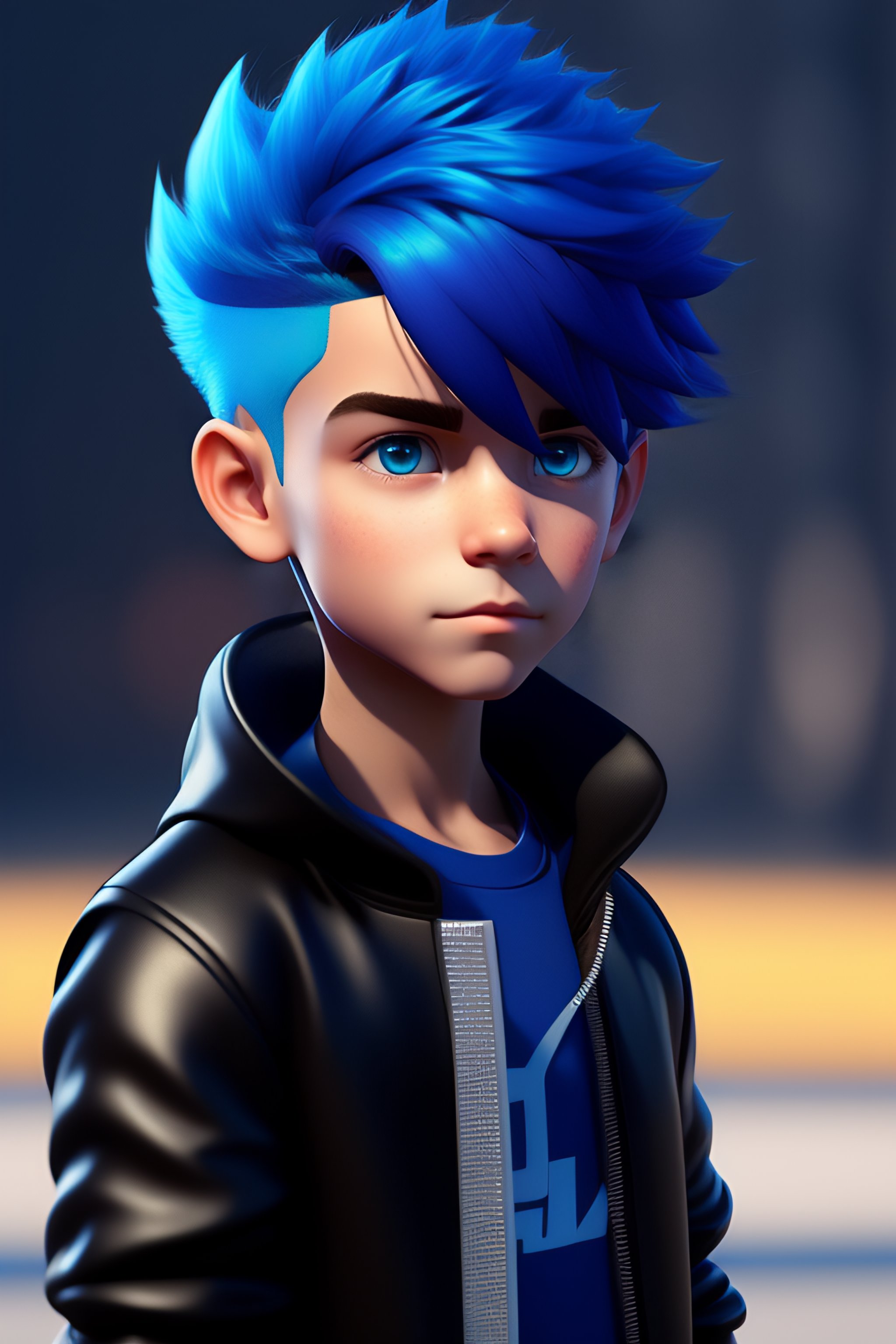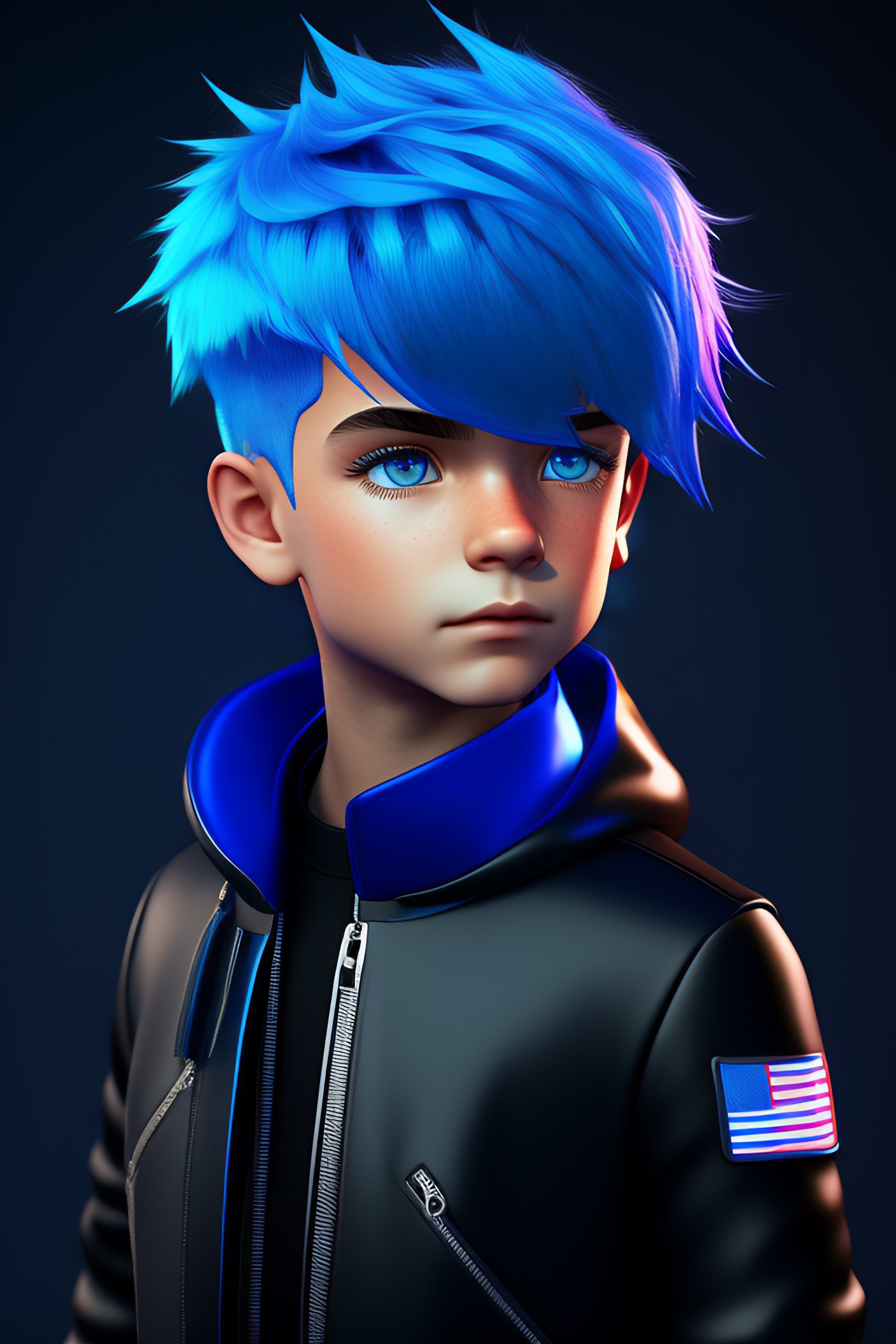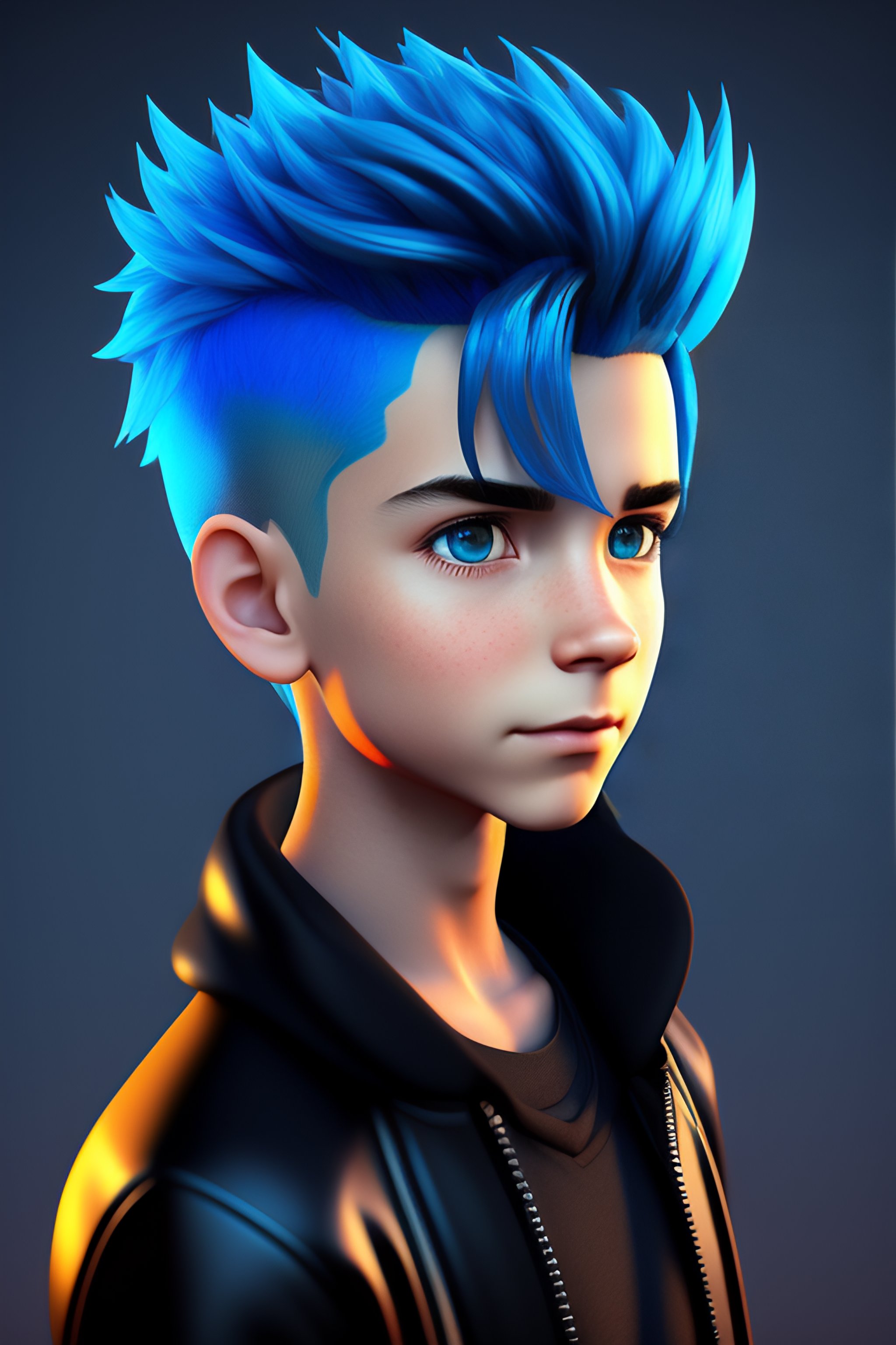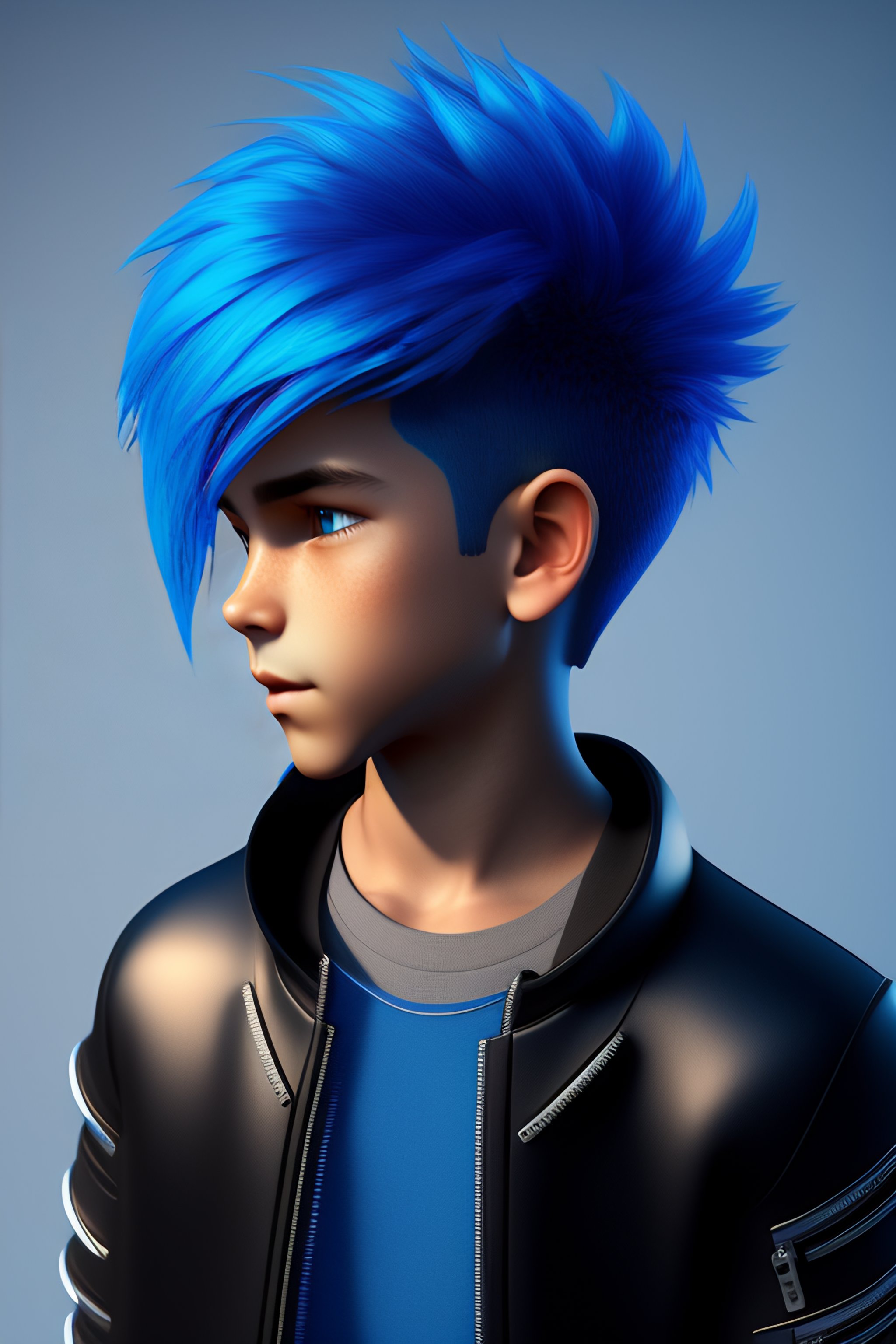 Blue hair boy in black zipper top