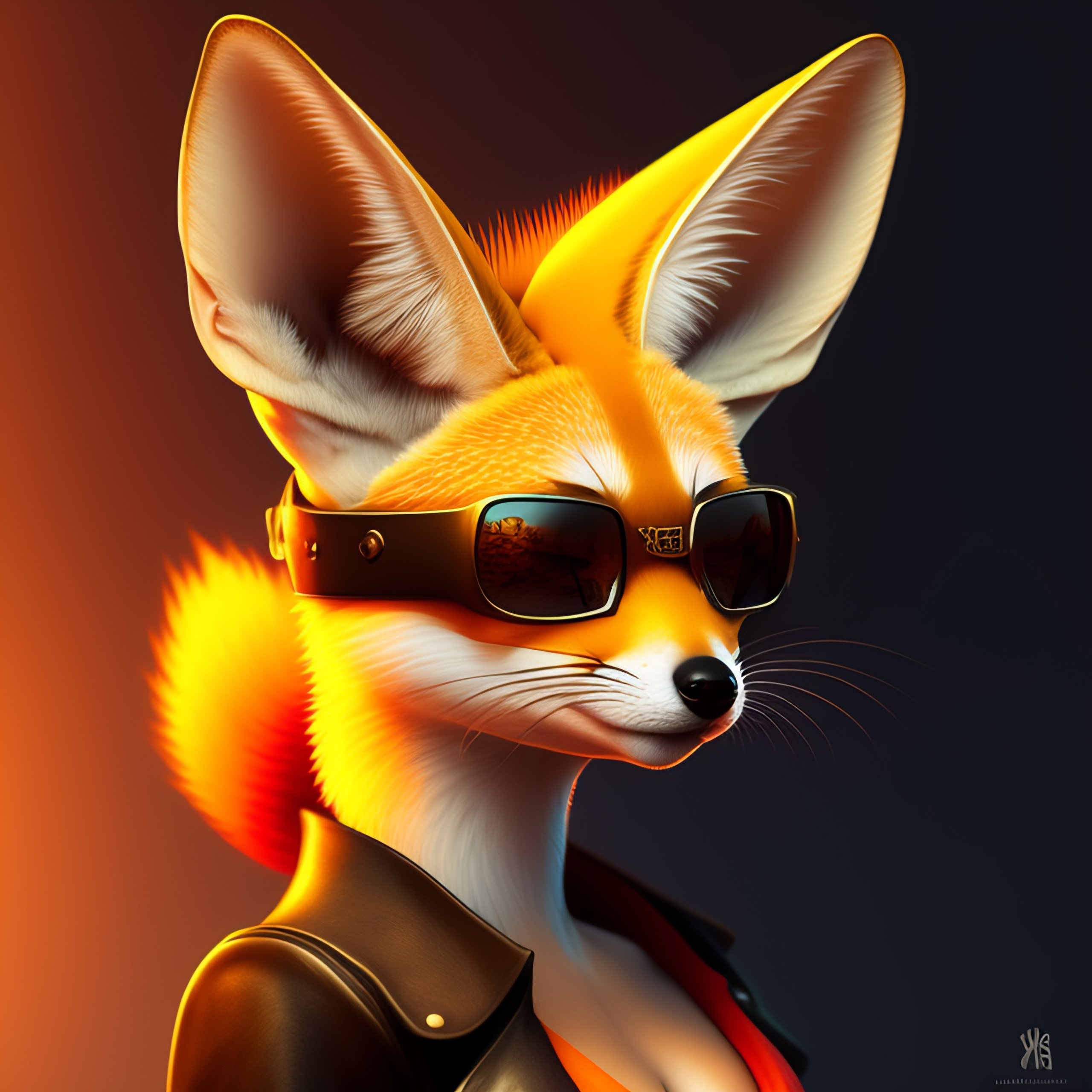 Fennec fox, orange mohawk hairstyle, furry, sunglasses, style, portrait, artstation, award winning, dramatic lighting, draw