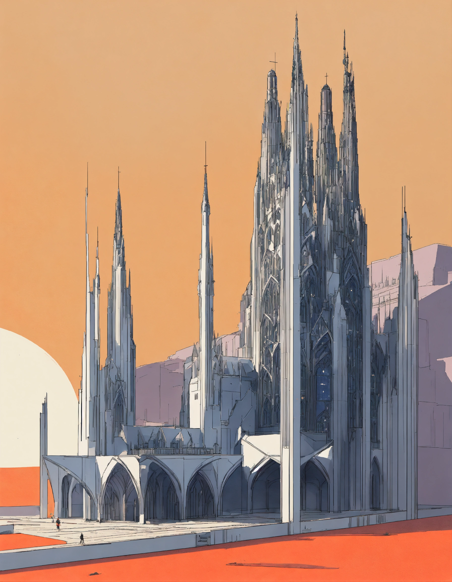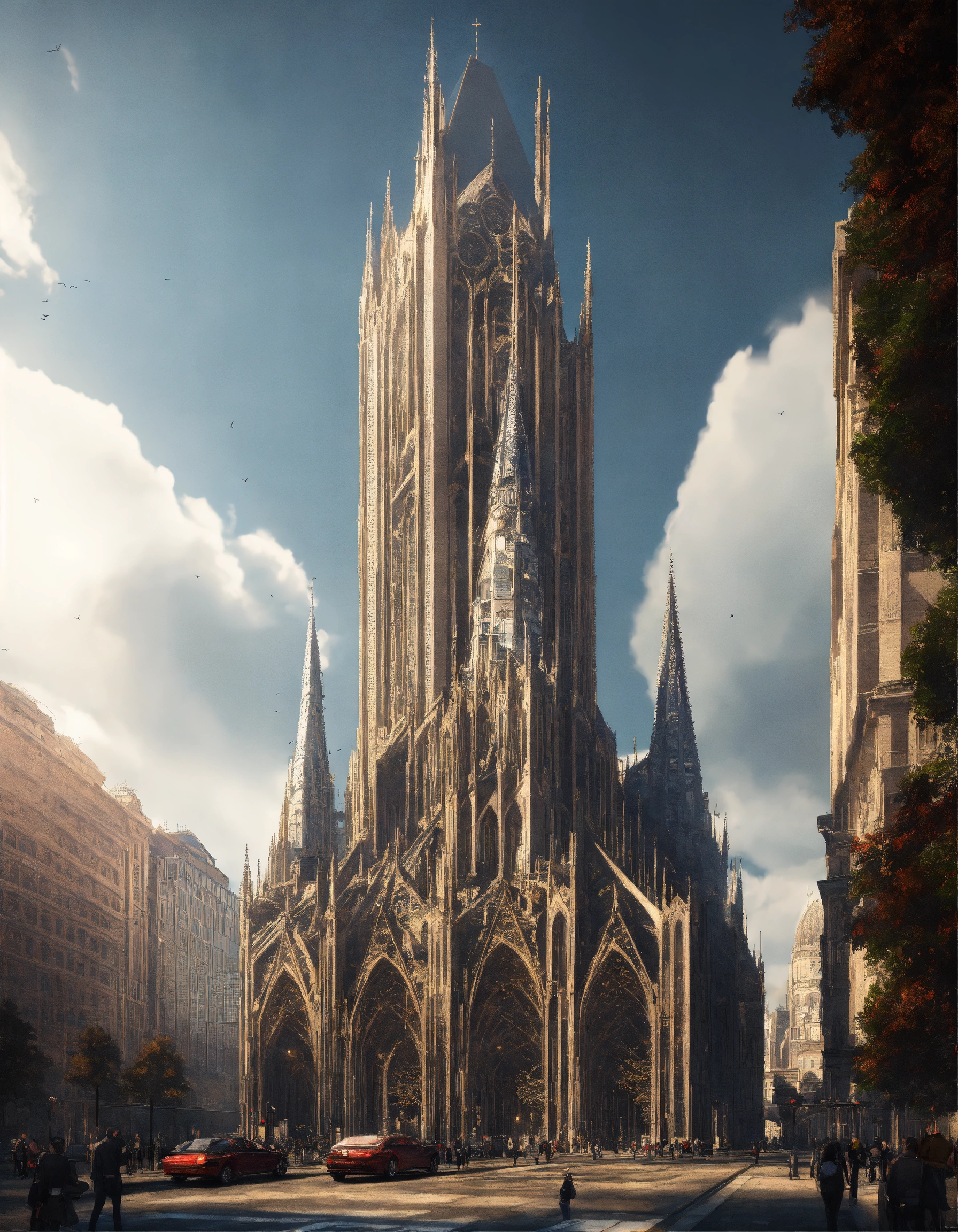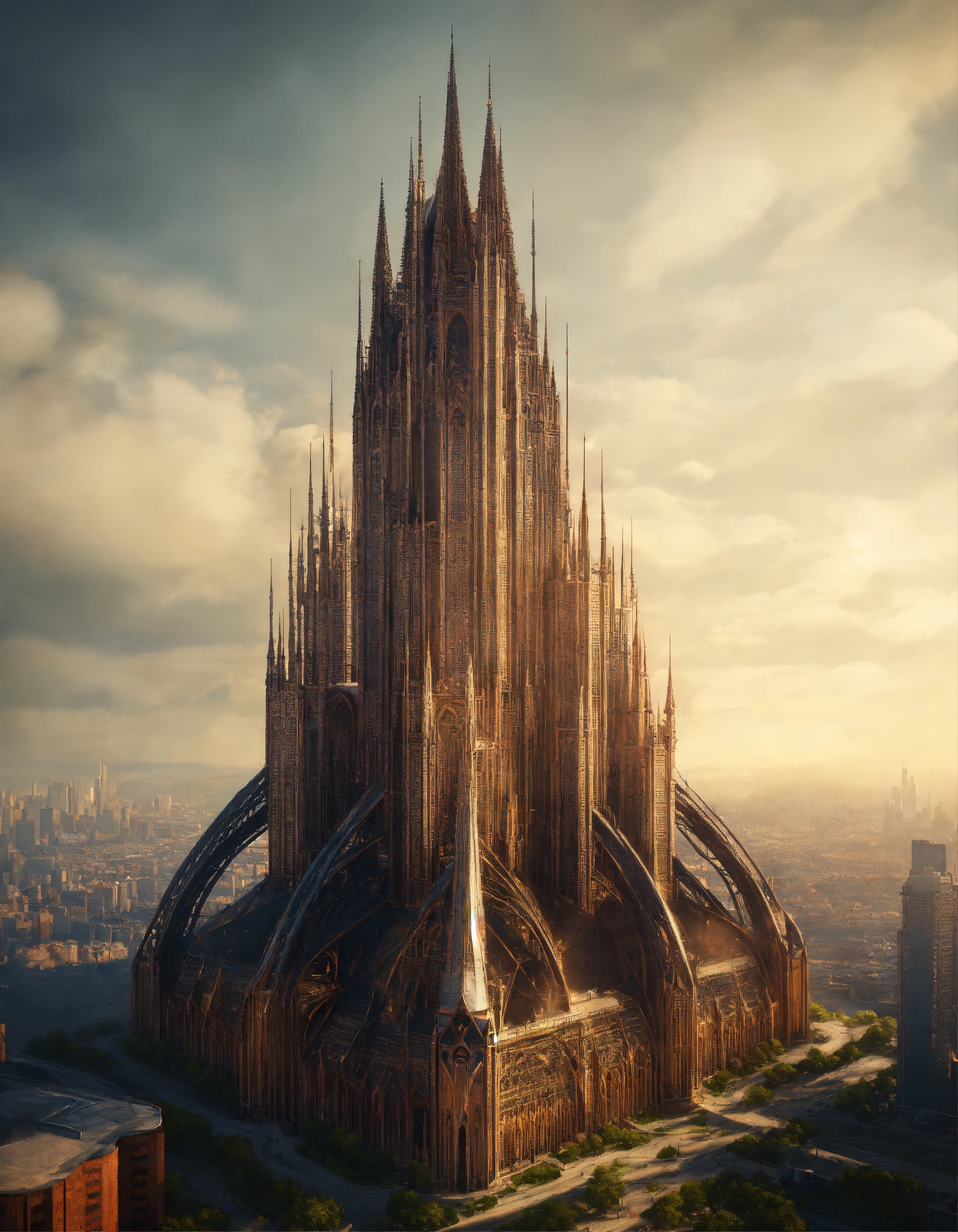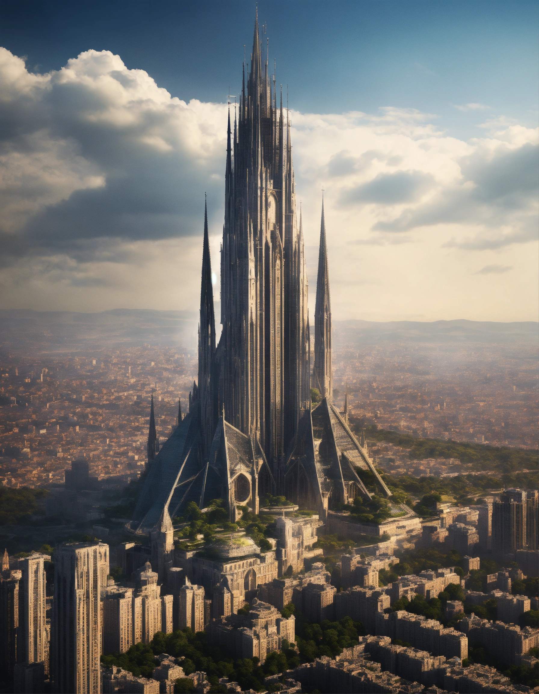 Futuriatic gothic cathedral skyscraper tower high apace complex extreme super hyper ultra