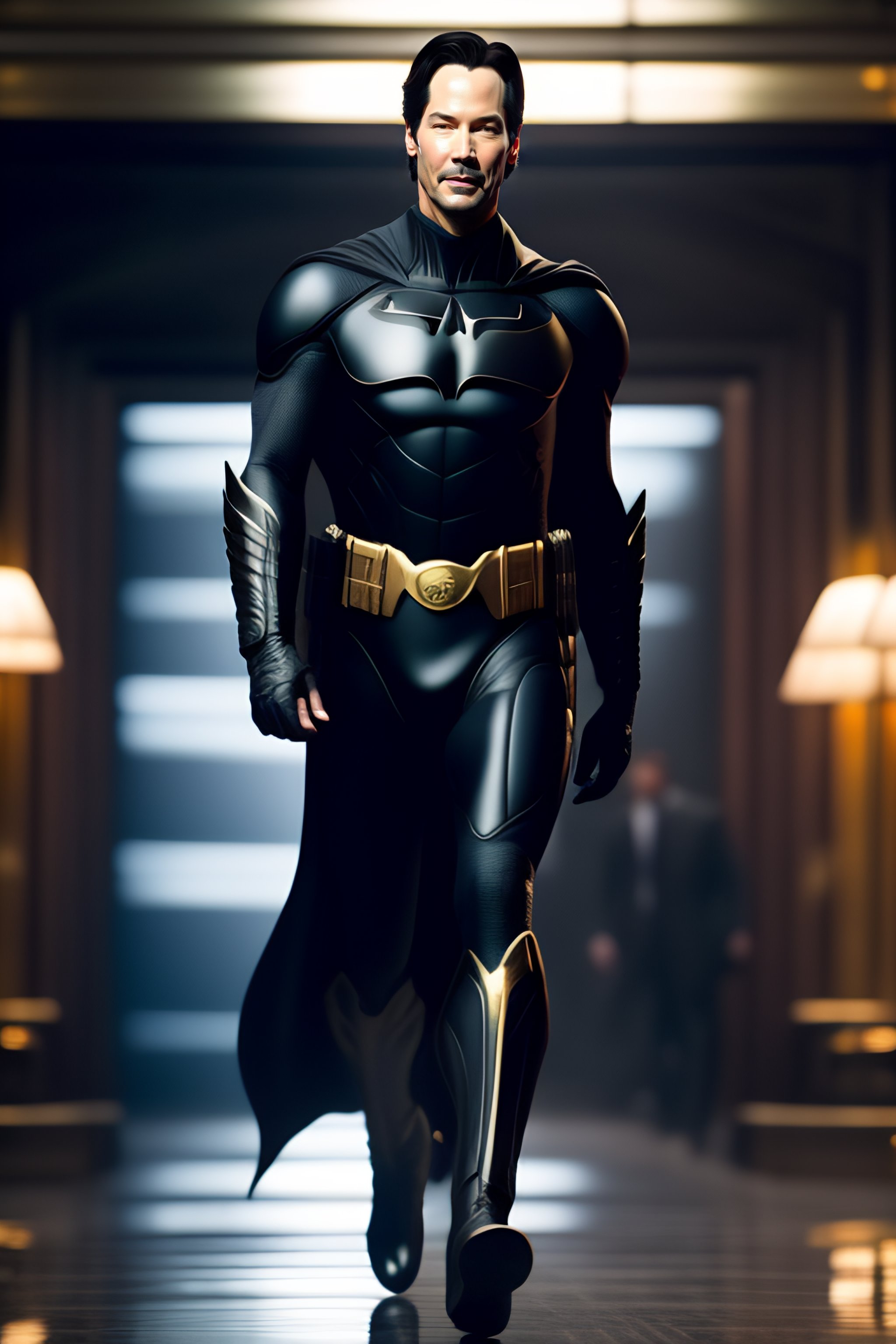 Keanu reeves as bruce wayne with batsuit in batman movie