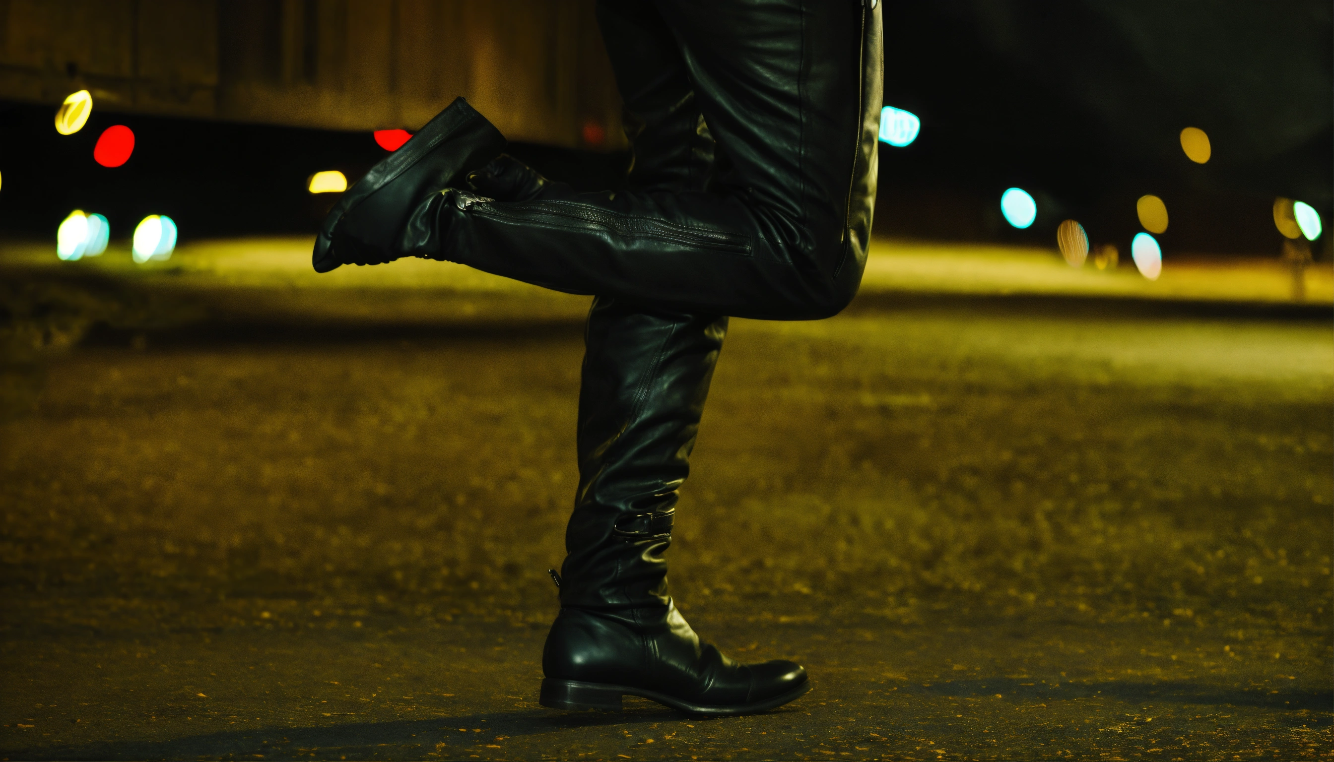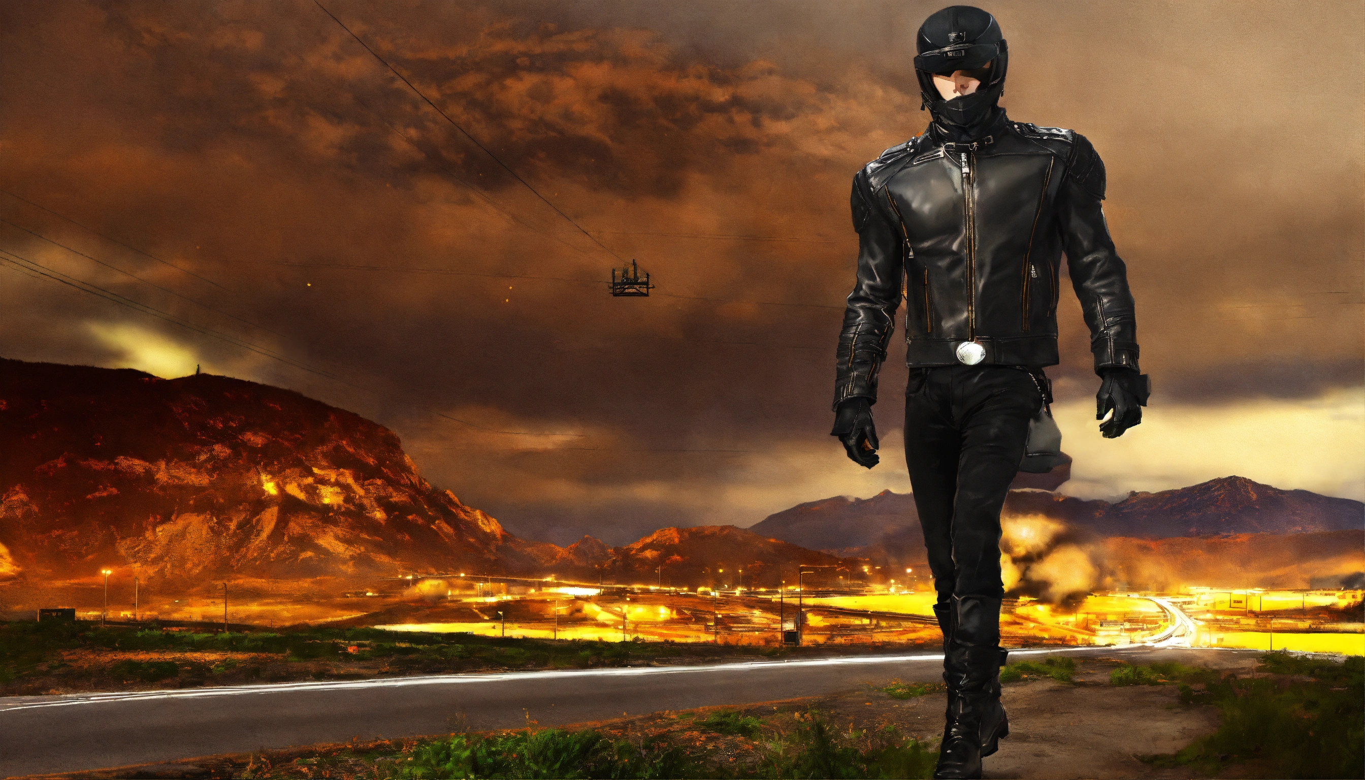 Leather jacket and pants with black gloves for the freeway
