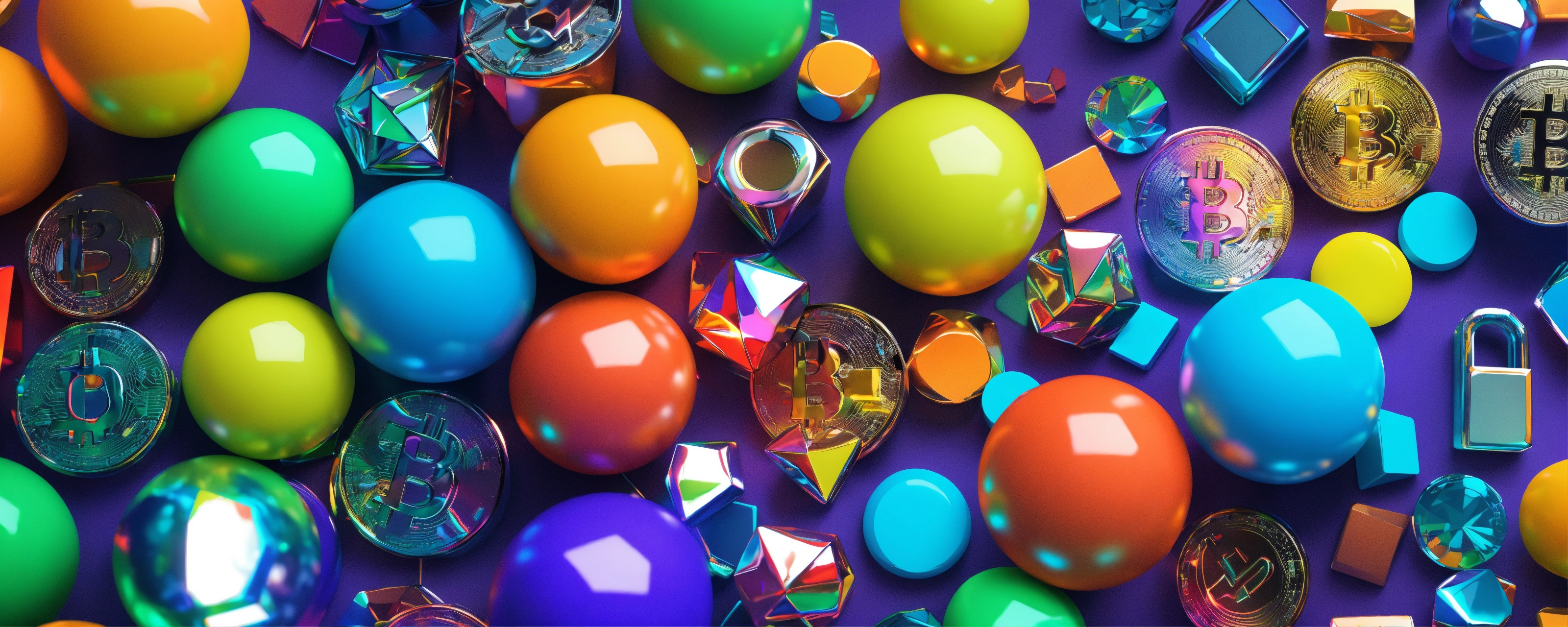 Knolling (blockchain) colorful. 3d hiper-realistic. chrome, plastic texture, 3d. award winning 3d render.