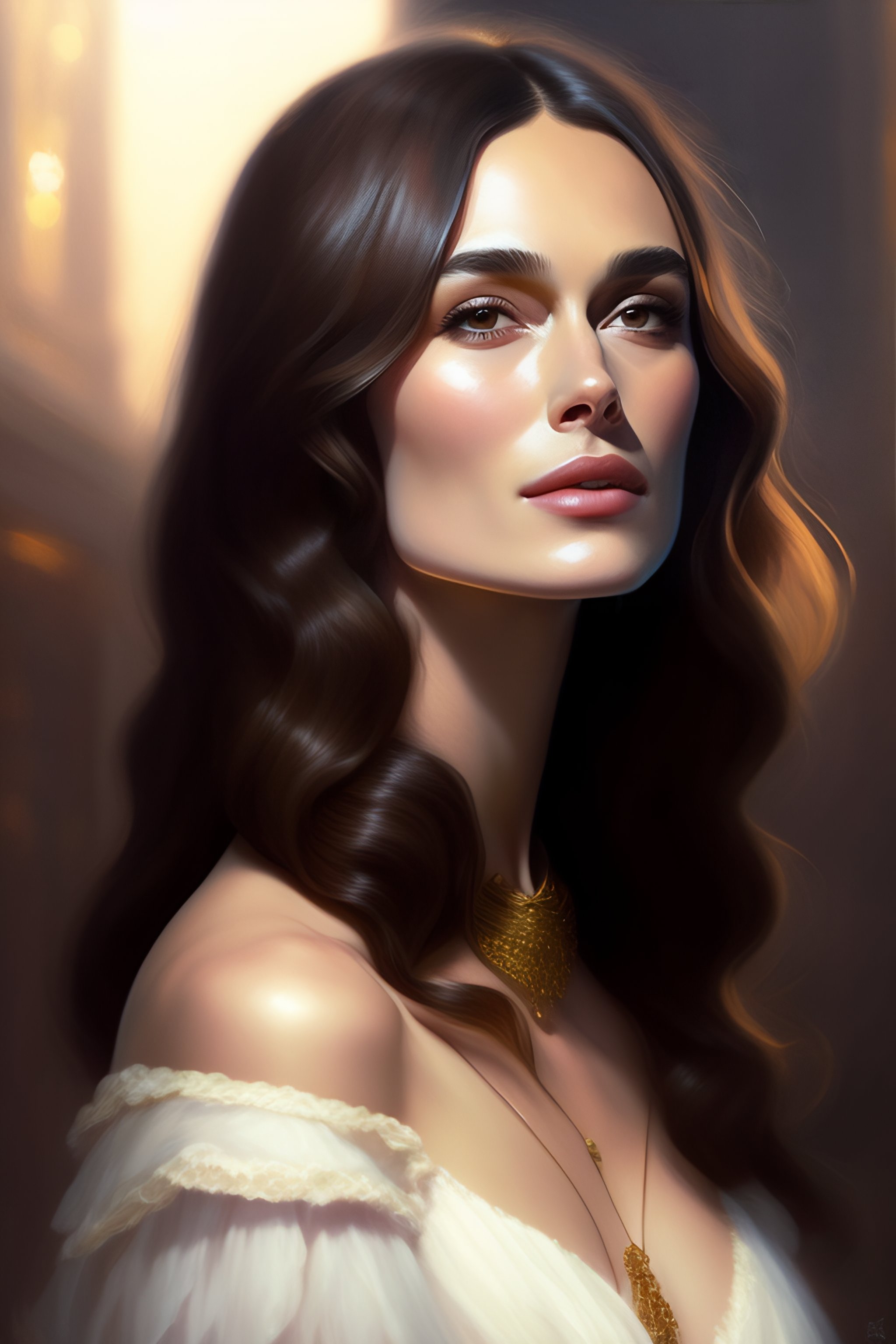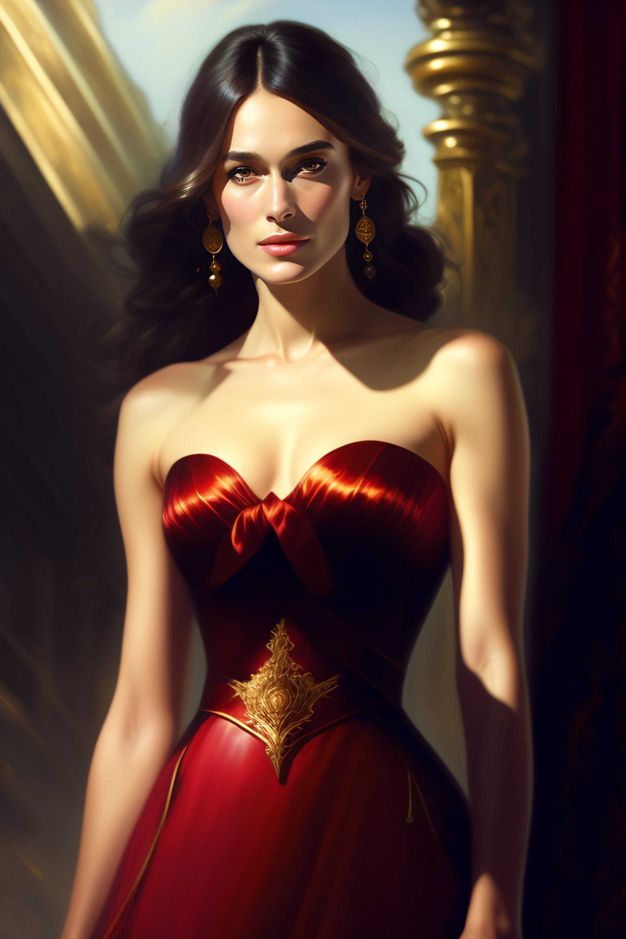 Keira knightley, american actress, baroque oil painting anime key visual full body portrait character concept art, maid commander with flowing brunette hair red eyes, brutalist grimdark fantasy, kuudere noble dictator, trending pixiv fanbox, rule of thirds golden ratio, by greg rutkowski wlop makoto shinkai takashi takeuchi studio ghibli jamie wyeth