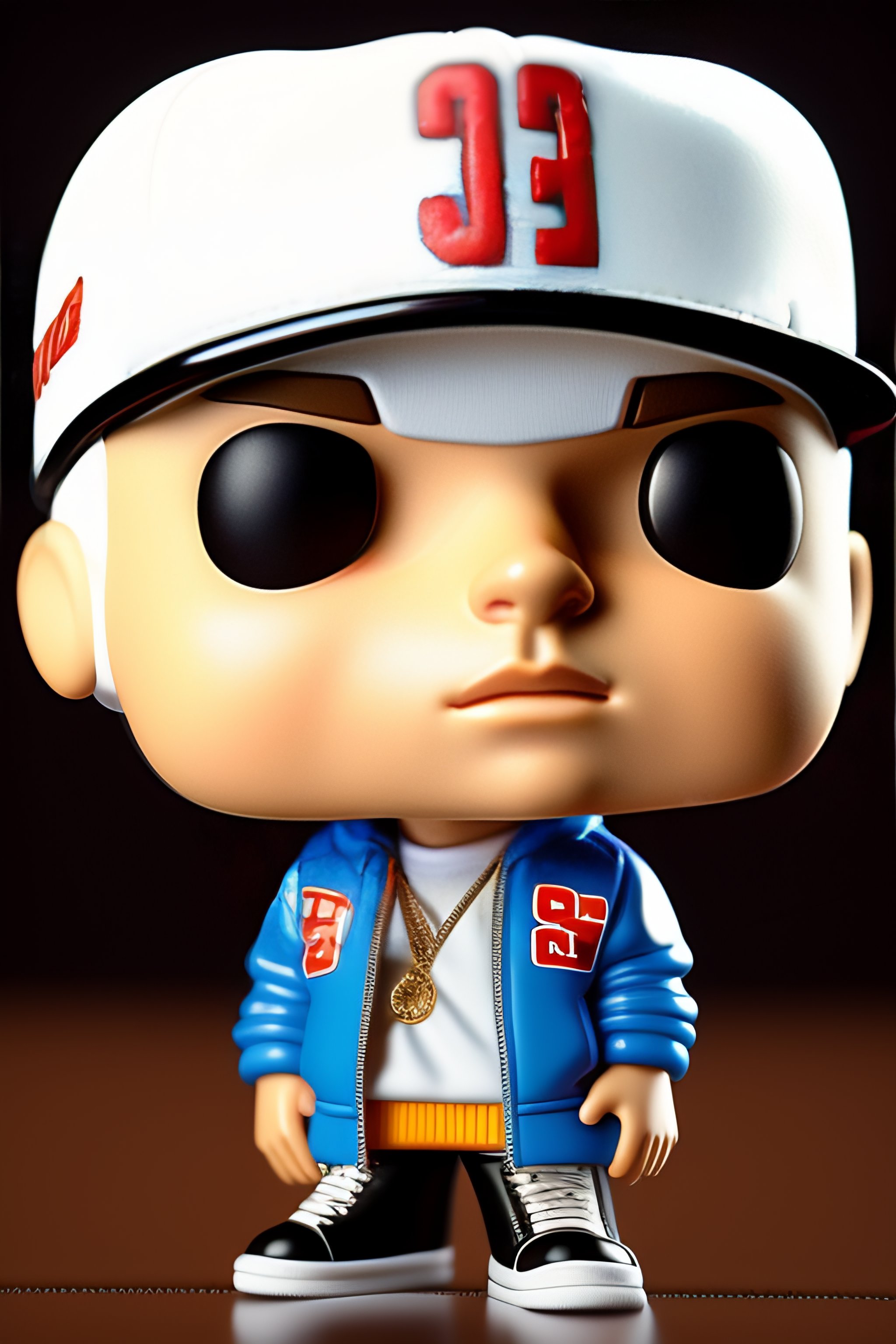 Slim shady, rap star, eminem, singing on style hip hop microphone funko realistic 3d render --q 5 --ar 1:1