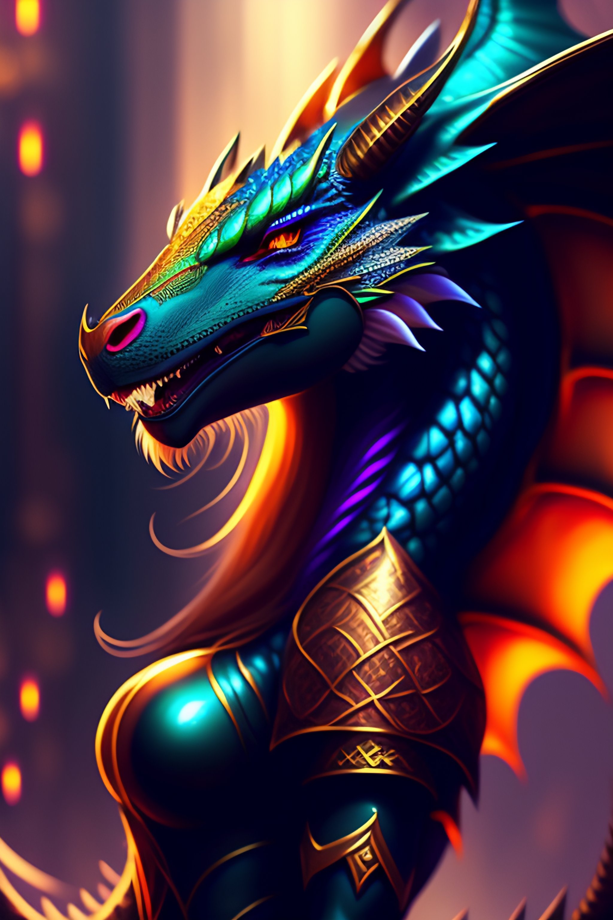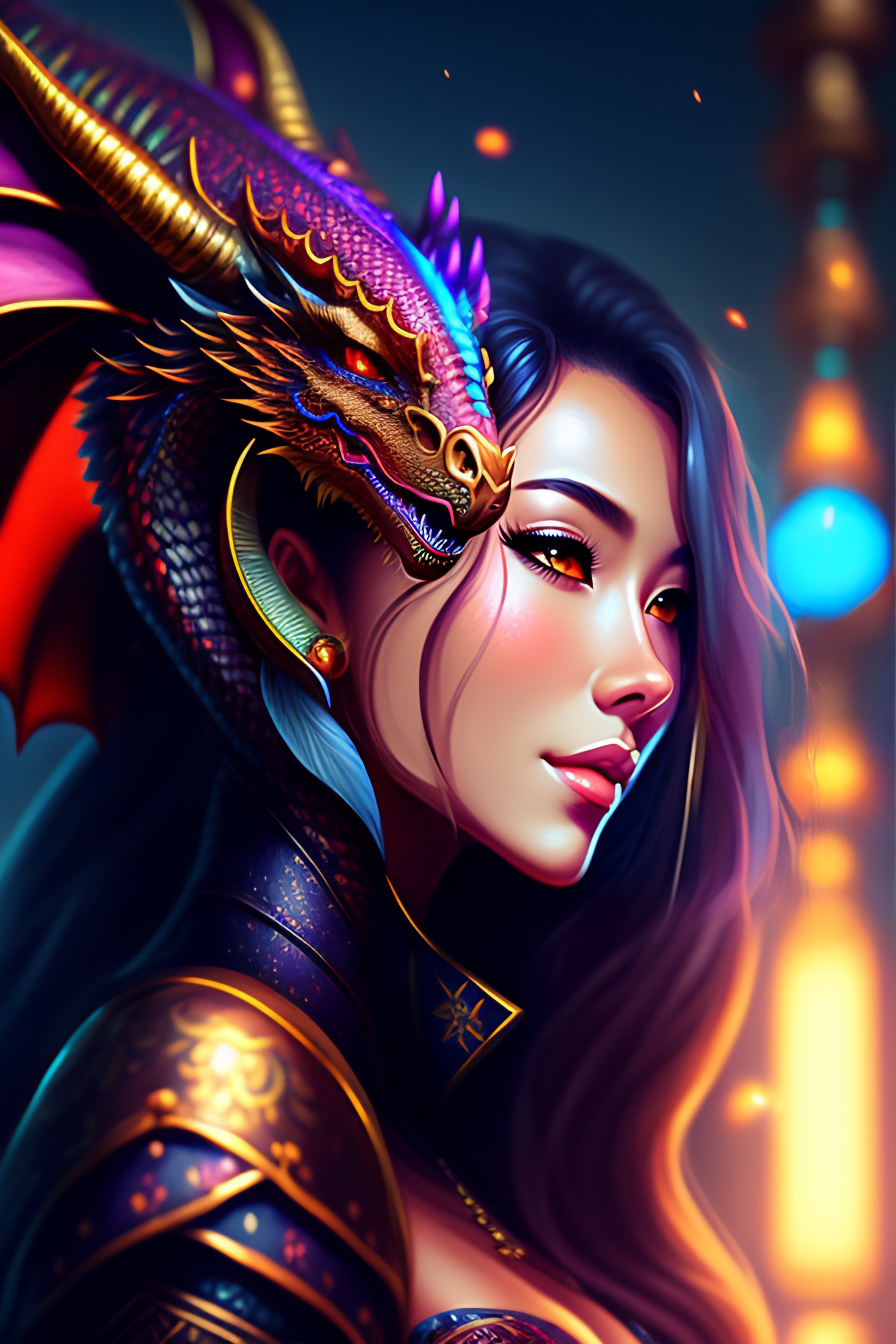 A beautiful anthropomorphic female dragon in a dark environment, accurate details, vibrant colours, intricate, concept art, trending on pixiv