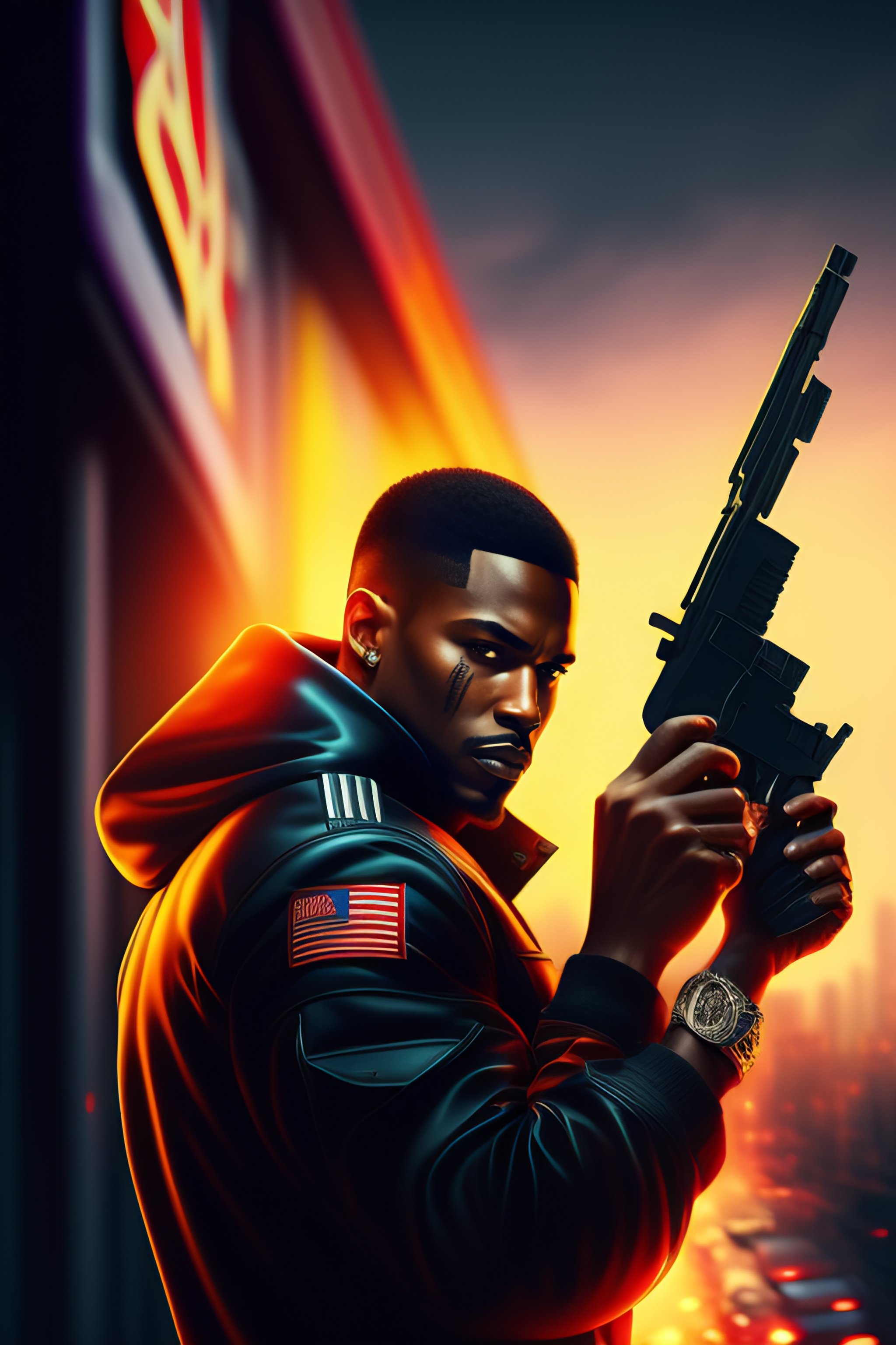 American ganster 2007 movie poster, totem, gangster holding gun, dynamic lighting, photorealistic concept art, trending on art station, stunning visuals, creative, cinematic, ultra detailed, 8k