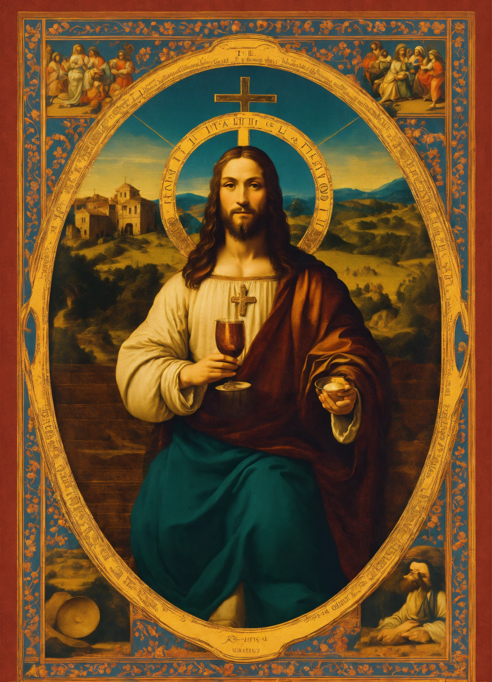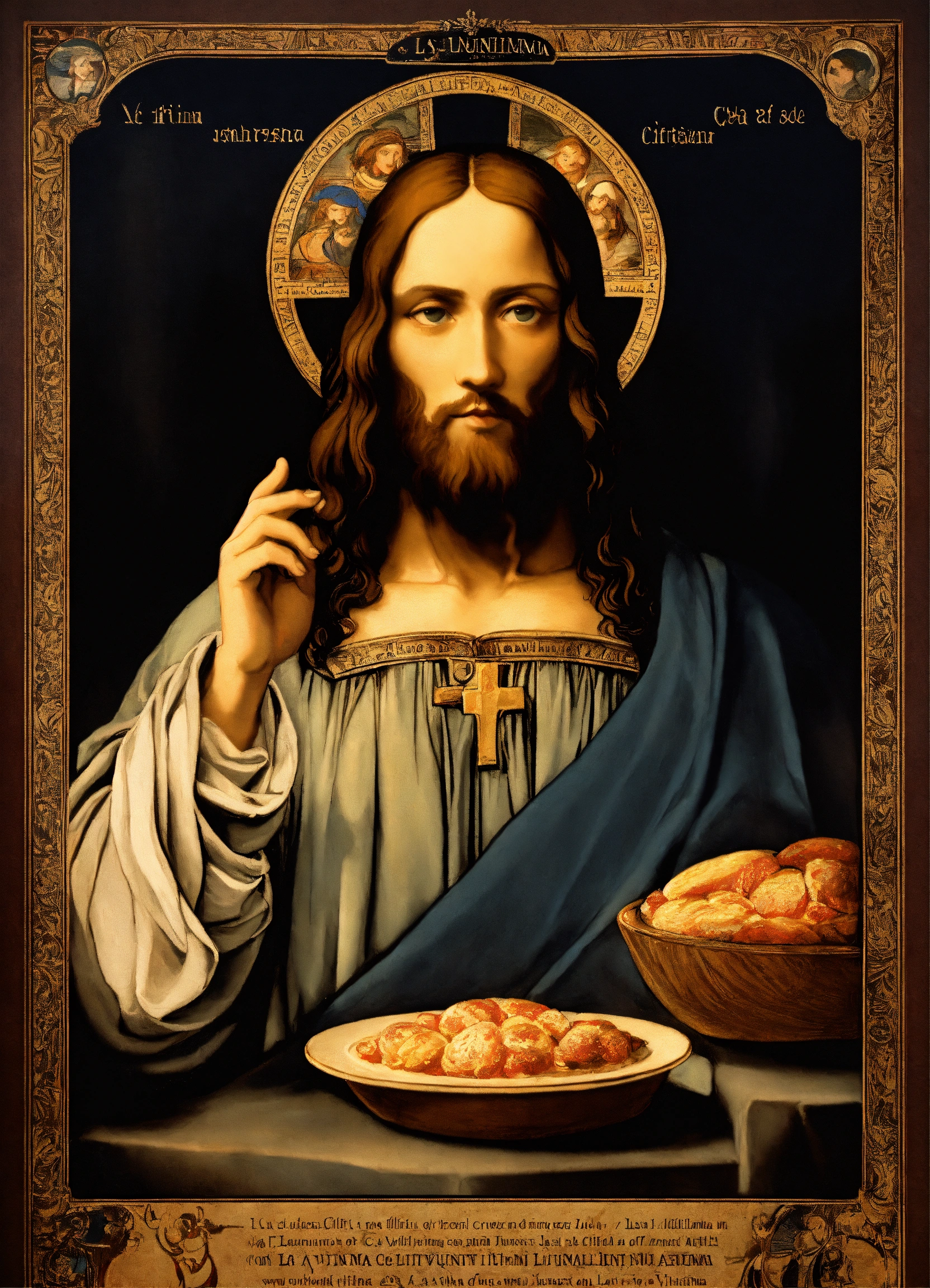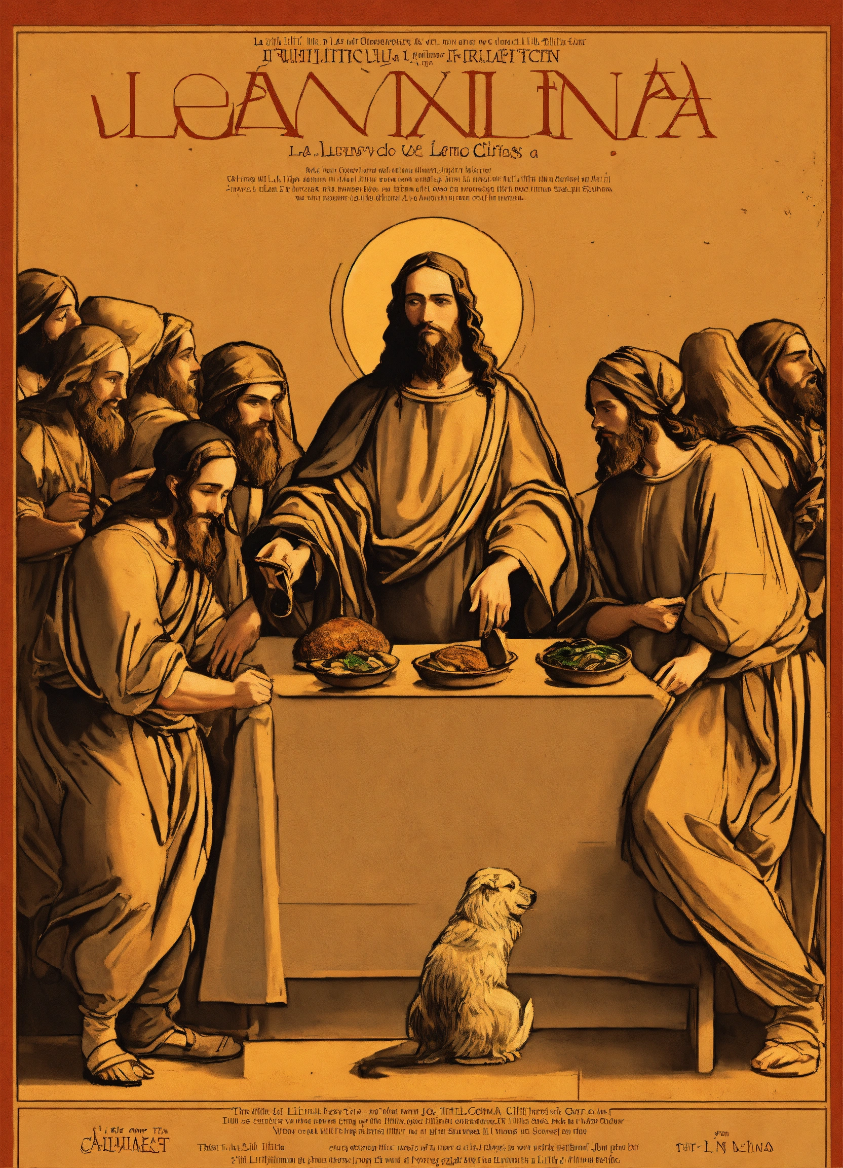 Poster design for t-shirts containing la última cena de leonardo da vinci jesucrist