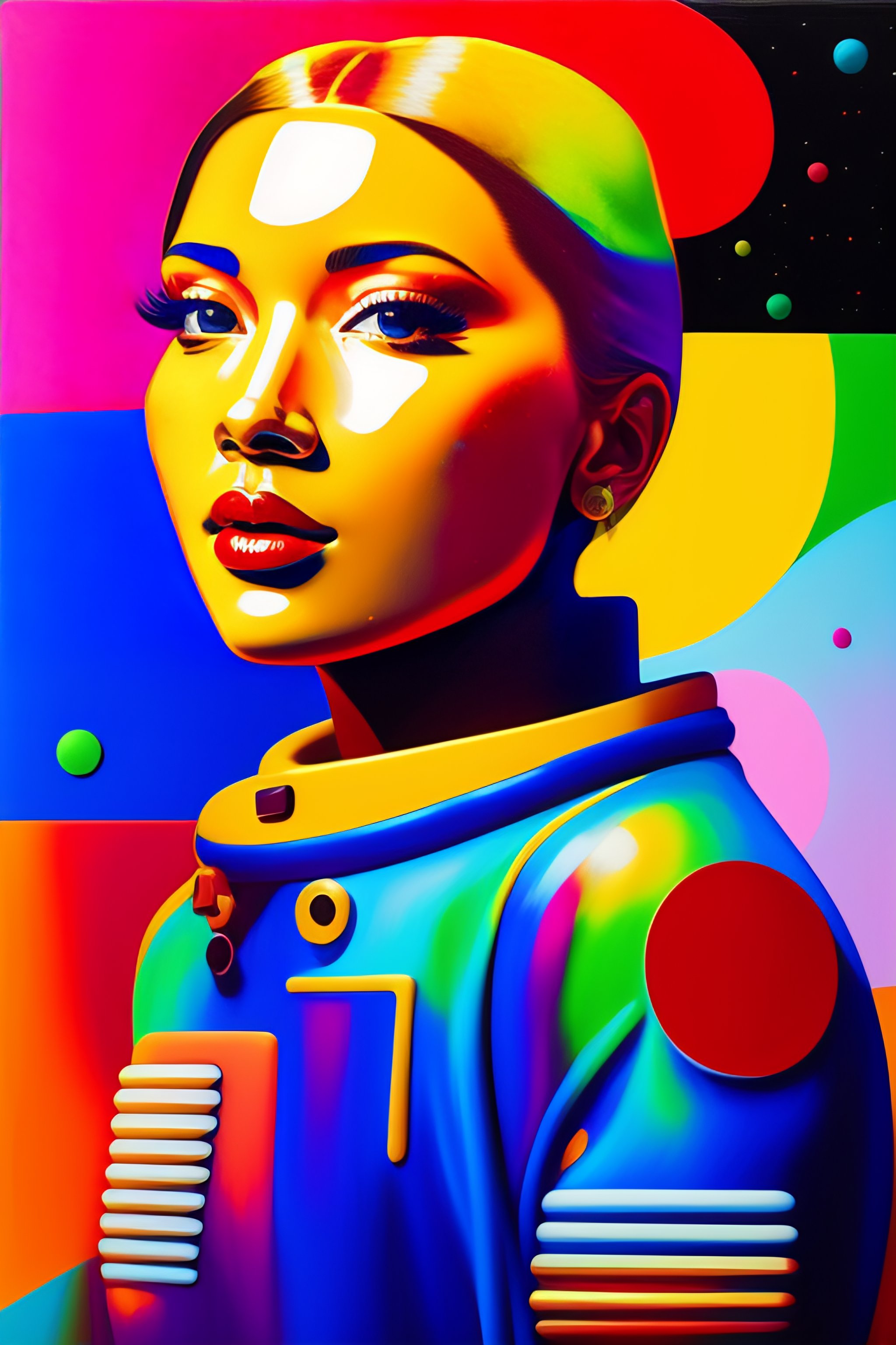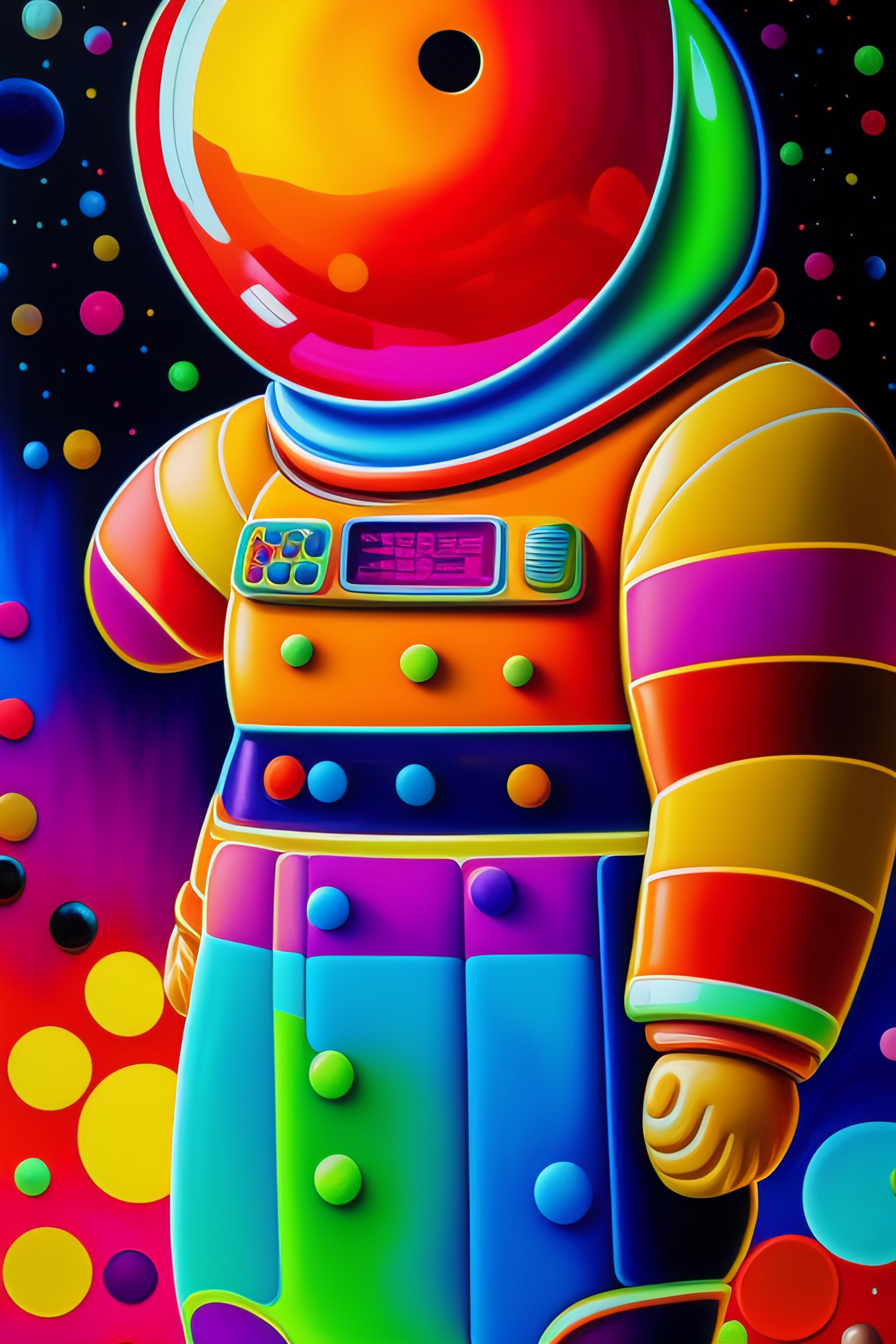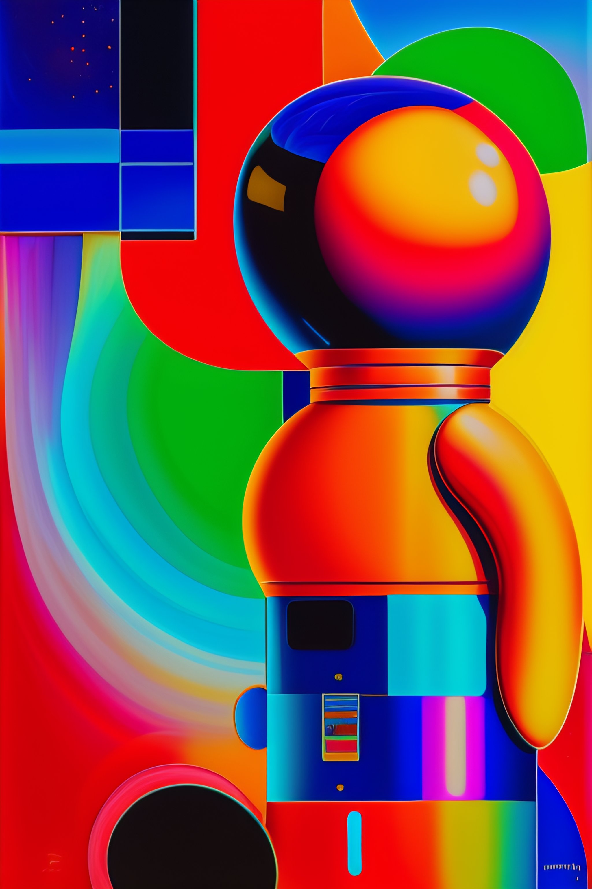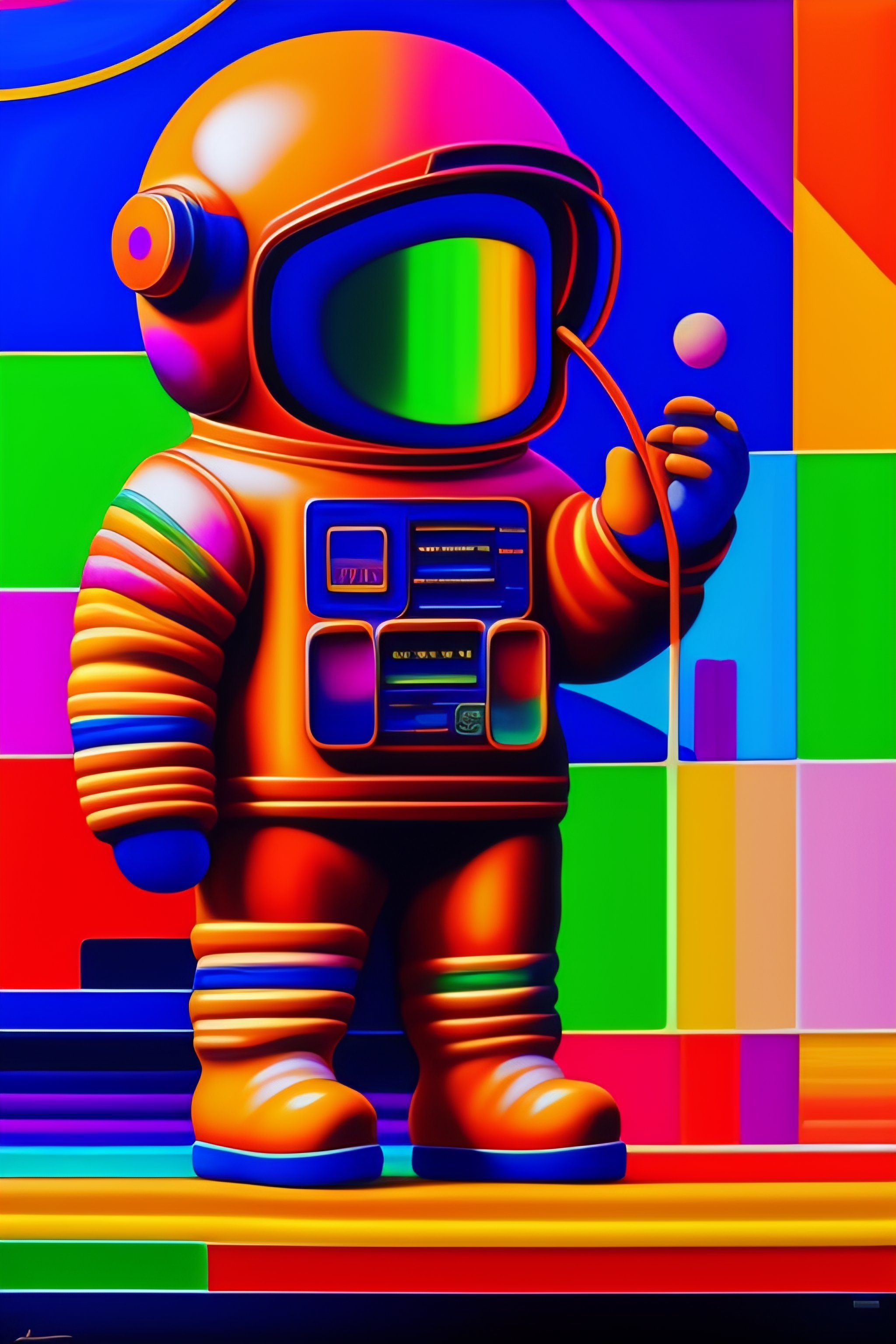 Gingerbread man, astronaut, vibrant colors, palette knife oil painting, cassette futurism, abstract expressionistic, artwork, depth of field, bokeh. iridescent accents. vibrant. avant garde, modernist, colourful, wet oil paint, abstract, by francois nielly, by picasso, by leonardo da vinci, by andy warhol
