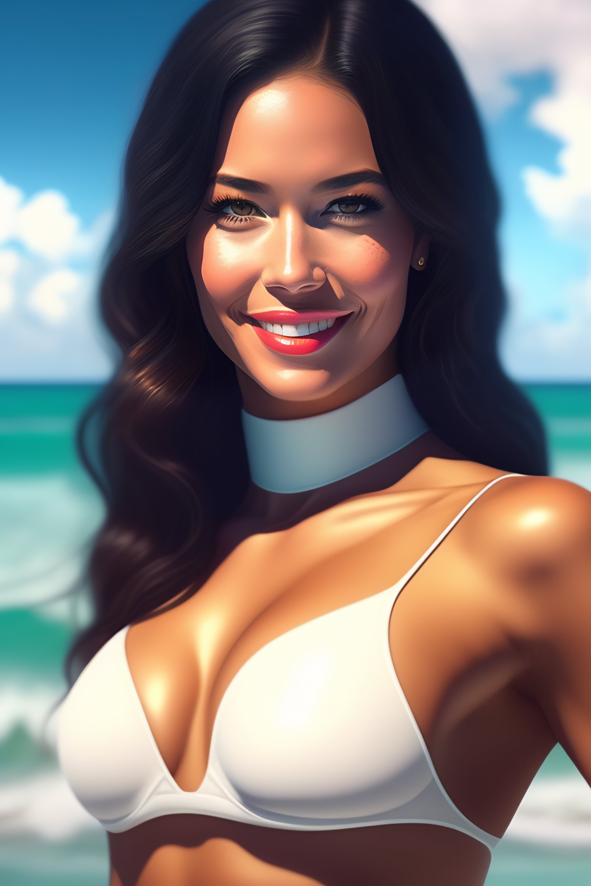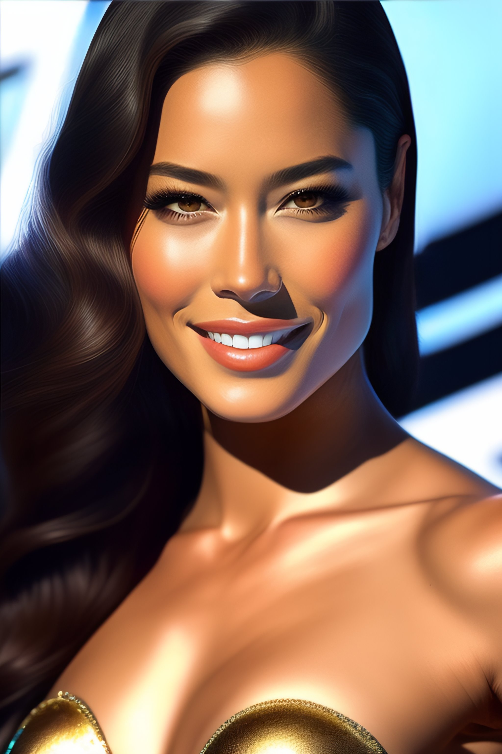 Ultra realistic, beautiful ana ivanovic in bikini dc comics waist up floating, on stage, symmetrical face symmetrical eyes, smiling, modern anime, fantasy, eerie, intricate details, atmospheric, elegant, super highly detailed, professional digital painting, artstation, concept art, 8k, art by artgerm and eiichiro oda and koyoharu gotouge
