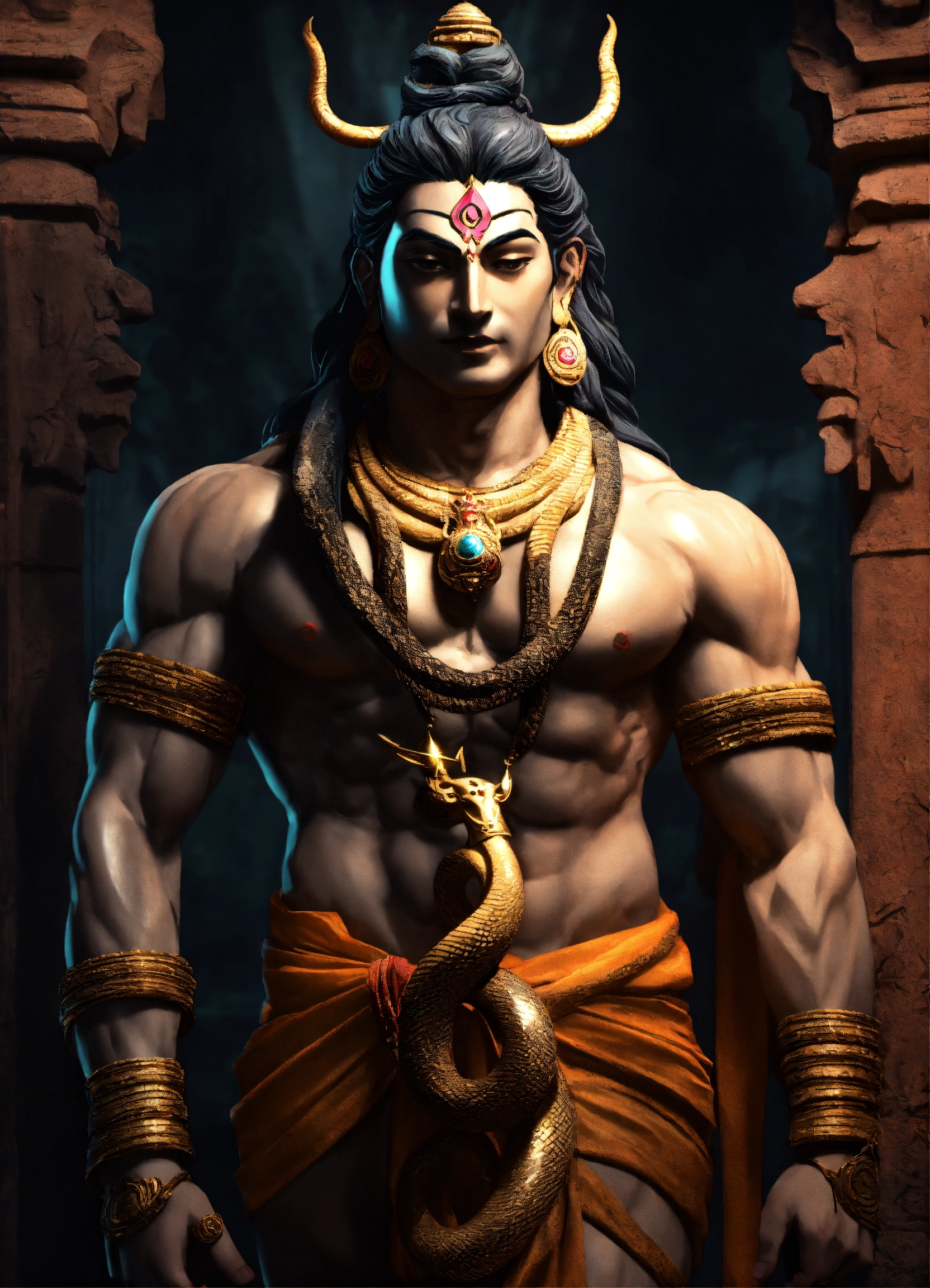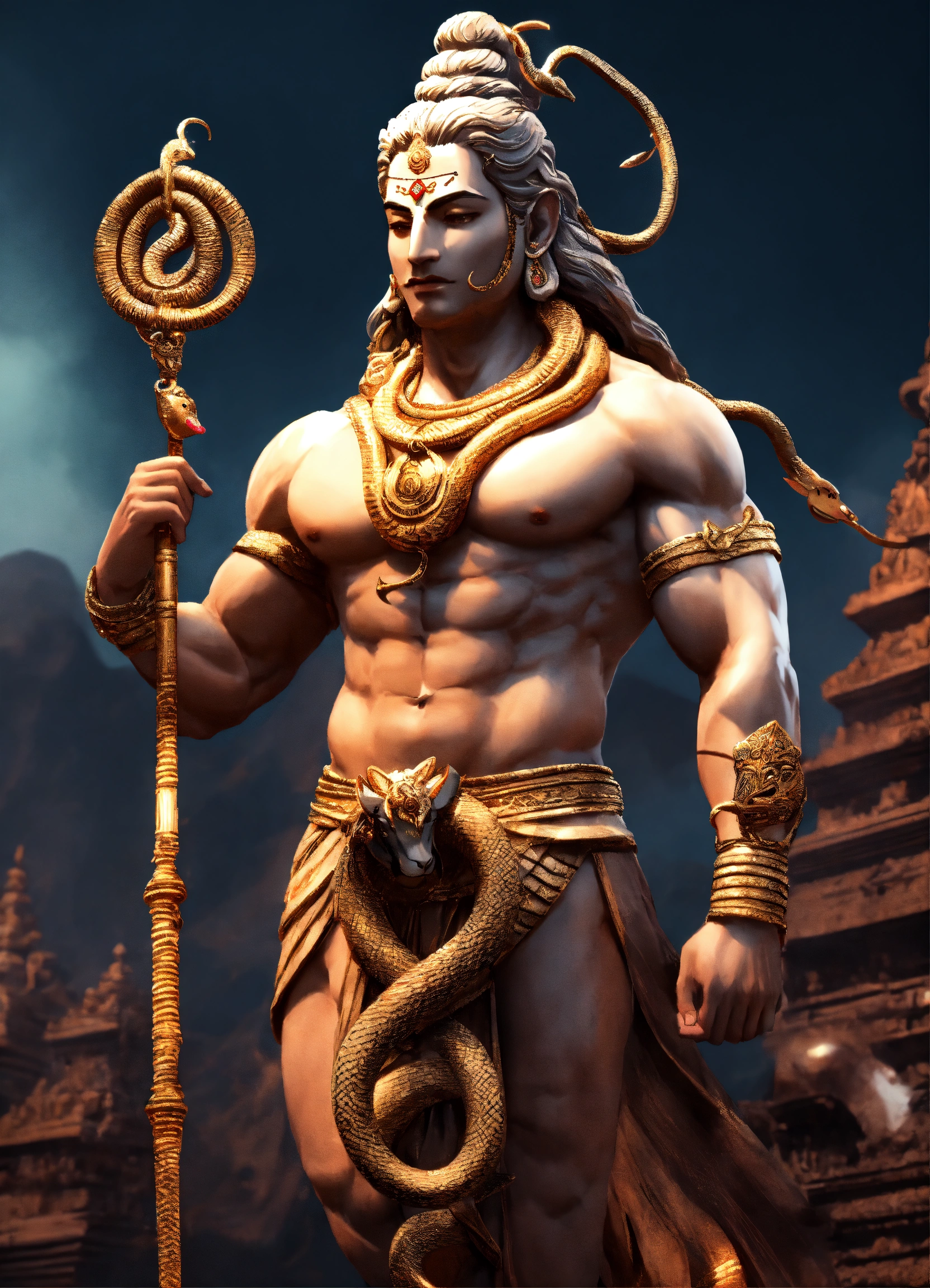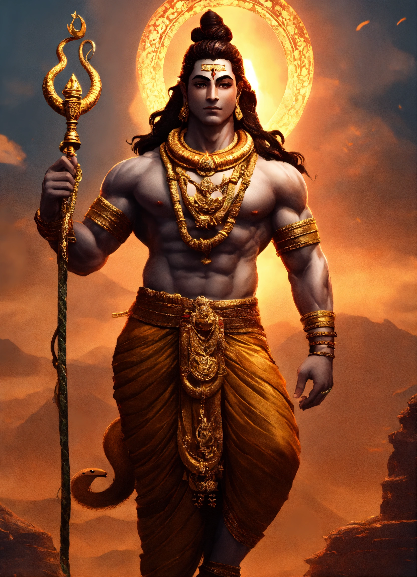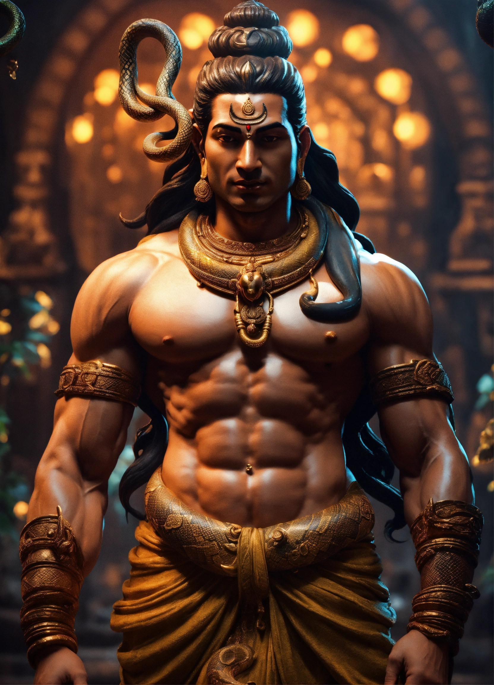 Muscular lord shiva with snake around neck full body
