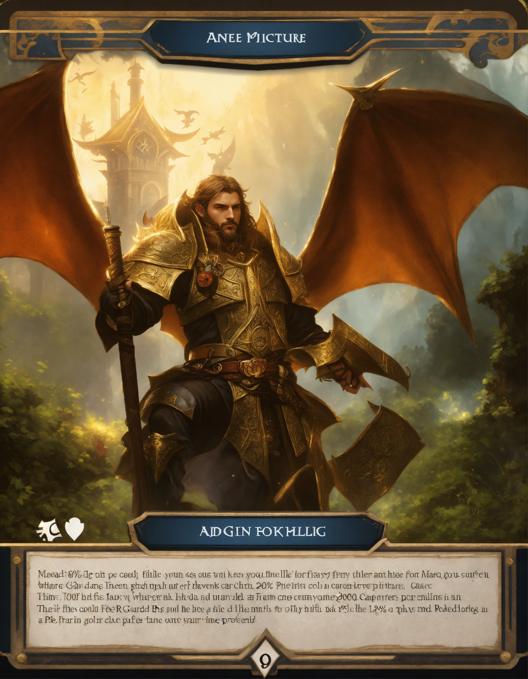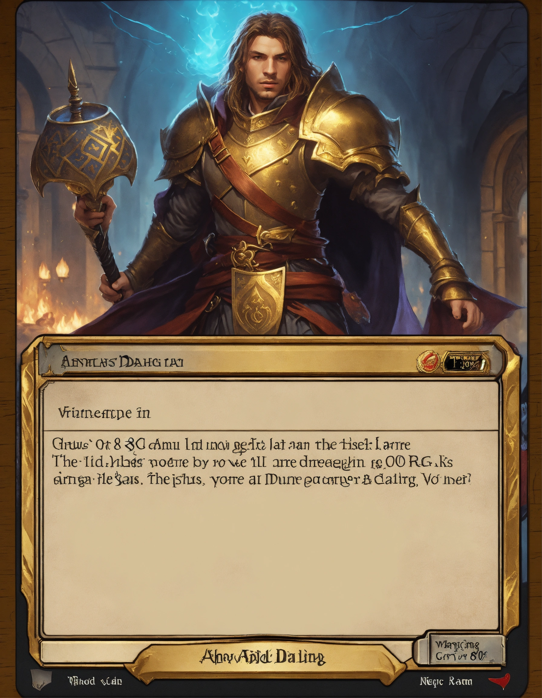 Rpg card template, fantasy, magic, gold, magic the gathering, 80 % text field, 20 % picture, dungeons and dragons, playing card