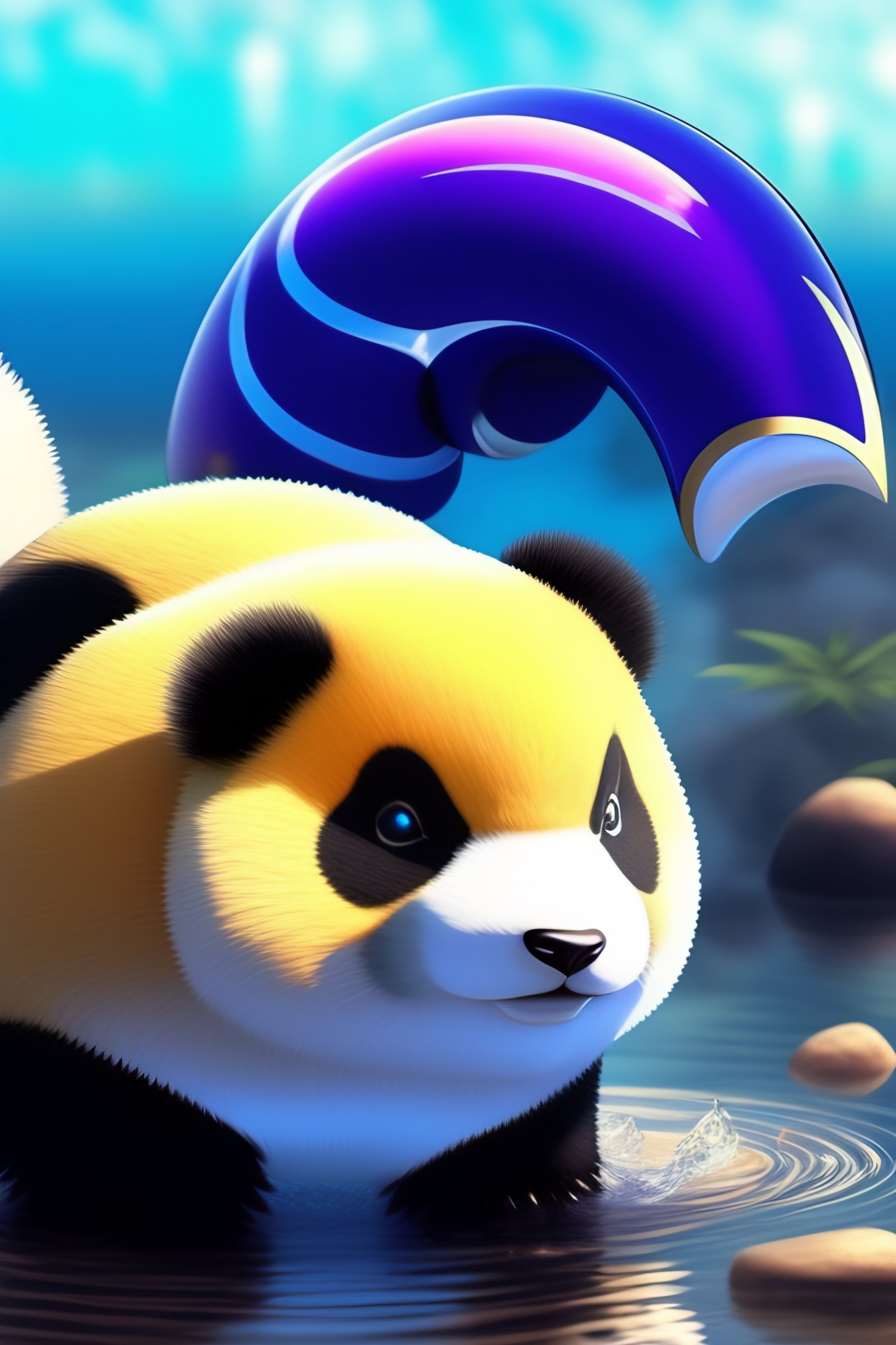 A water type pokemon that resembles a panda wielding blue bamboo as a sword award winning manga
