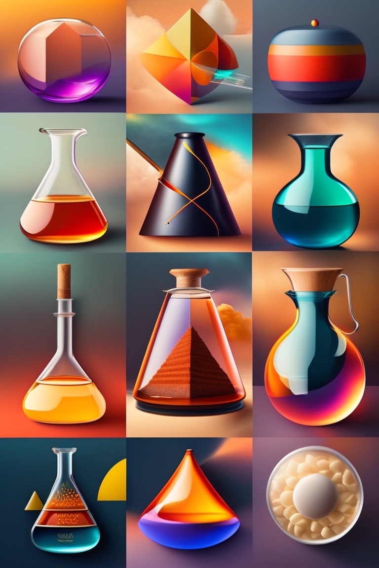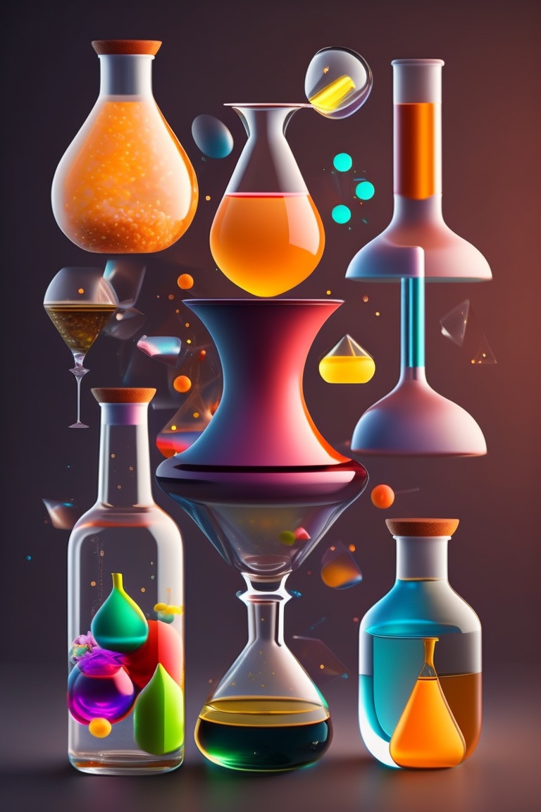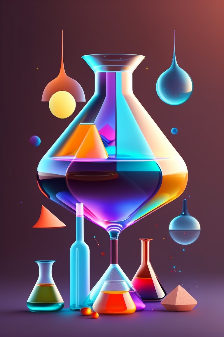 I want an image with figures based on science and chemistry as objects used for experiments, as an image background with objects spread across the image