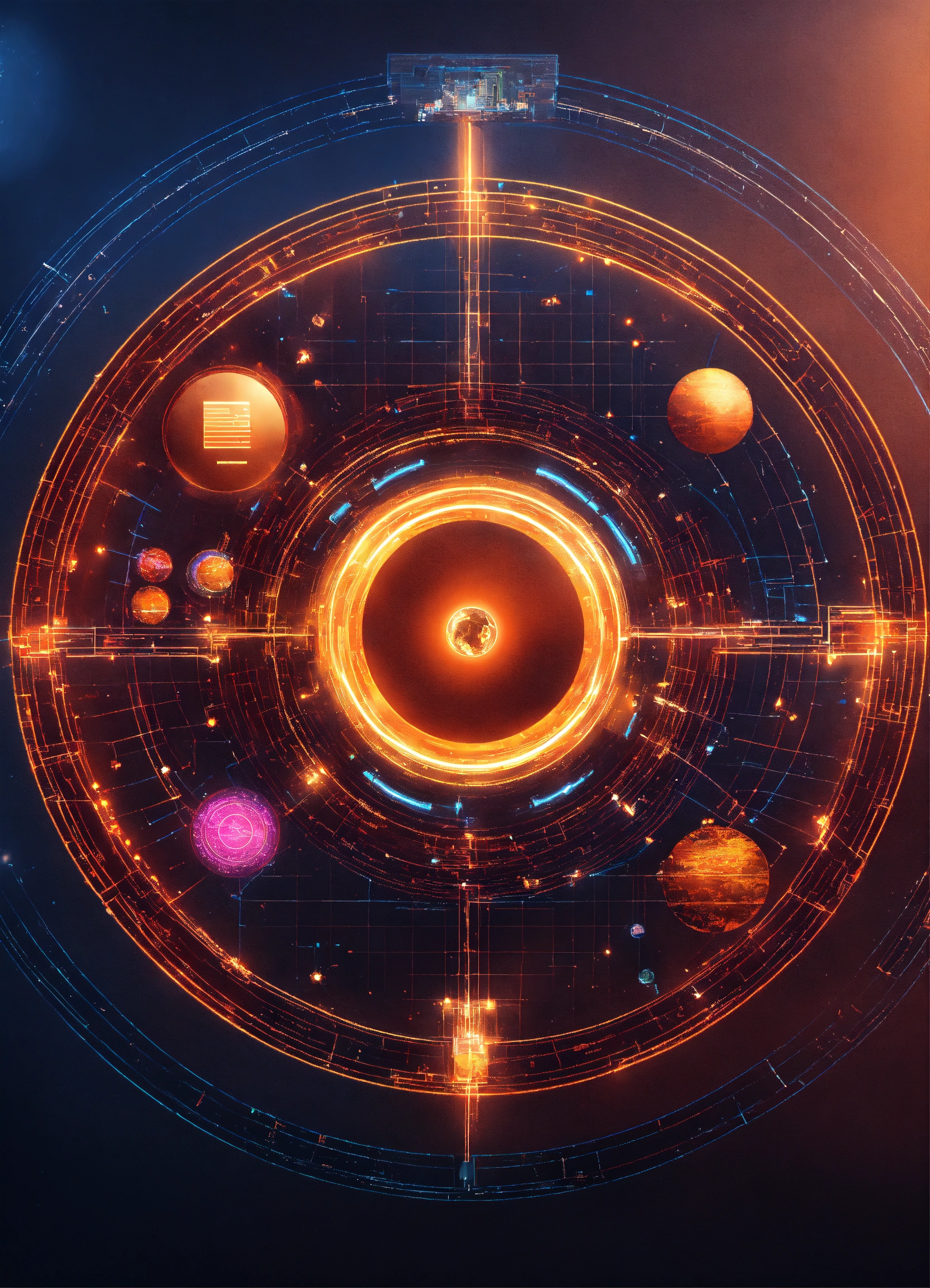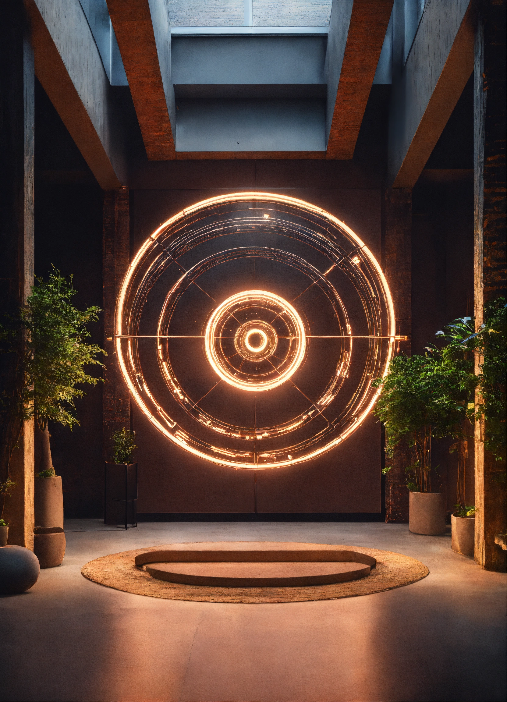 A circle, representing a thriving, modern, ai augmented business in the an inner circle representing influence, and an outer circle representing a modern thriving technology business digital agency thew world.