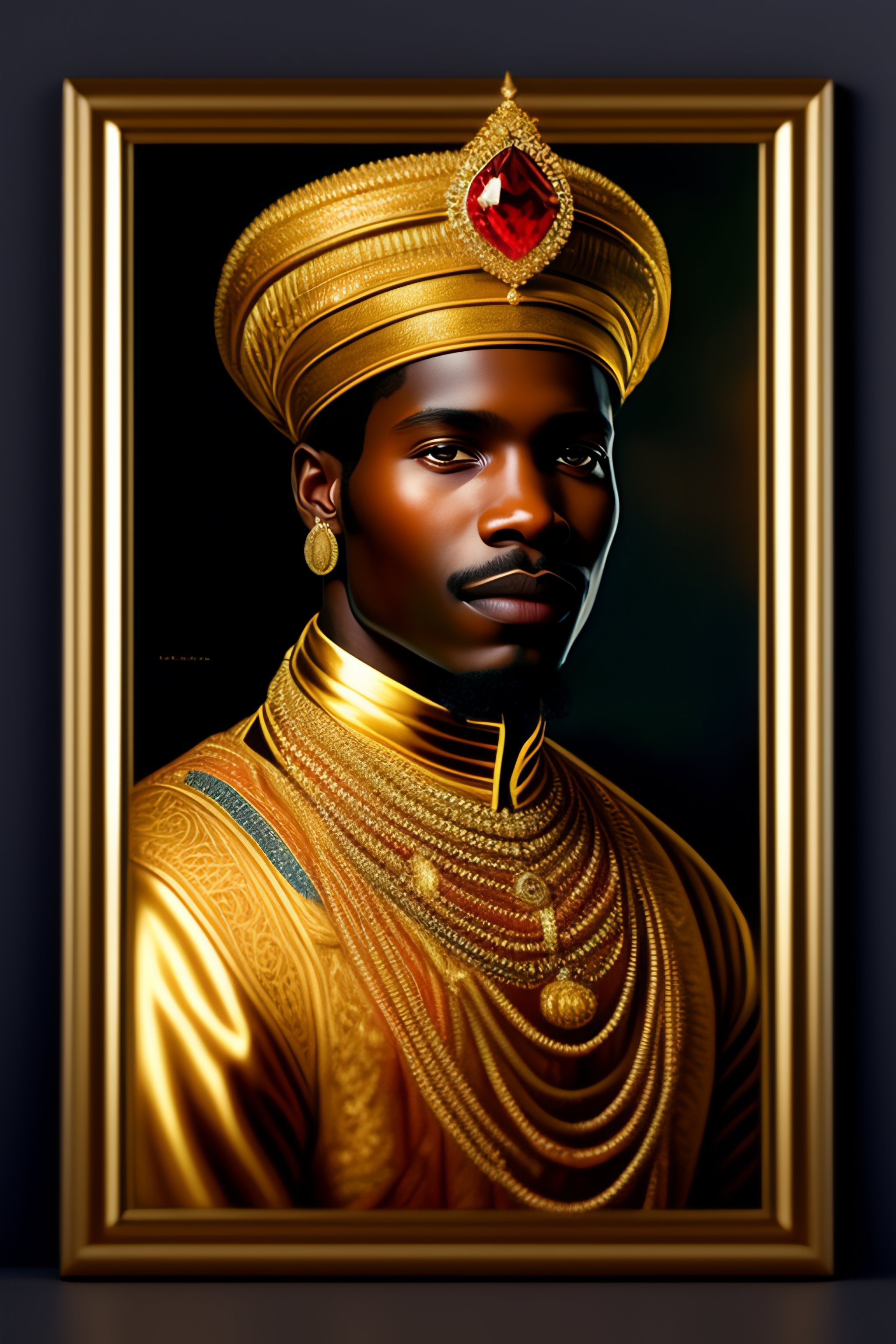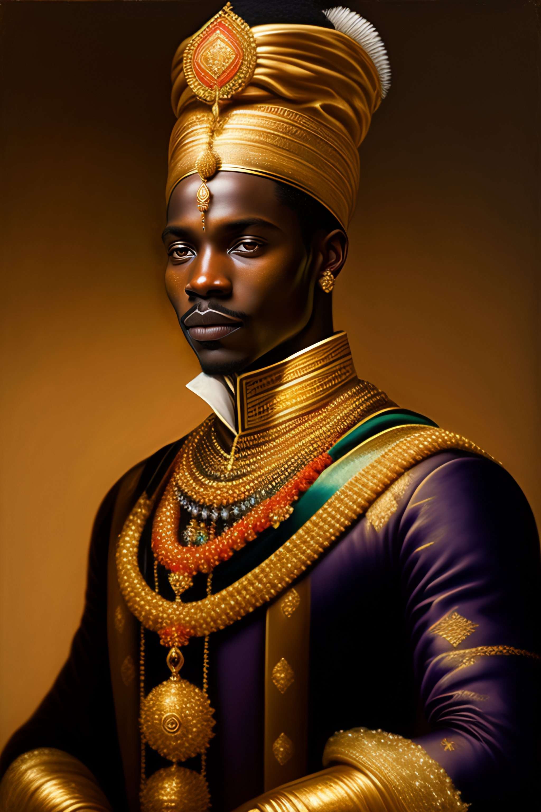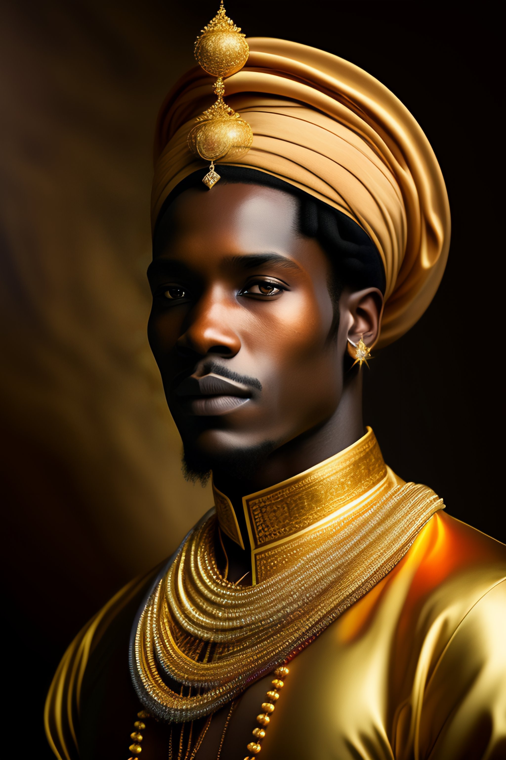Portrait of african prince dressed in gold ornaments