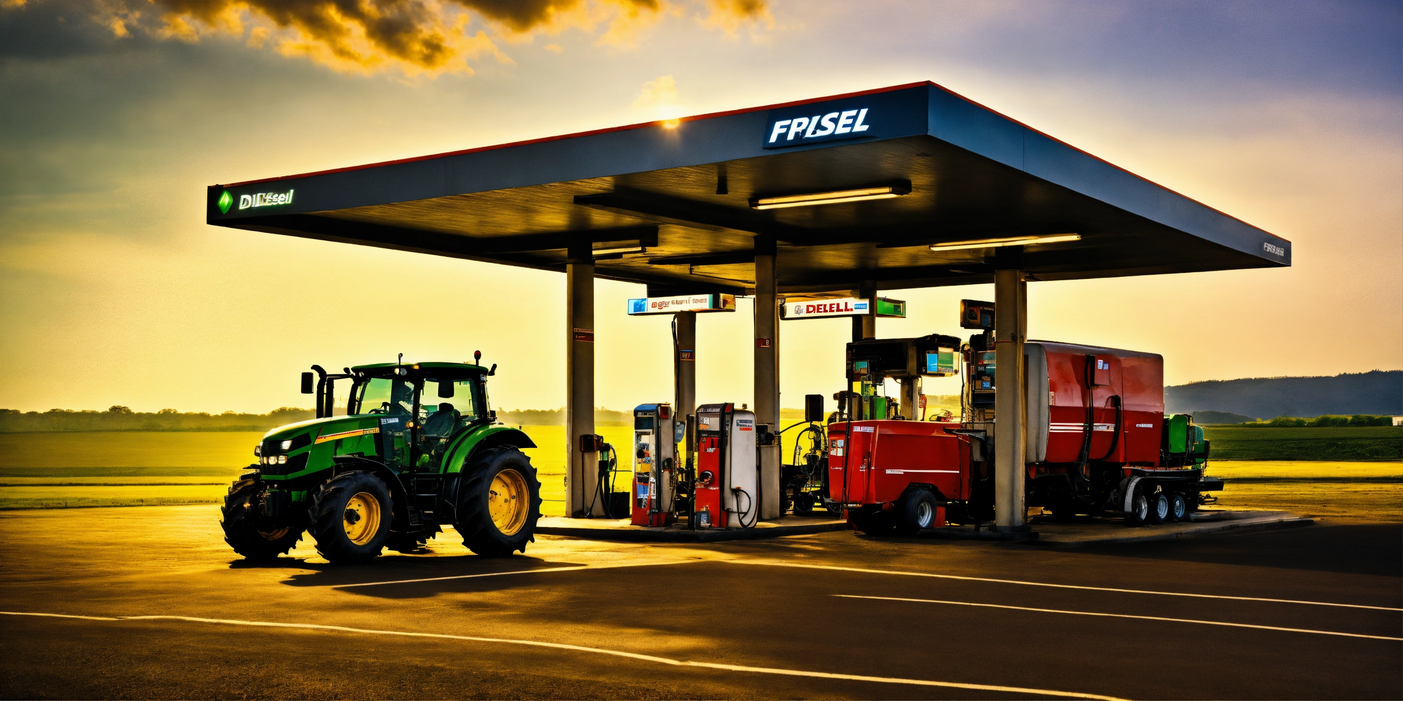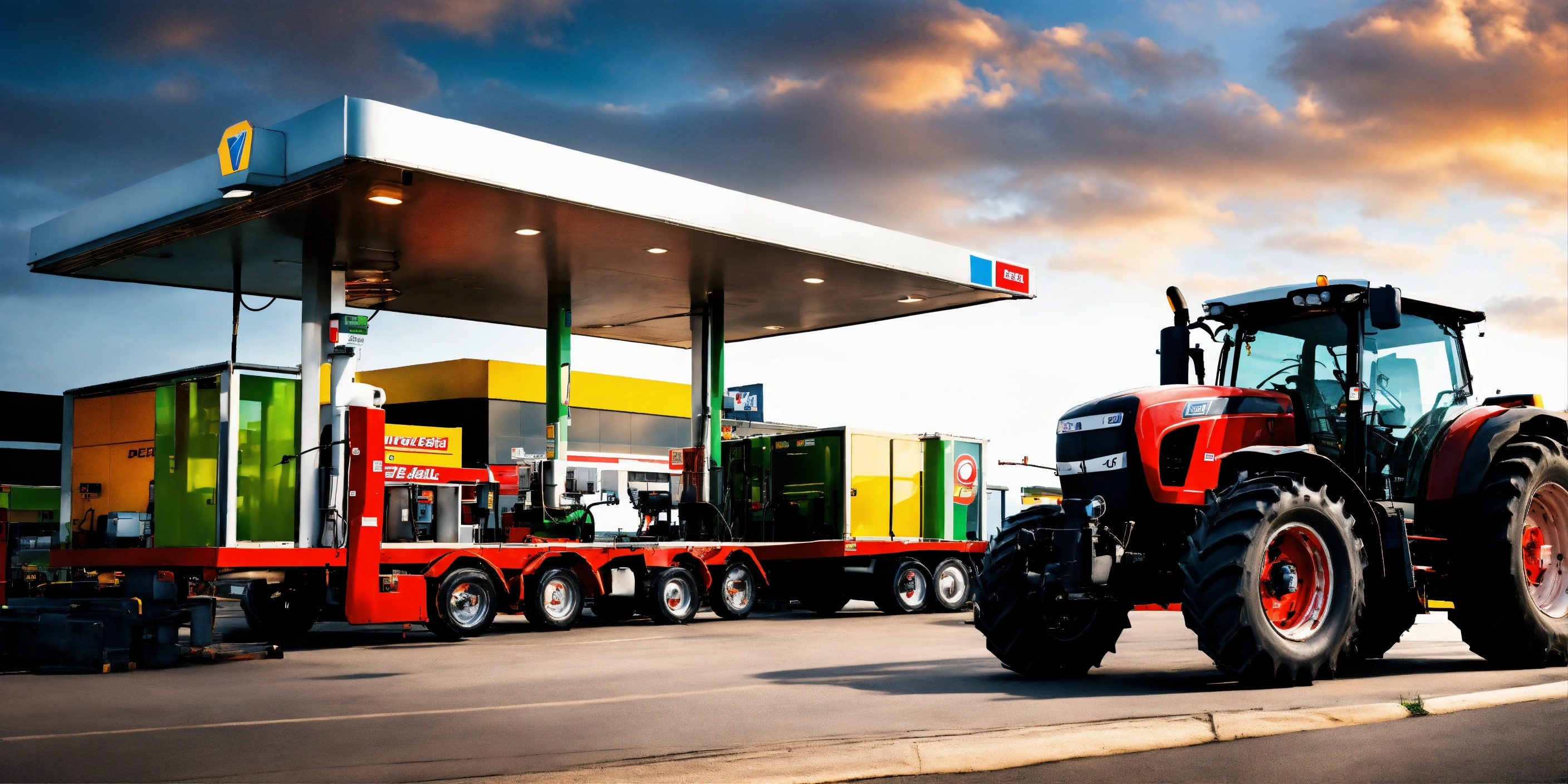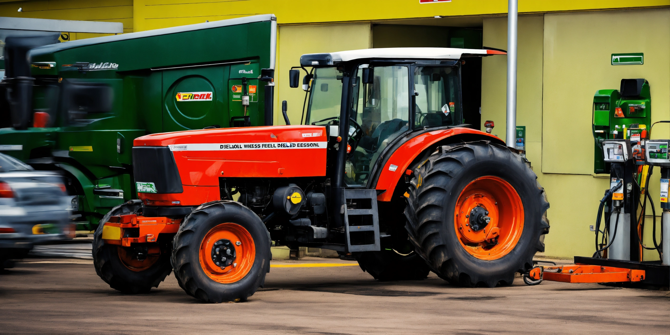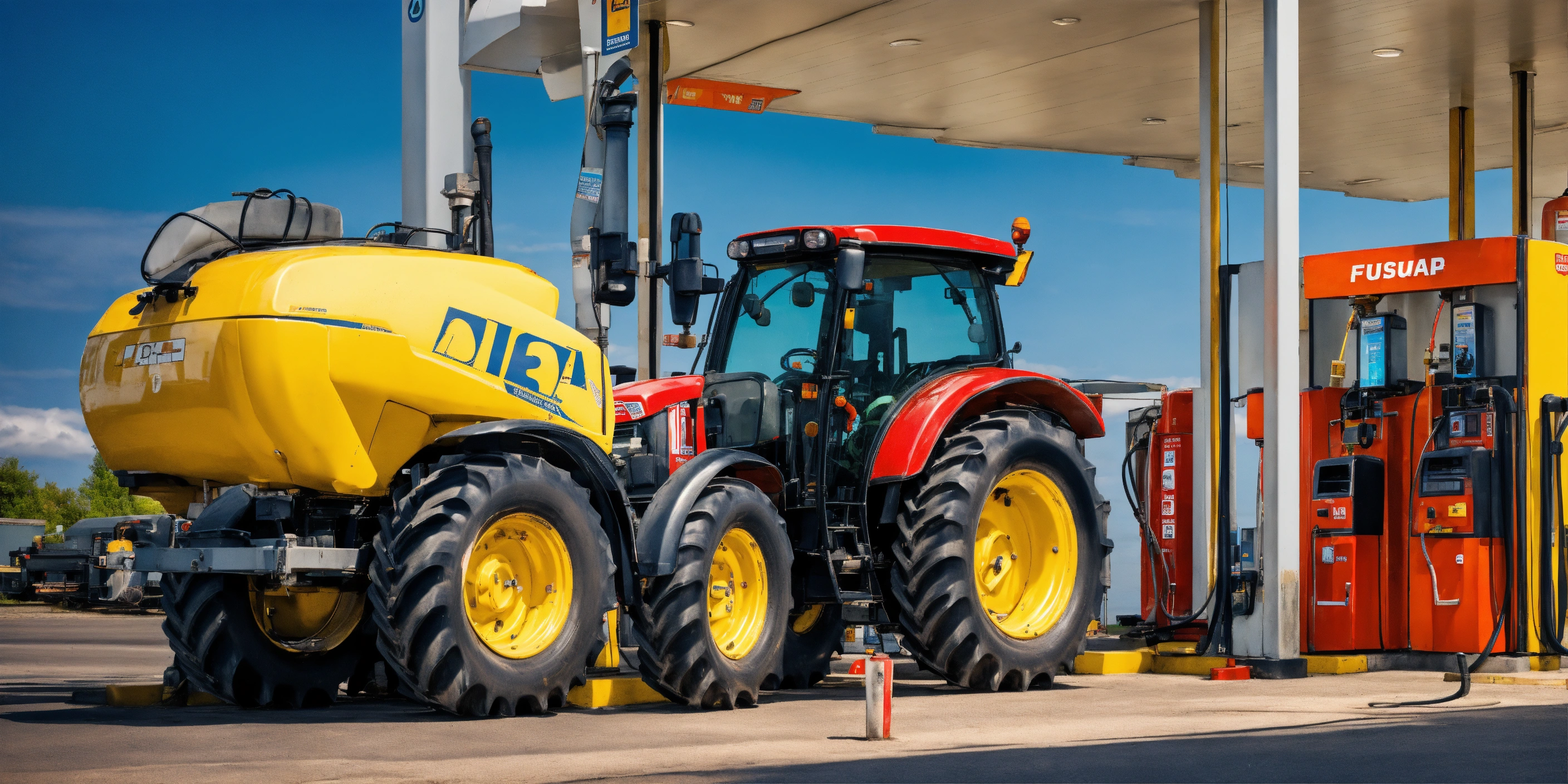 Tractor arrives to modern fuel station do get some diesel