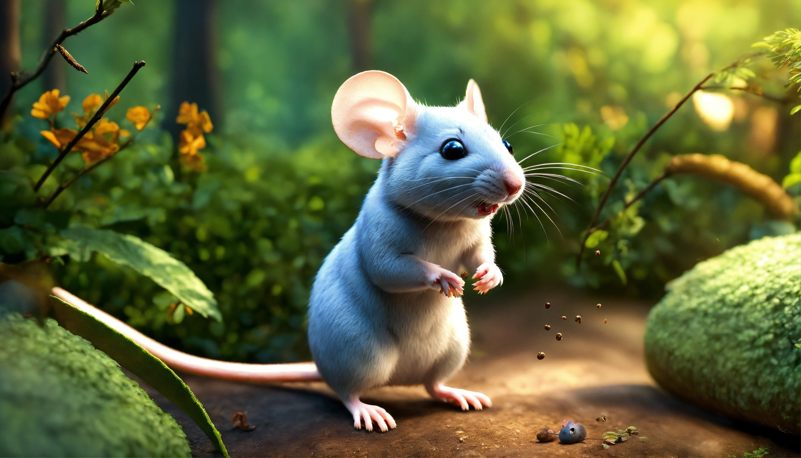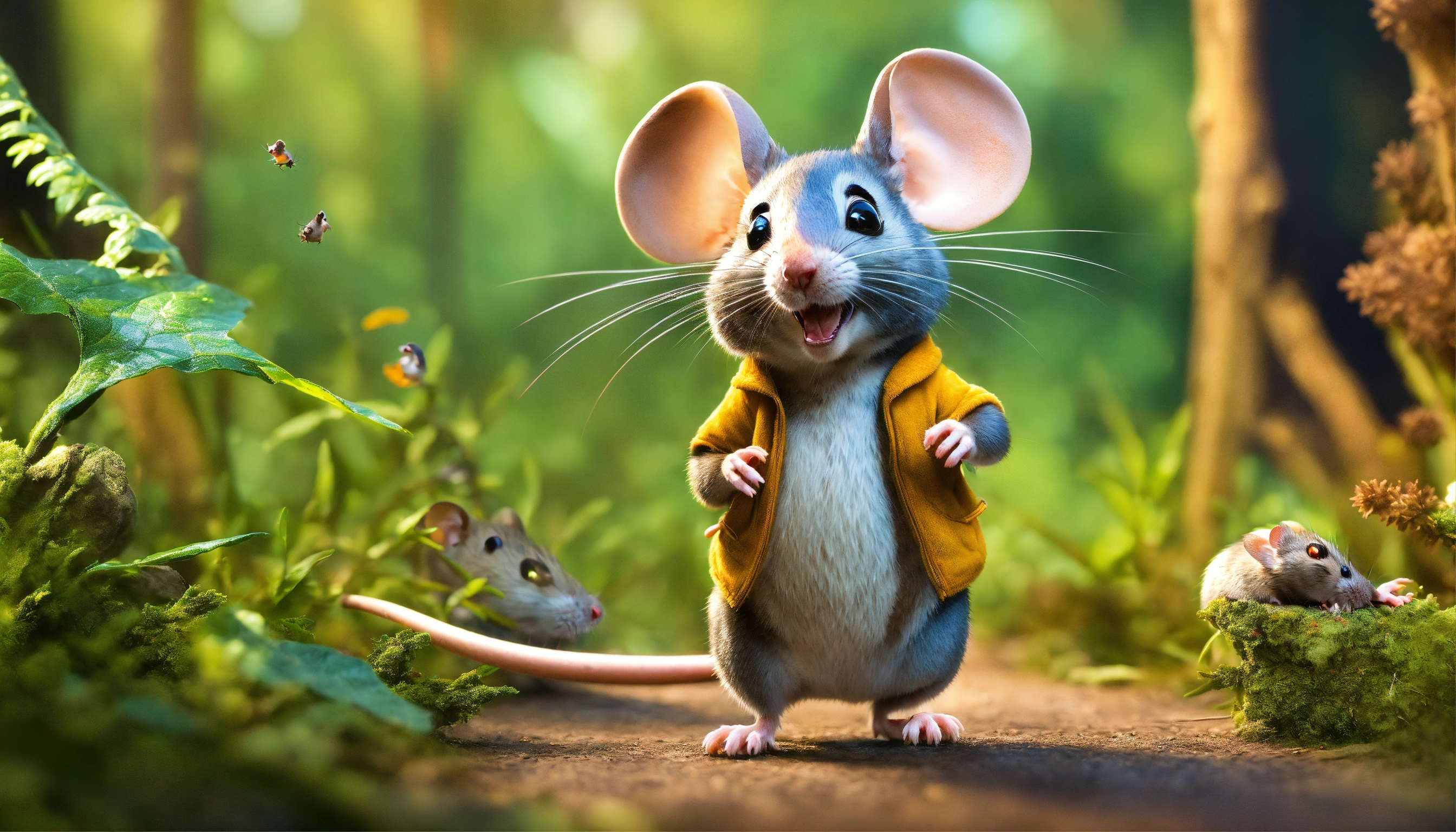"visualize the mouse playfully teasing other forest wild animals.", 3d pictures, storybook illustration, digital art, professional, high quality, detailed.