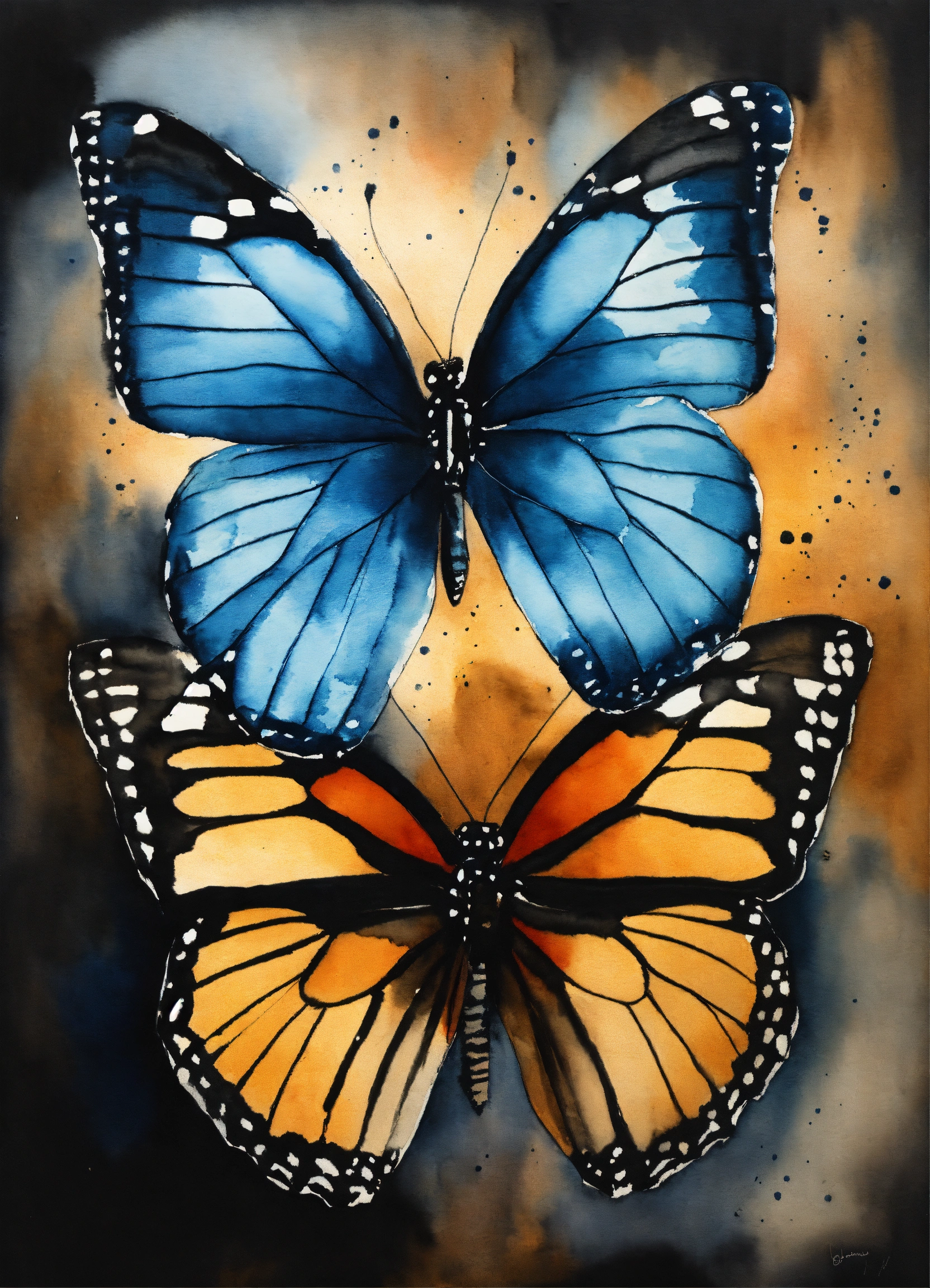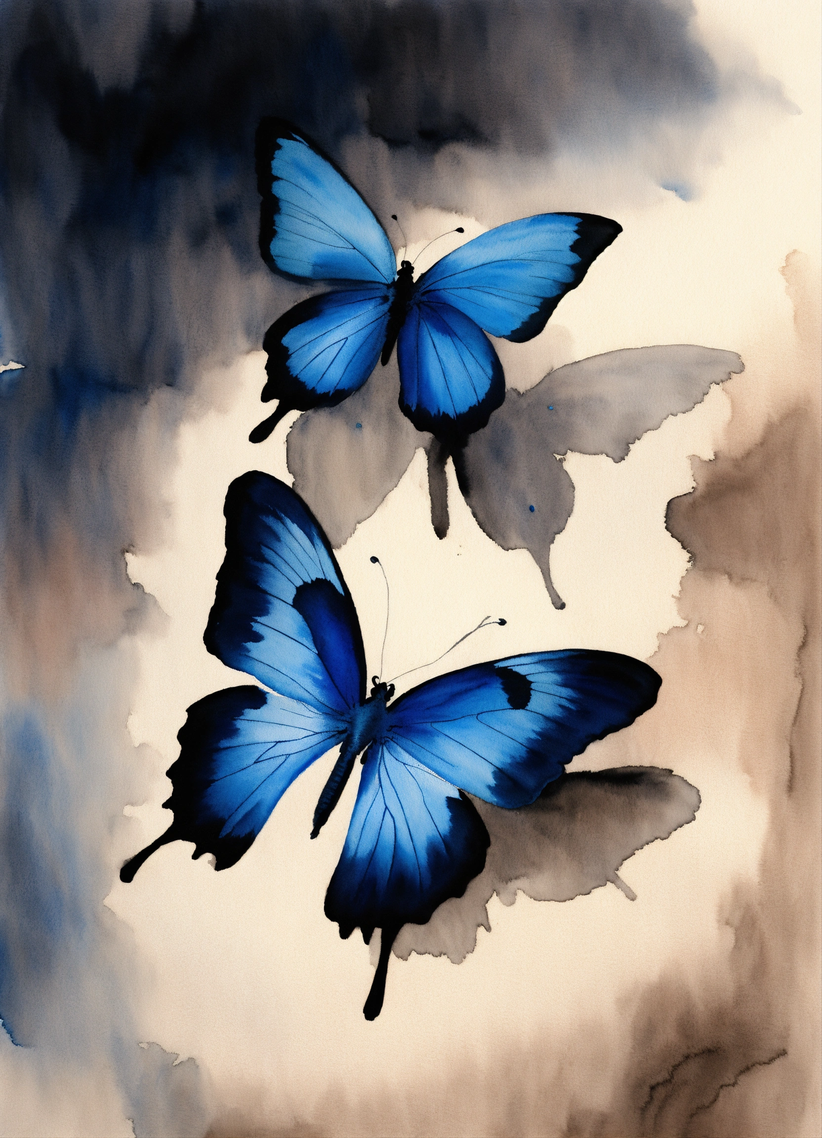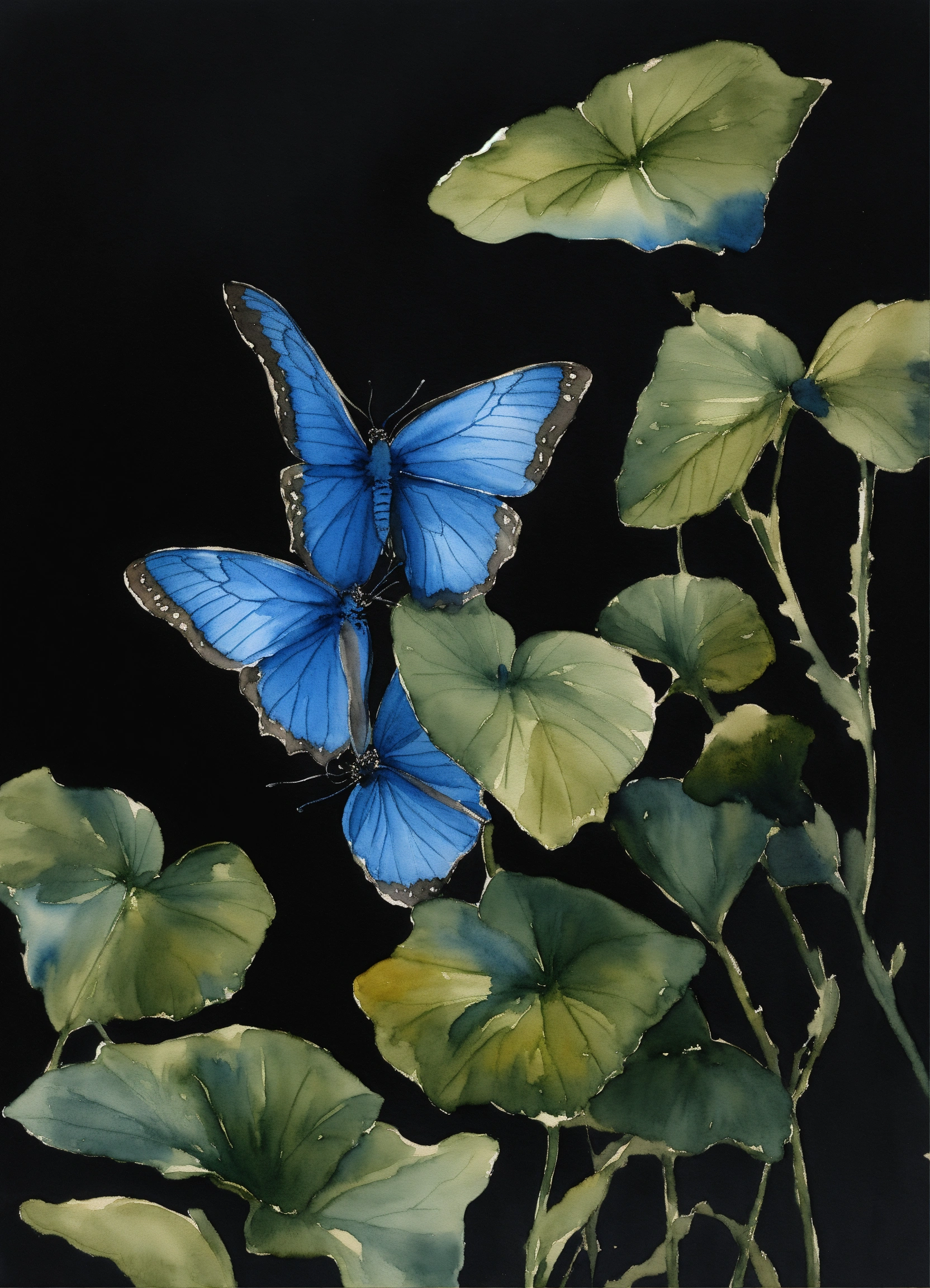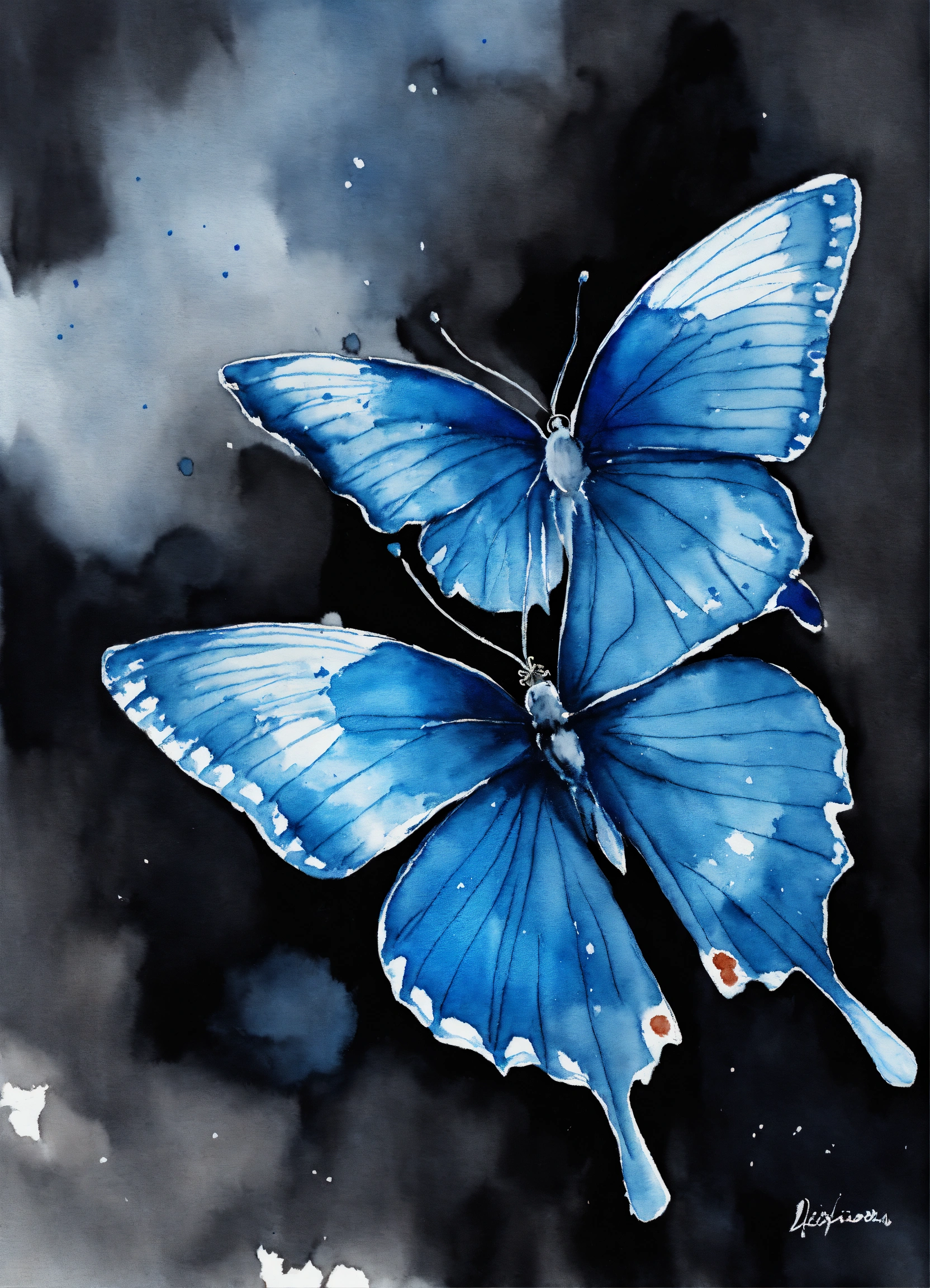 Deux papillon bleue watercolour sur fond noir uni