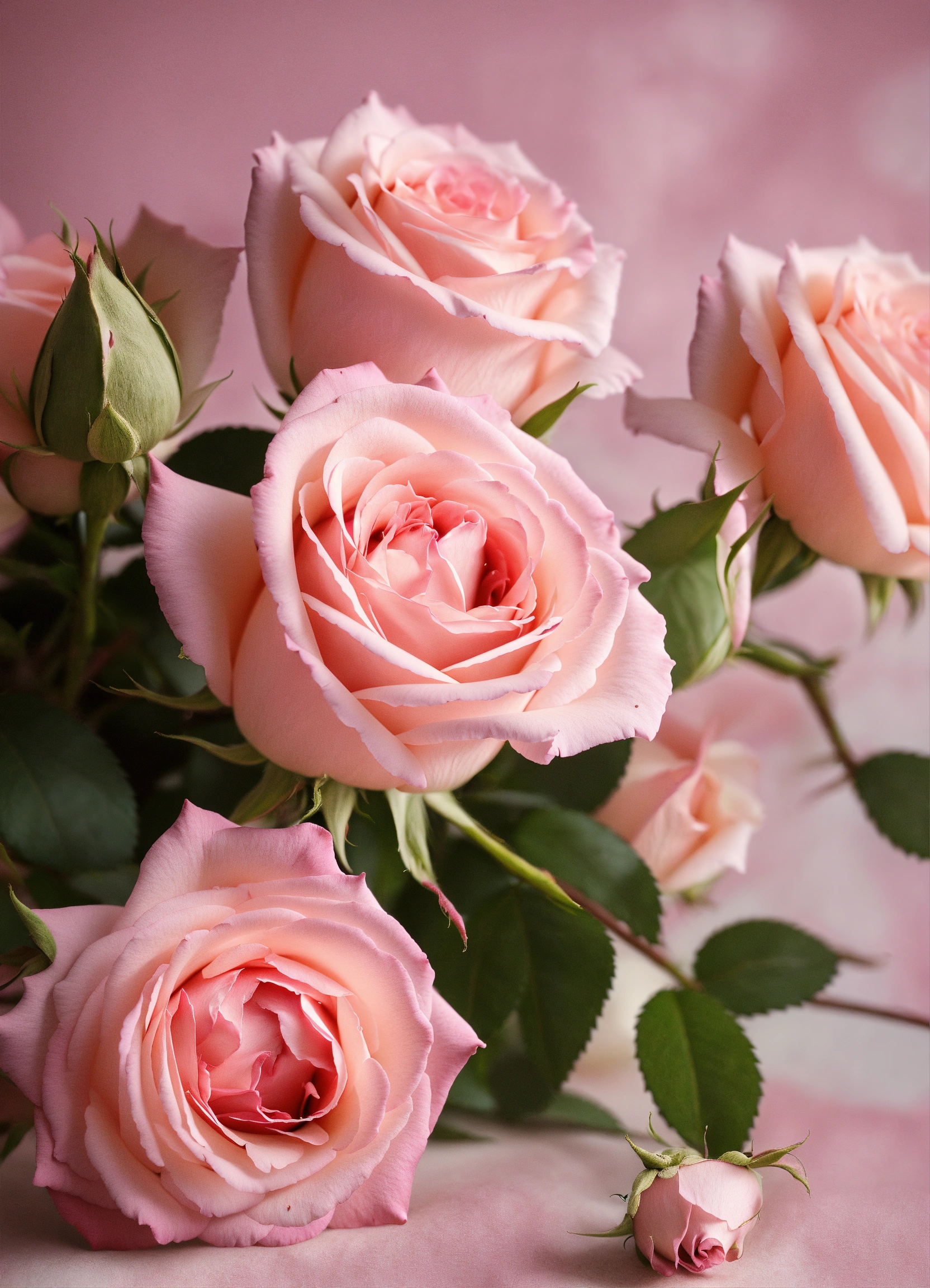 Envelop yourself in the tenderness of this wallpaper. soft pink roses evoke feelings of love, care, and the gentle touch of compassion.