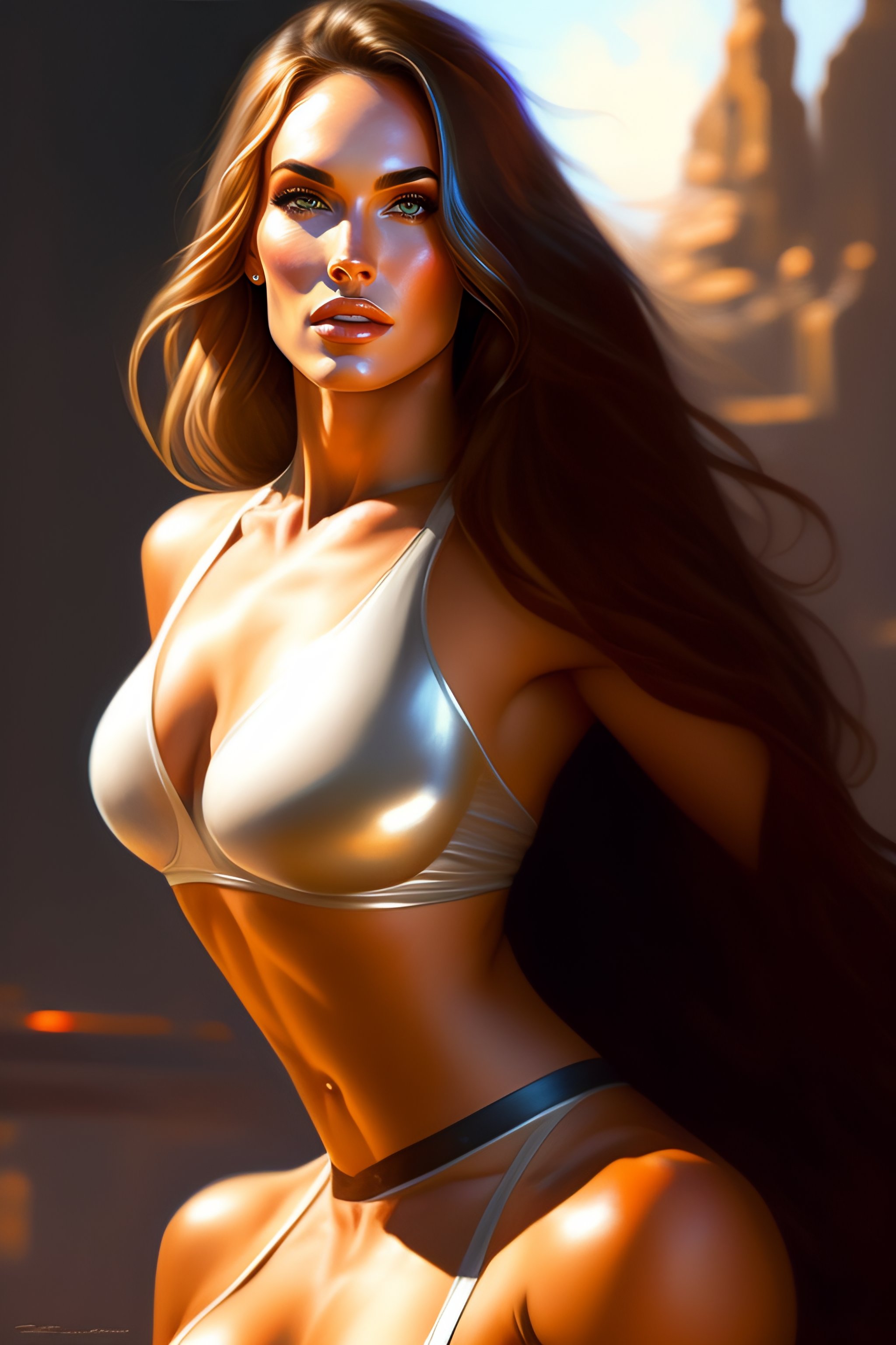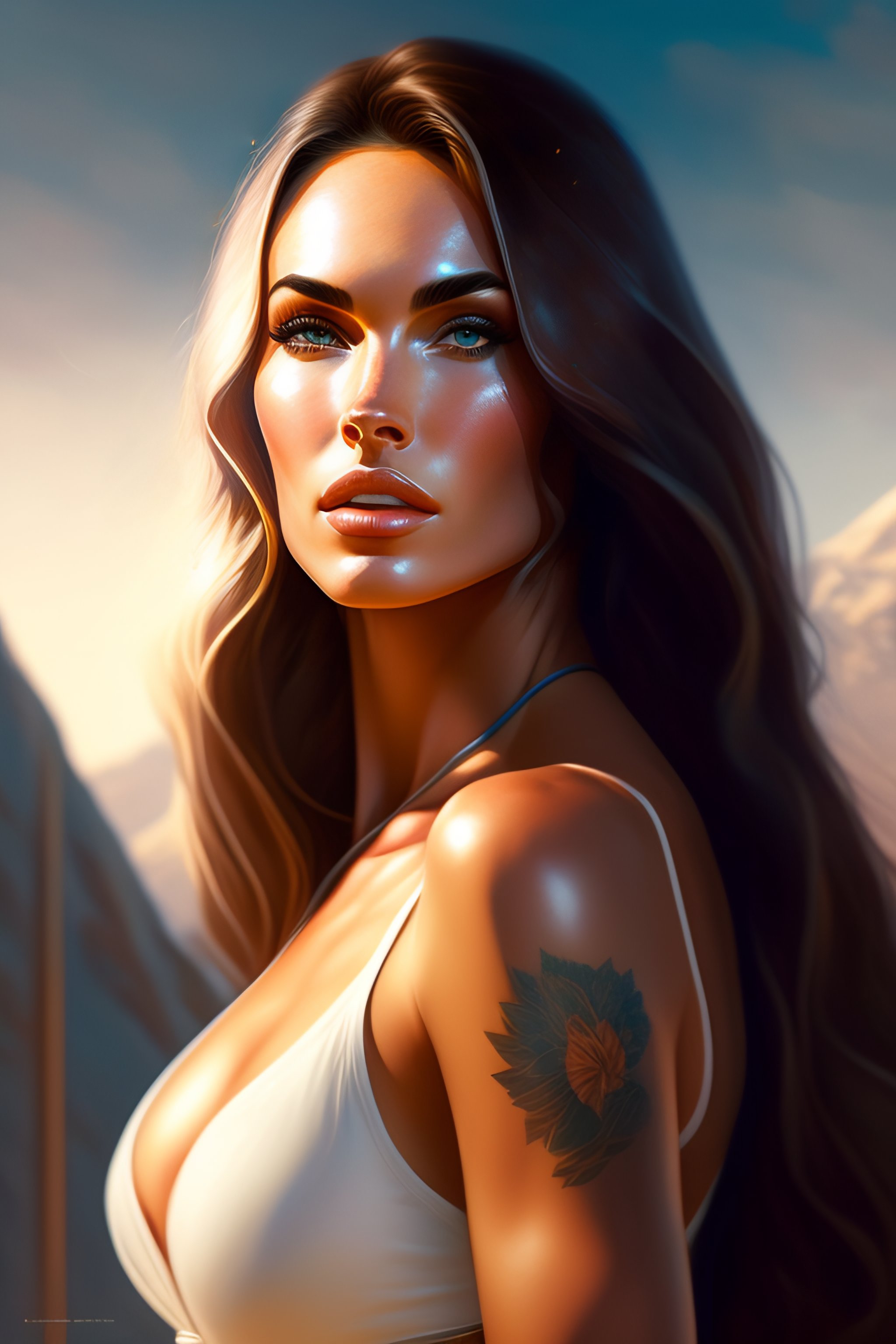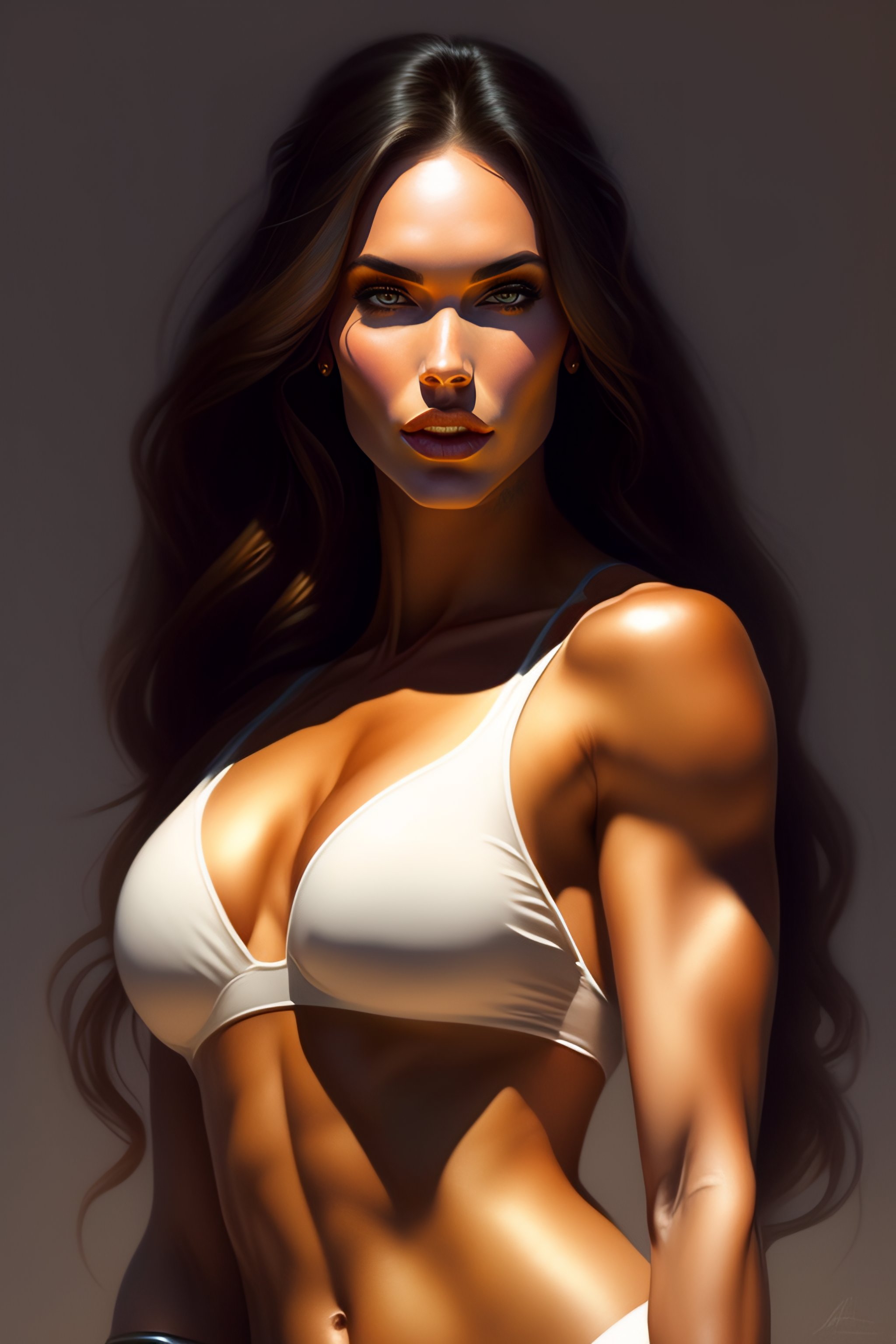 Portrait of megan fox kissing a blonde woman, muscular upper body intricate, headshot, highly detailed, digital painting, artstation, concept art, sharp focus, cinematic lighting, illustration, art by artgerm and greg rutkowski, alphonse mucha, cgsociety