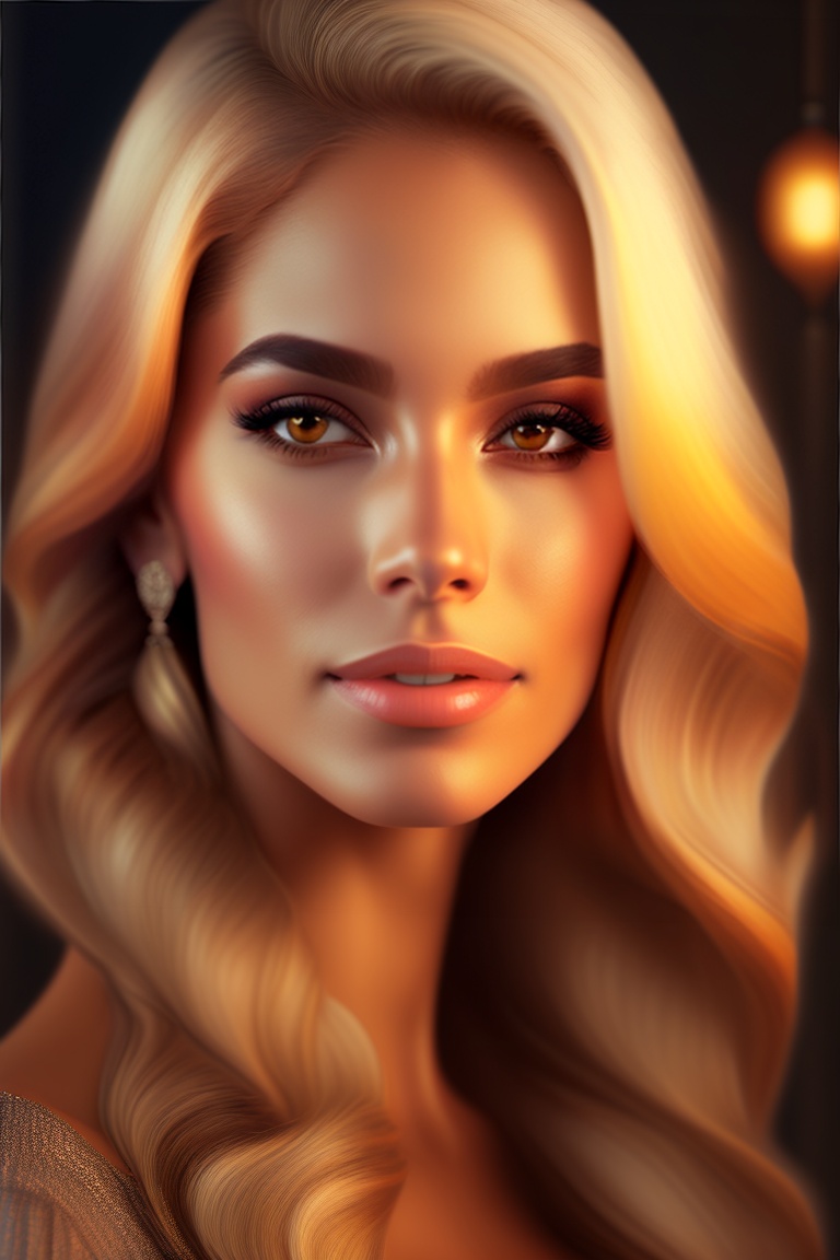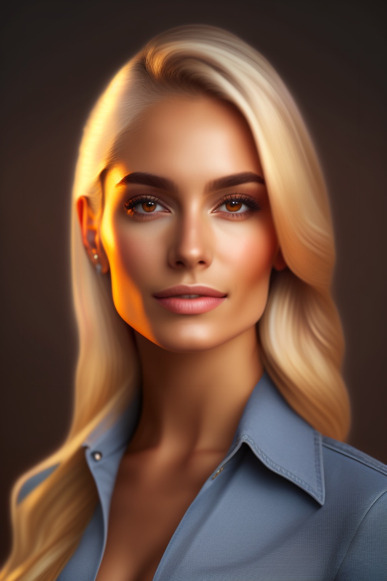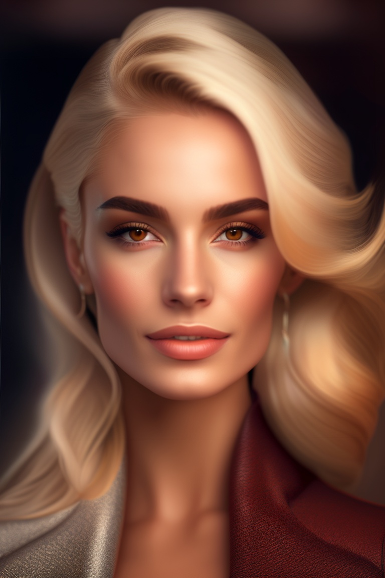 A portrait of a beautiful blonde, latina, colombian woman, soft portrait photo 8k, medium length, ultra realistic uhd faces, dark brown eyes, kodak ultra max 800, 85mm, casual pose, centered symmetrical composite, masterpiece, grainy, --auto centered composition