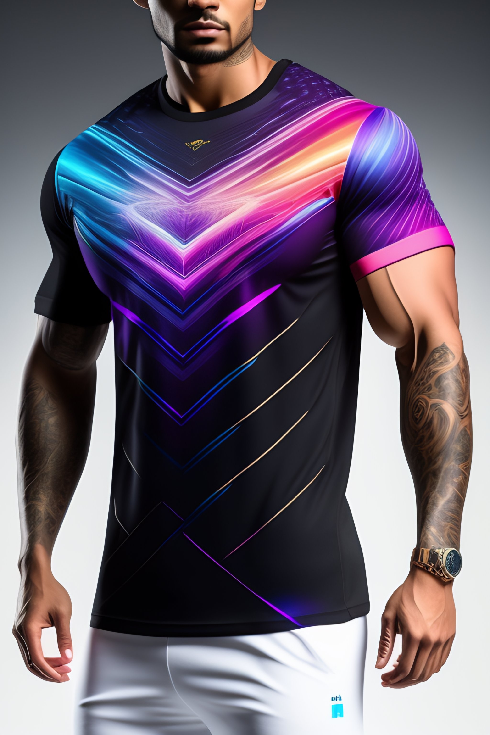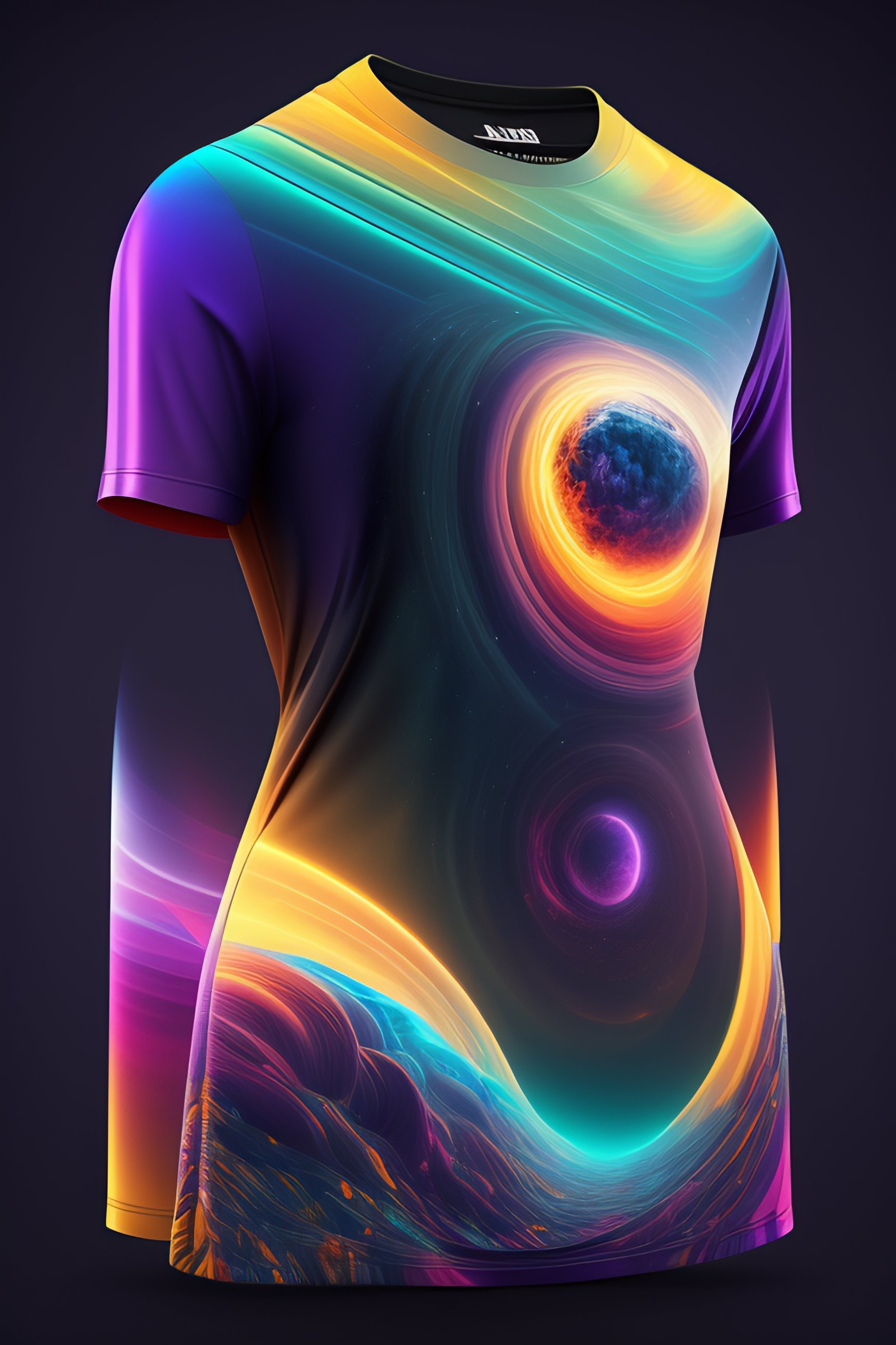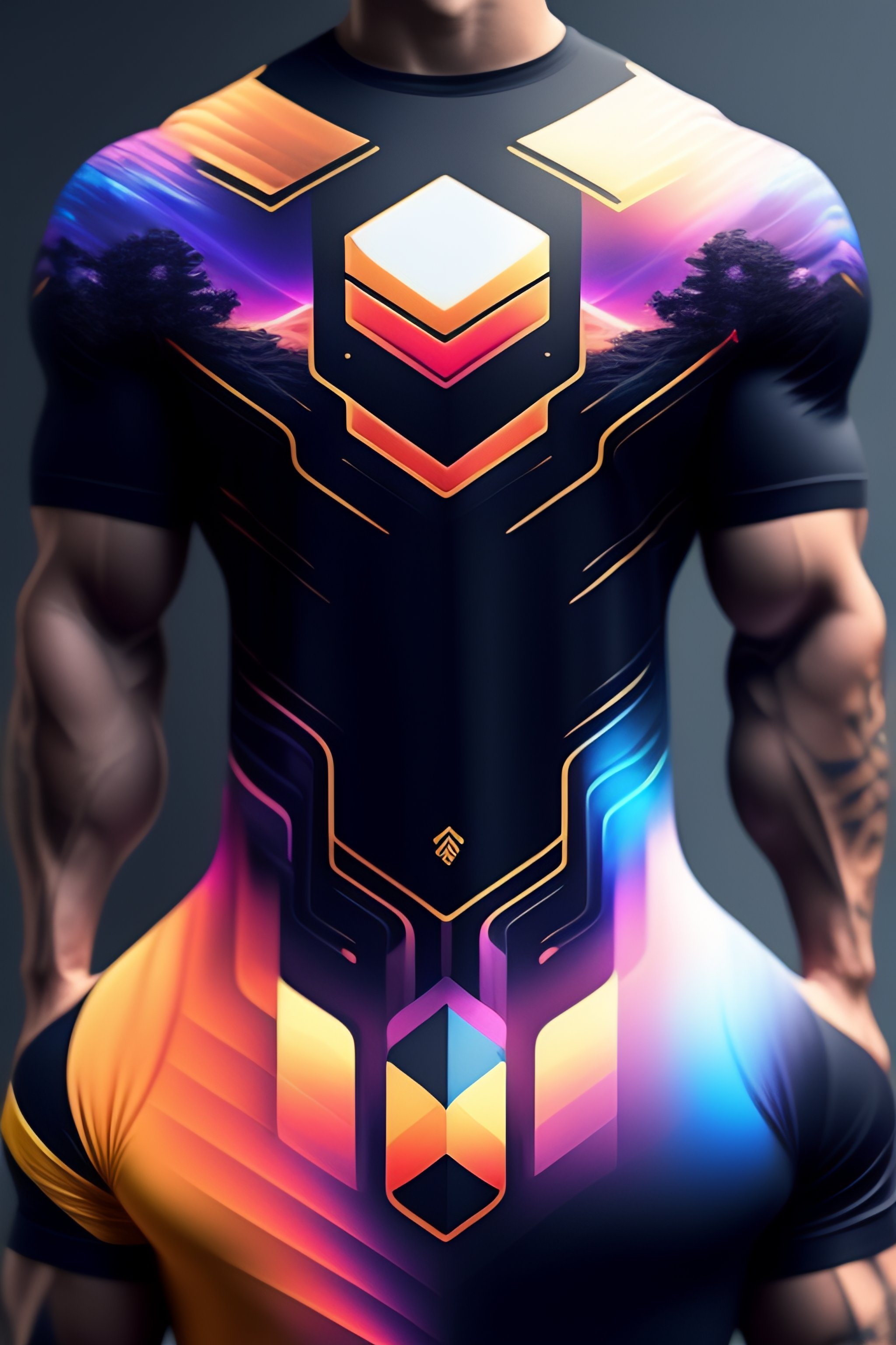 Creative incredible futuristic t-shirt design, post-processing, de-noise, ultra realistic, unreal engine, casual wear, blockchain patterns