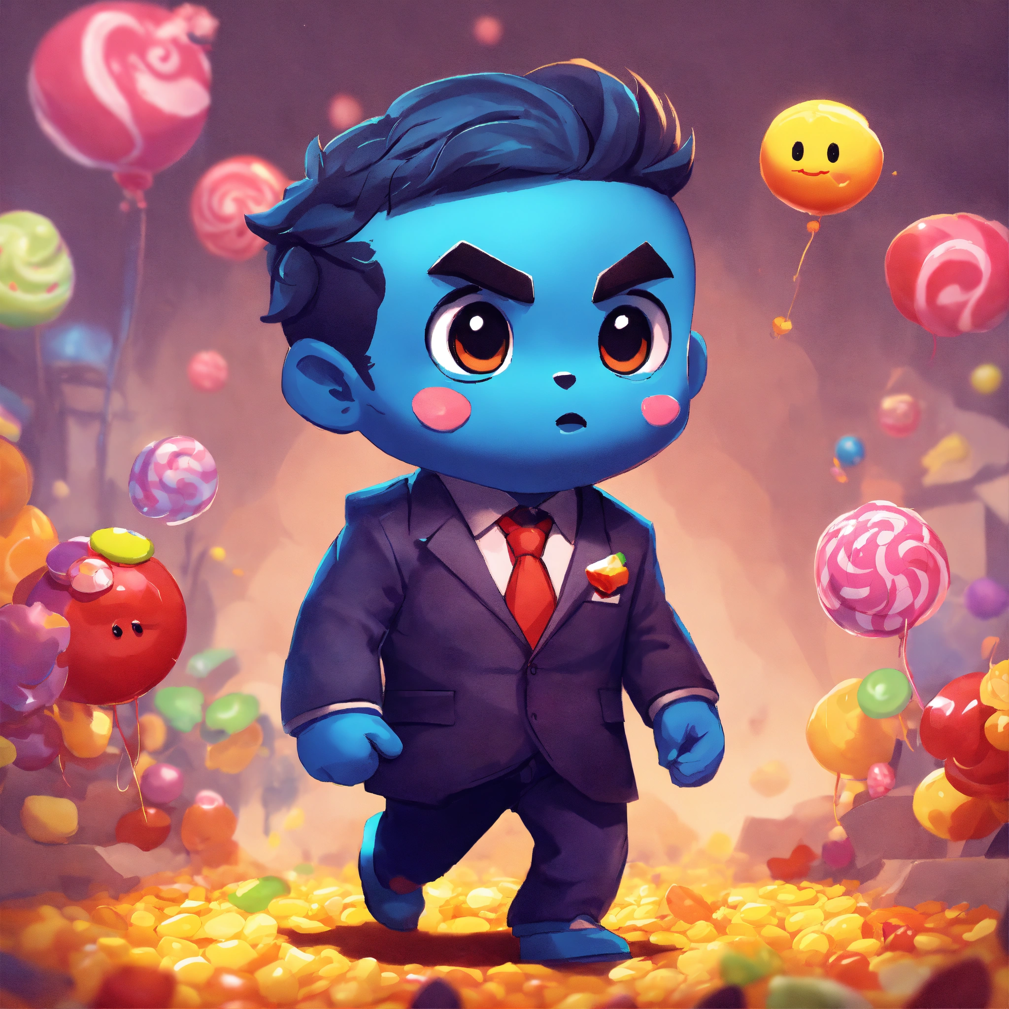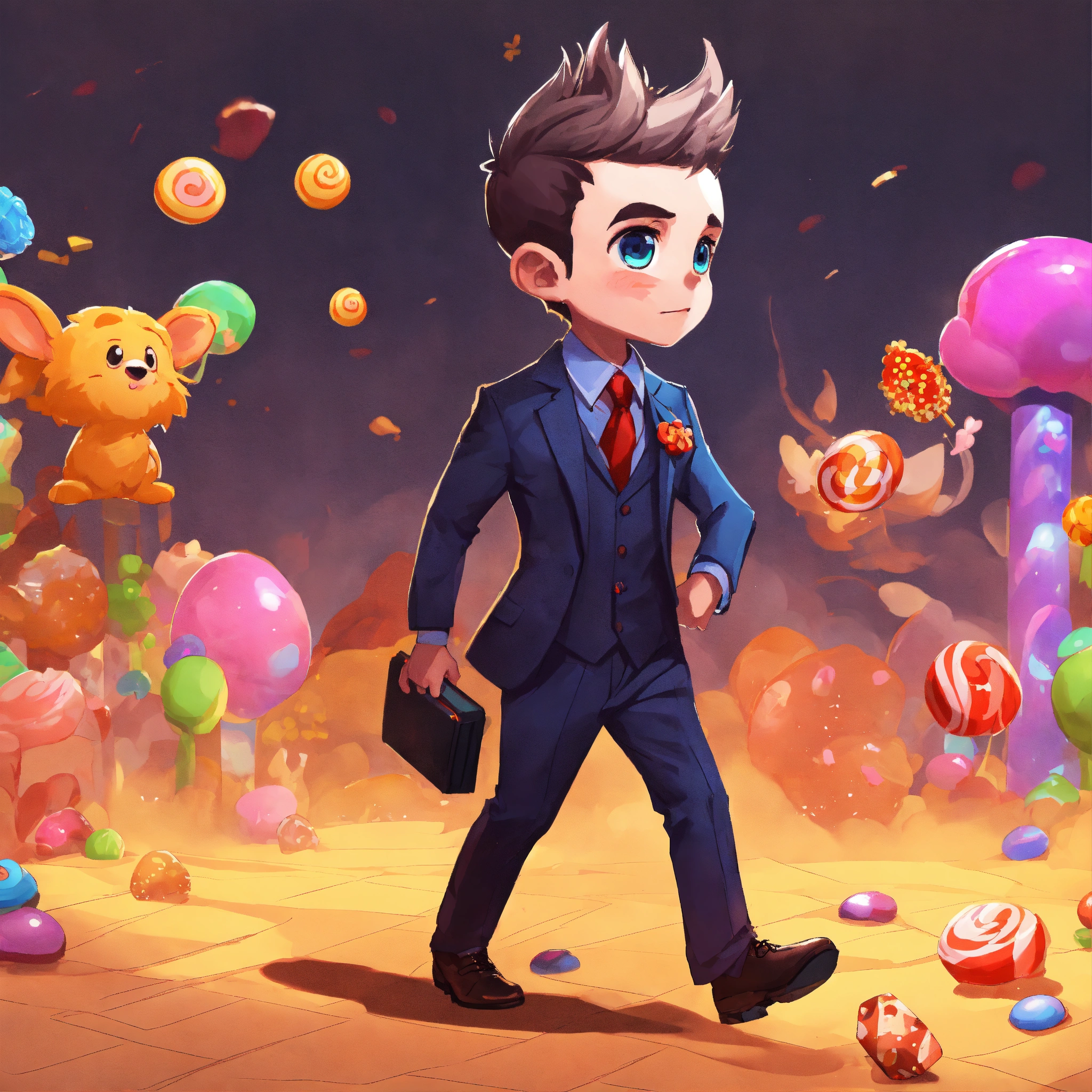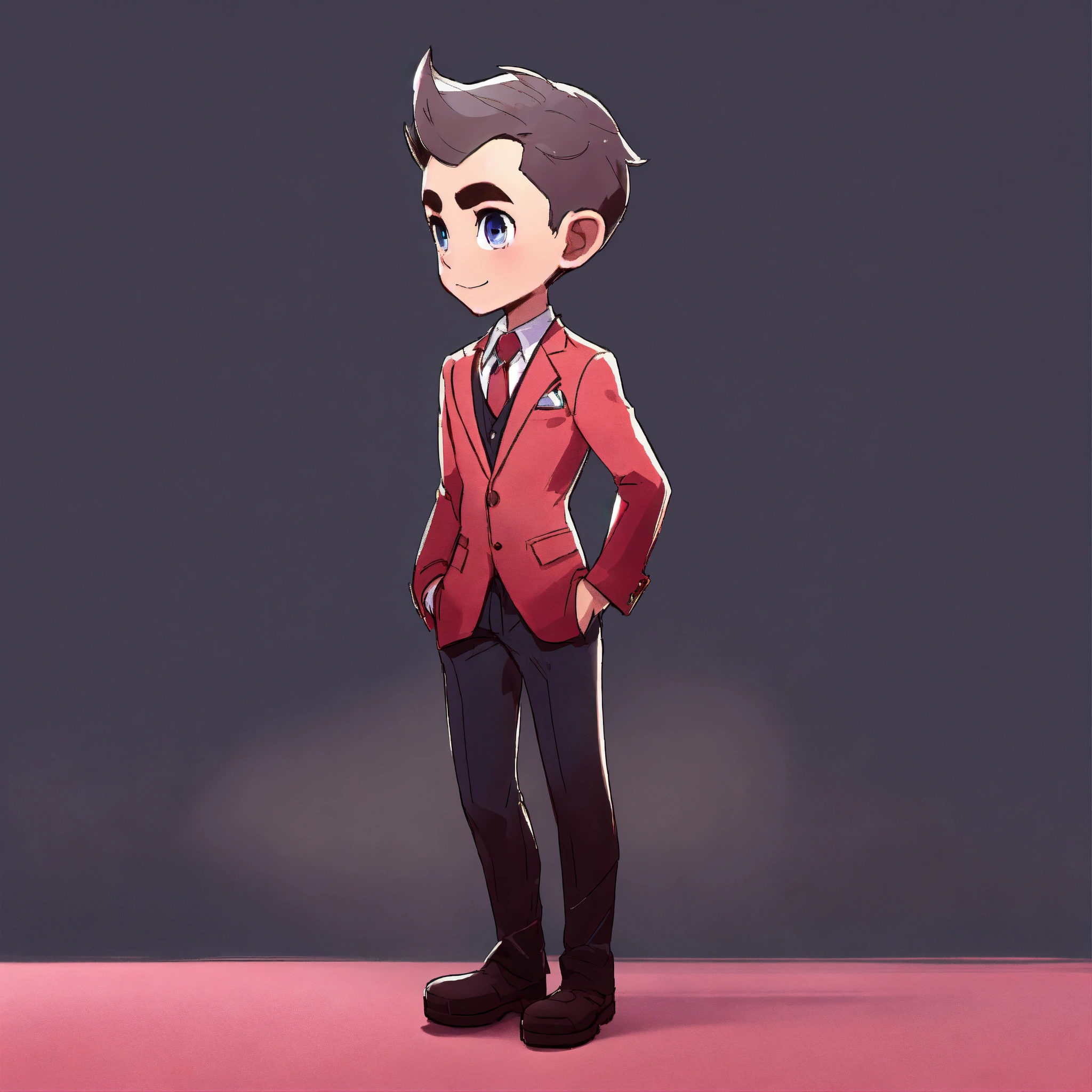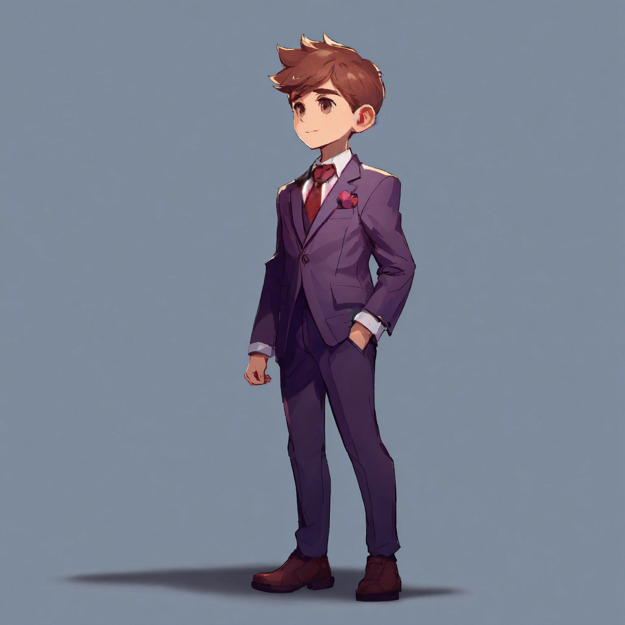 Game art, concept art, boy, suit, evil, walking, sideview, full body view, blank background, chibi proportions, artstyle from candy crush