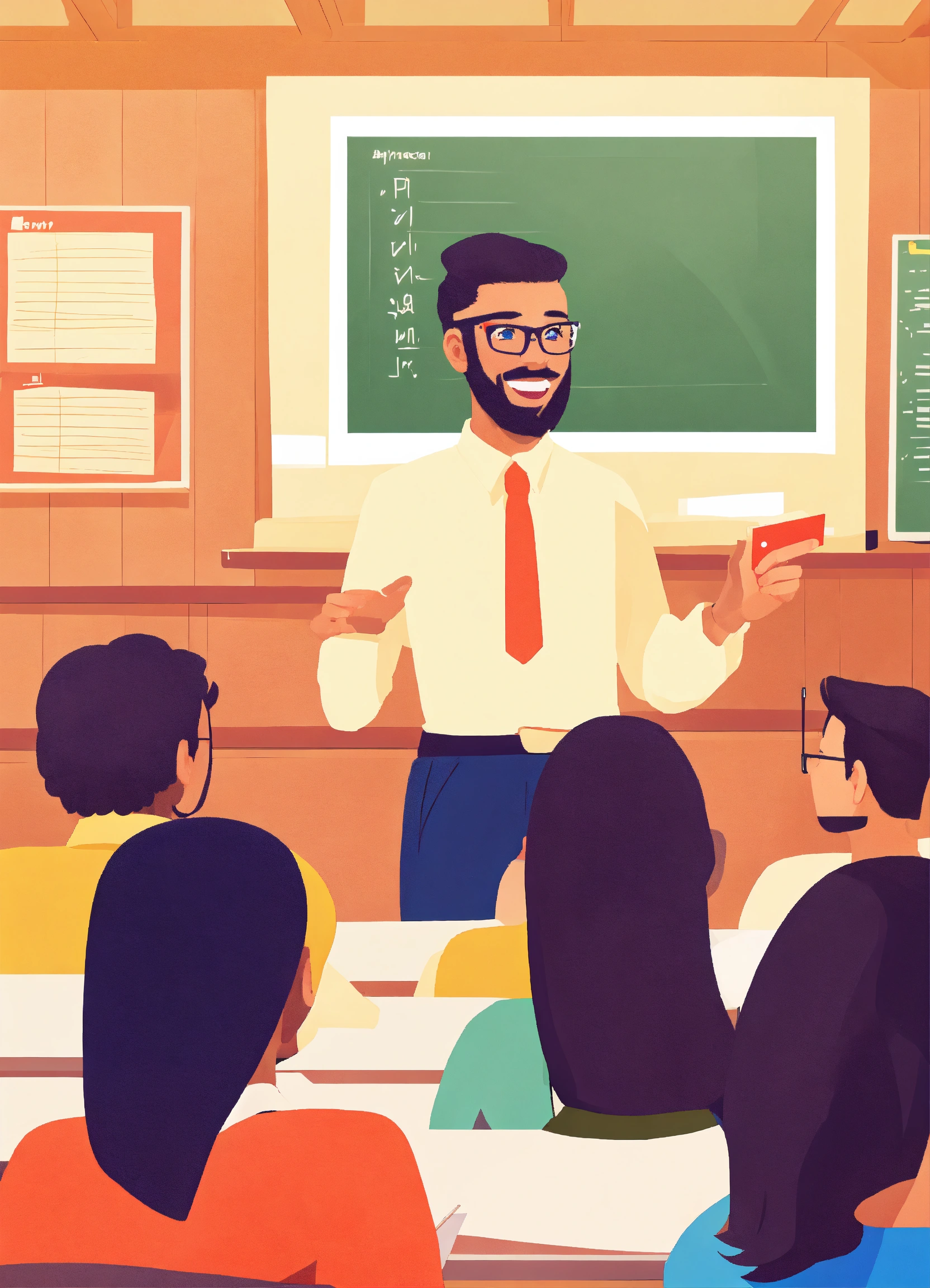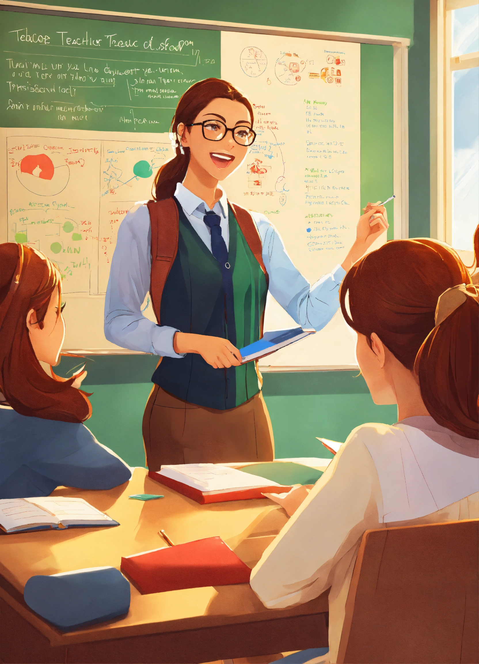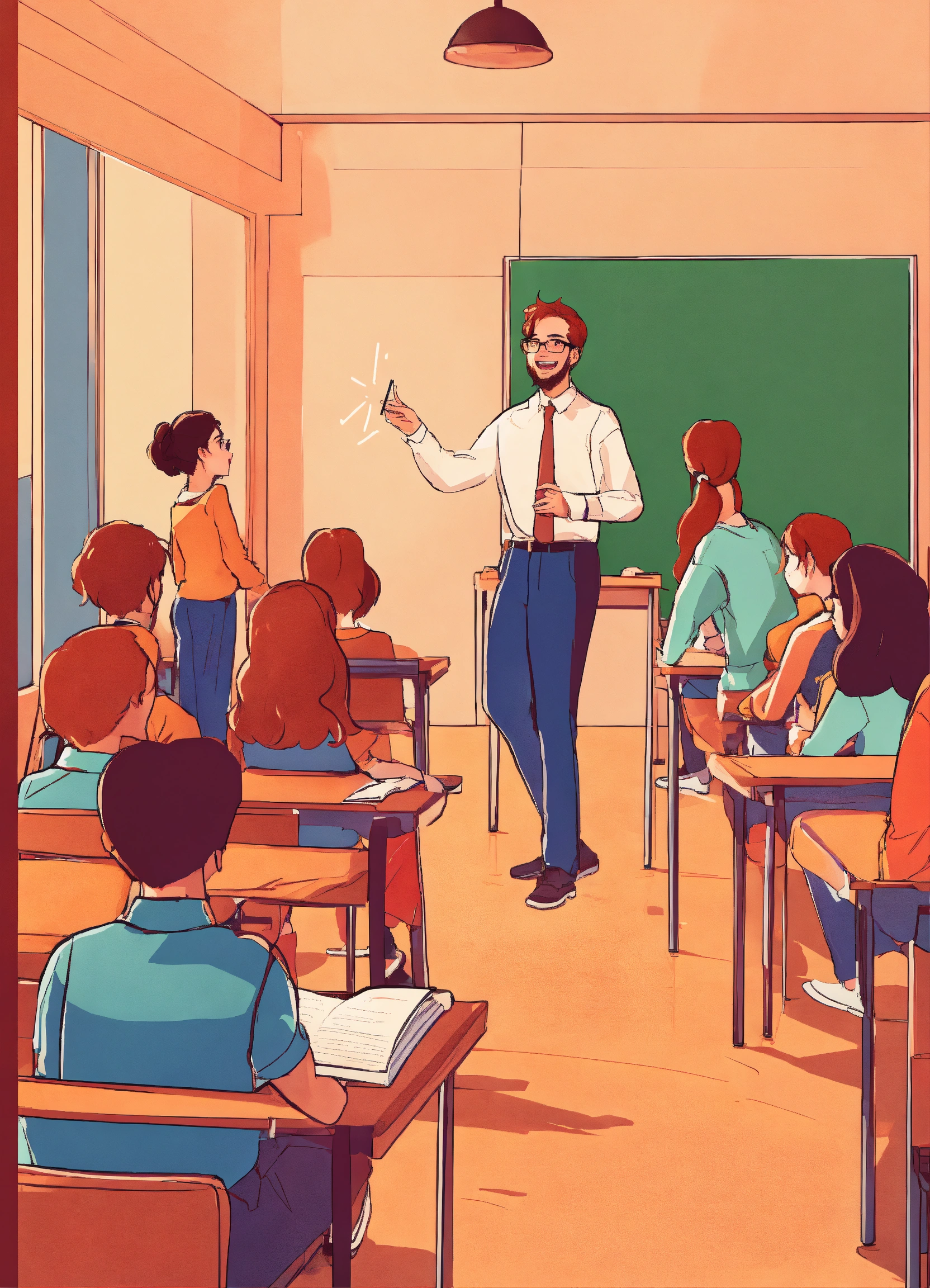 Fun dynamic teacher explaining in classroom with university students