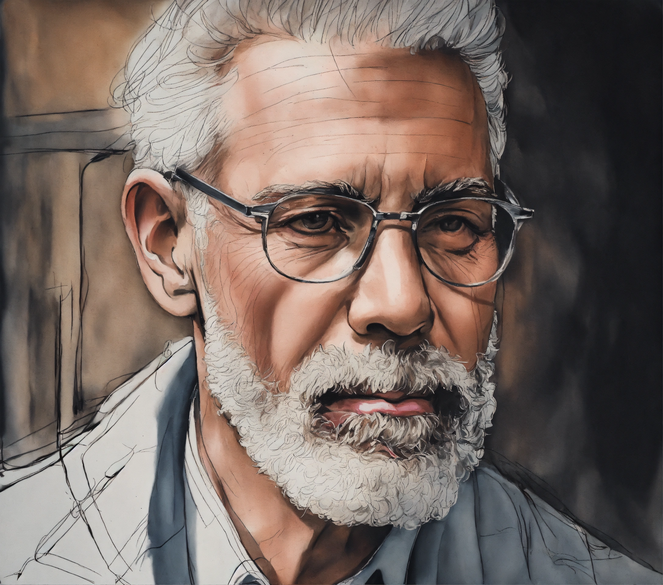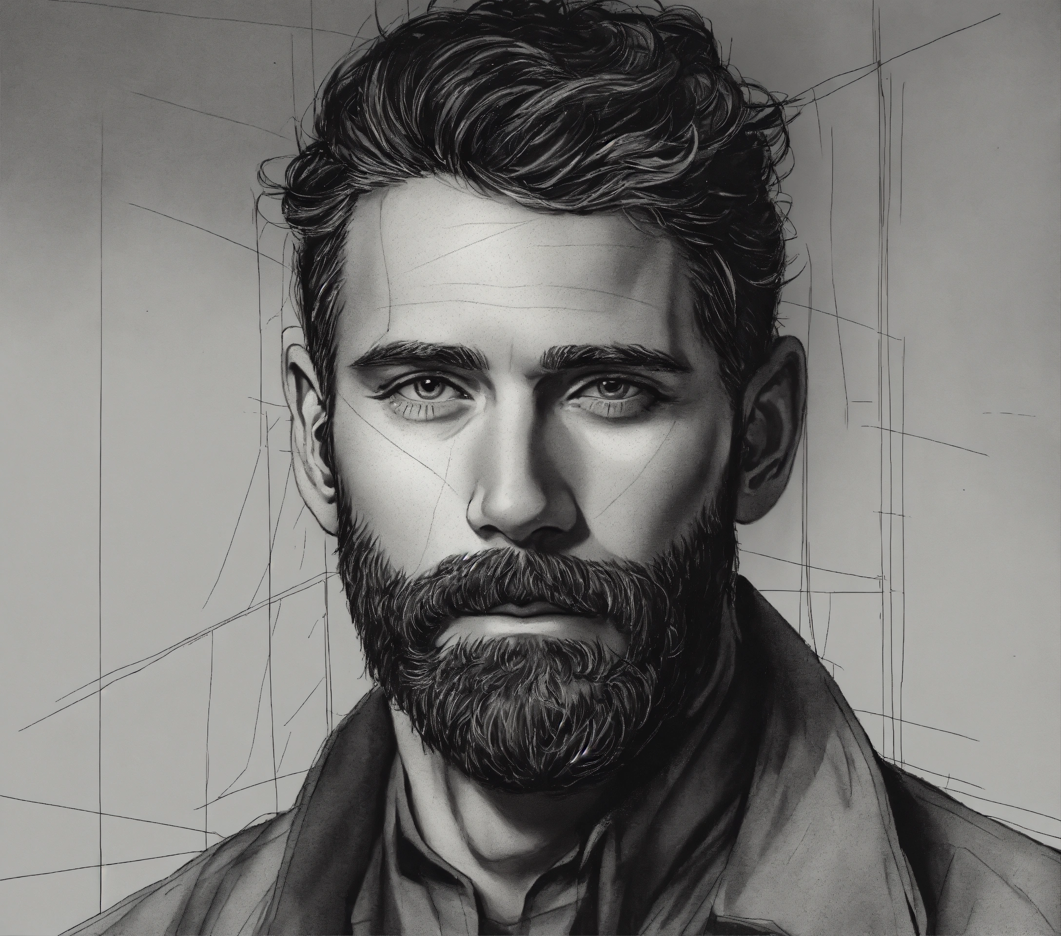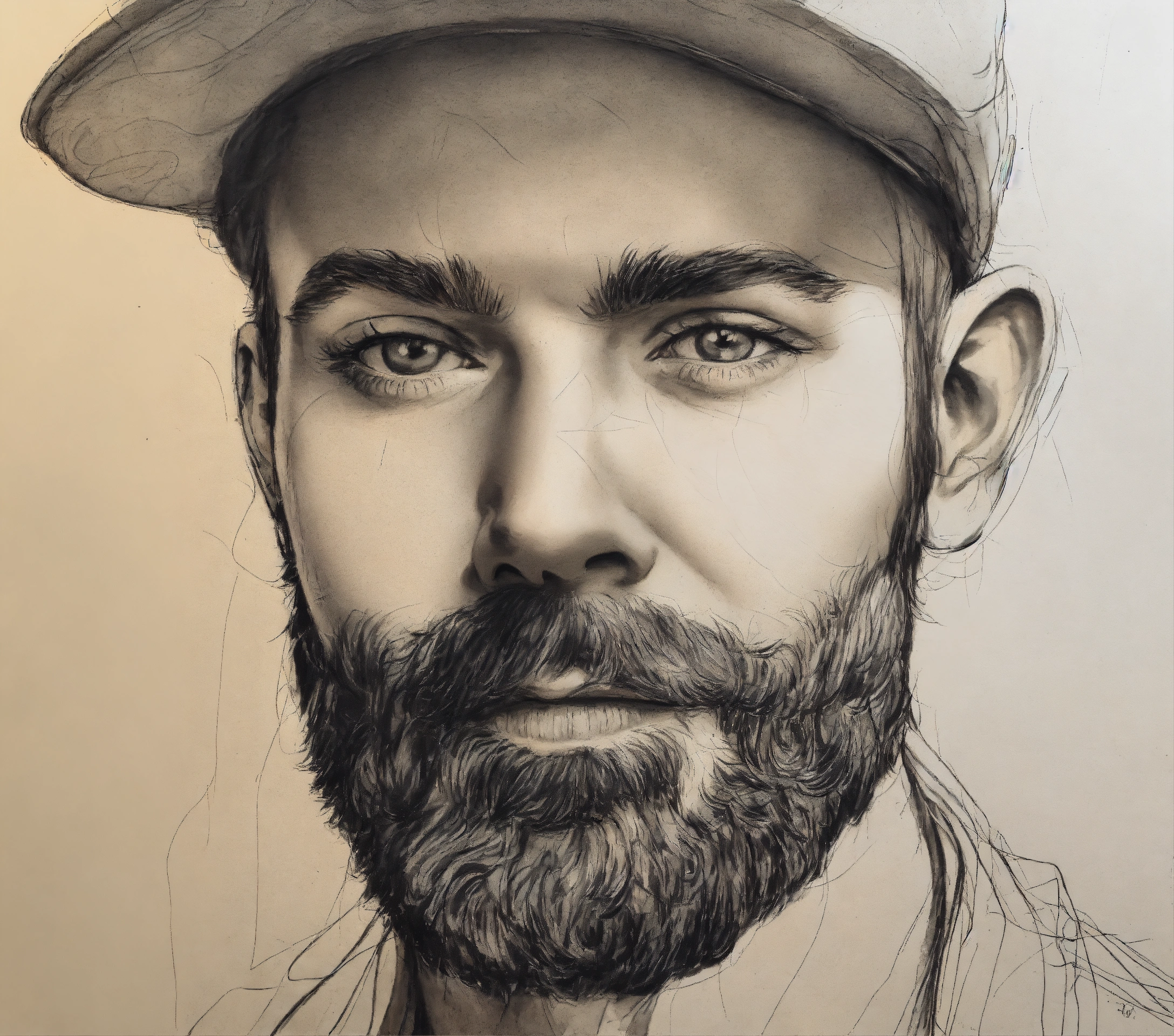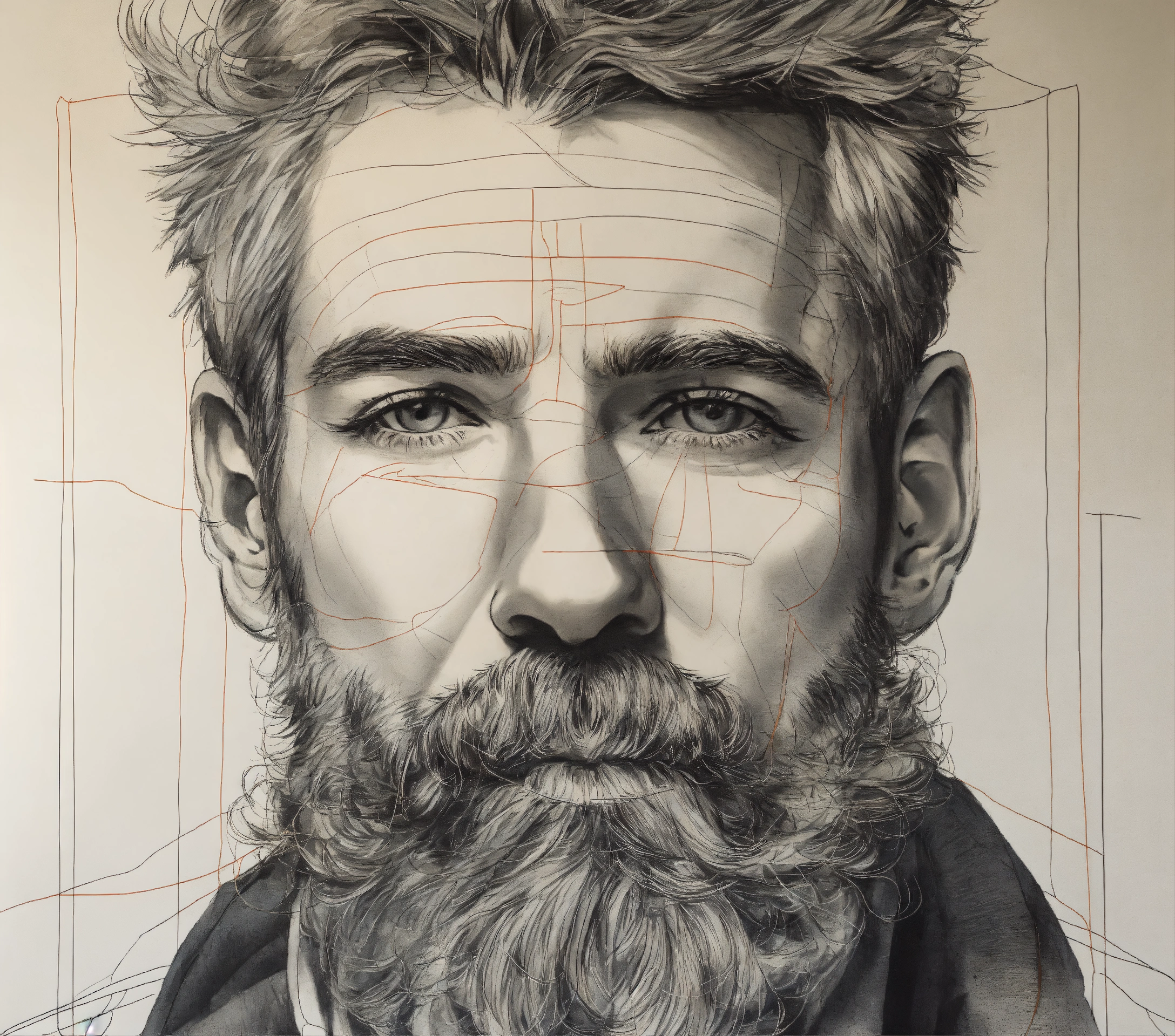 Un portrait en style "one line art" d'un homme dans la trentaine réalisé avec un crayon
