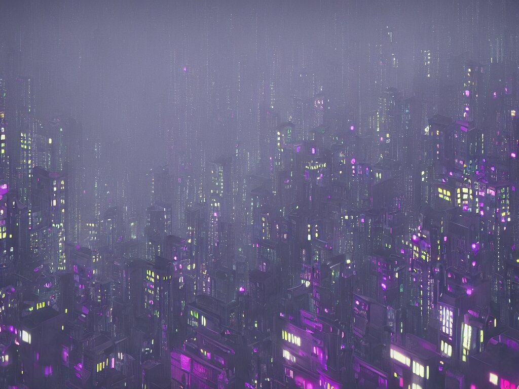 Blade runner city, high quality, cyberpunk, purple, russian doomer panel houses, 5 0 mm, bokeh, photorealistic