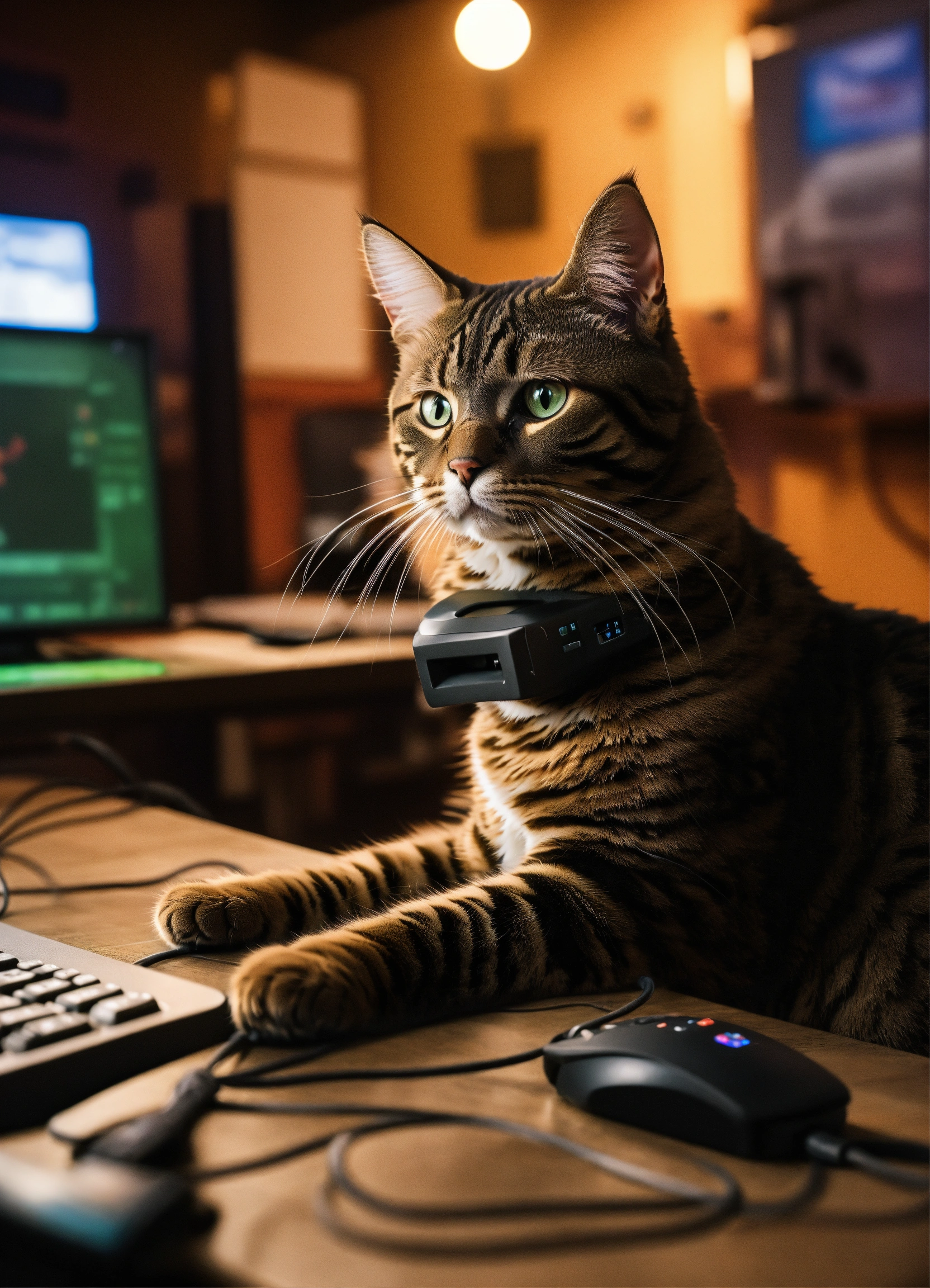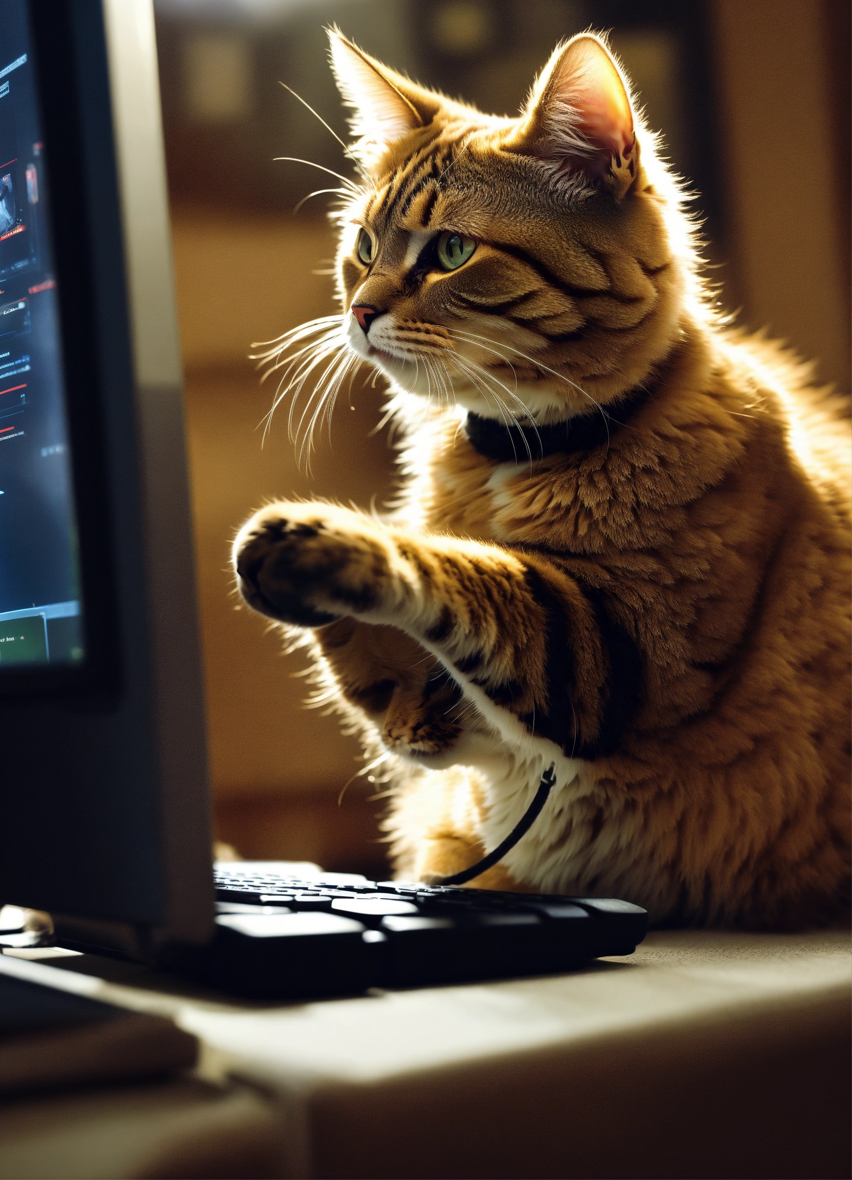 A cat playing counterstrike on a a computer yelling racial slurs