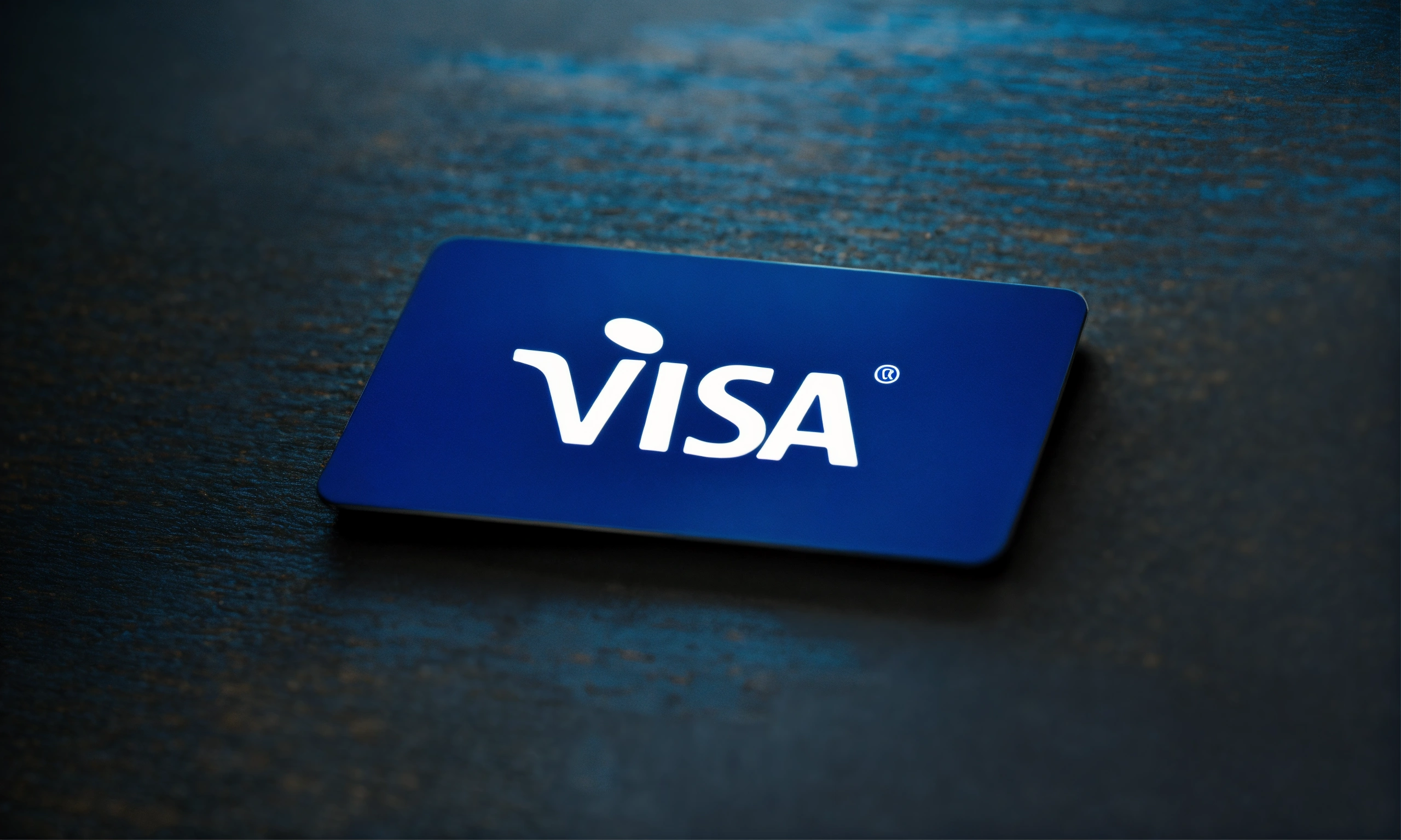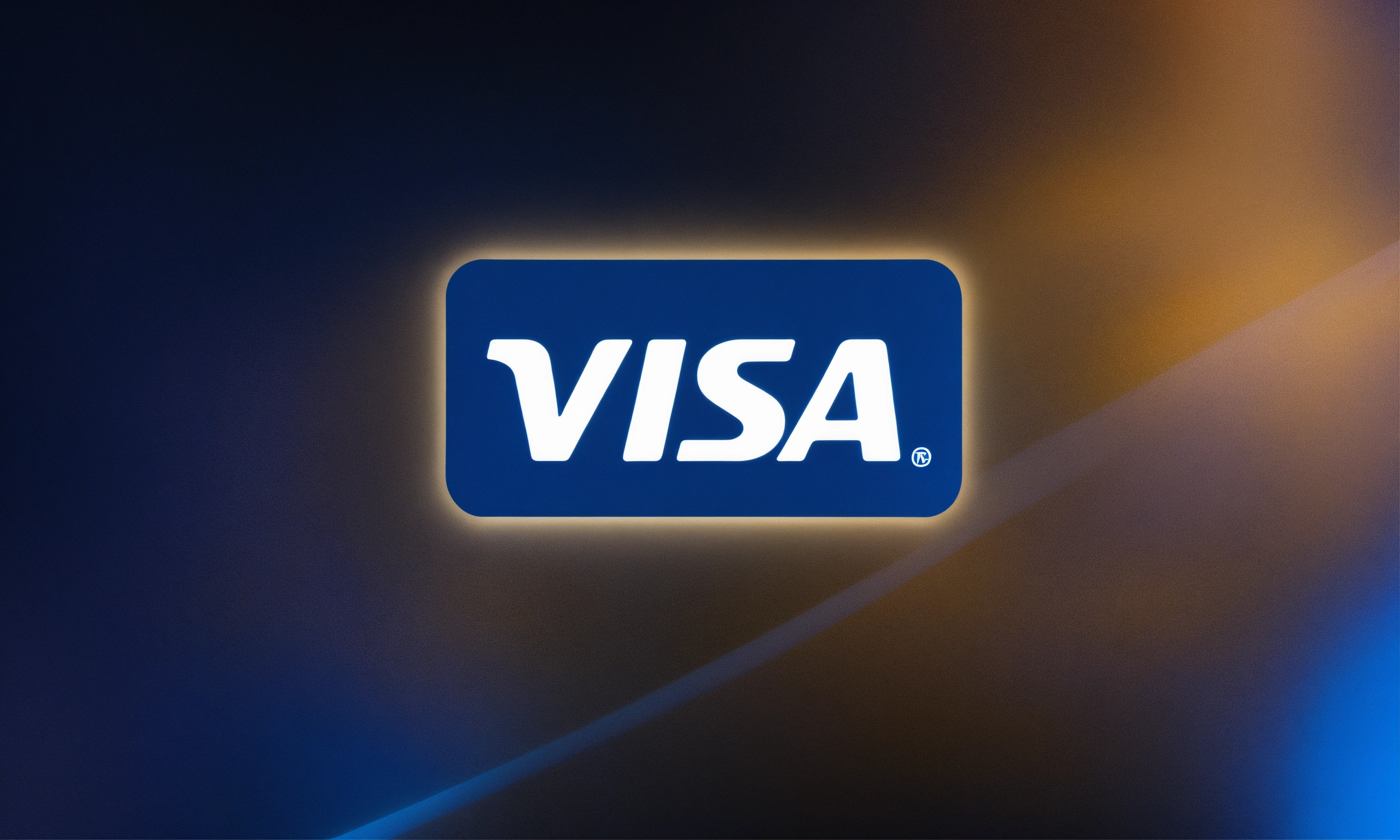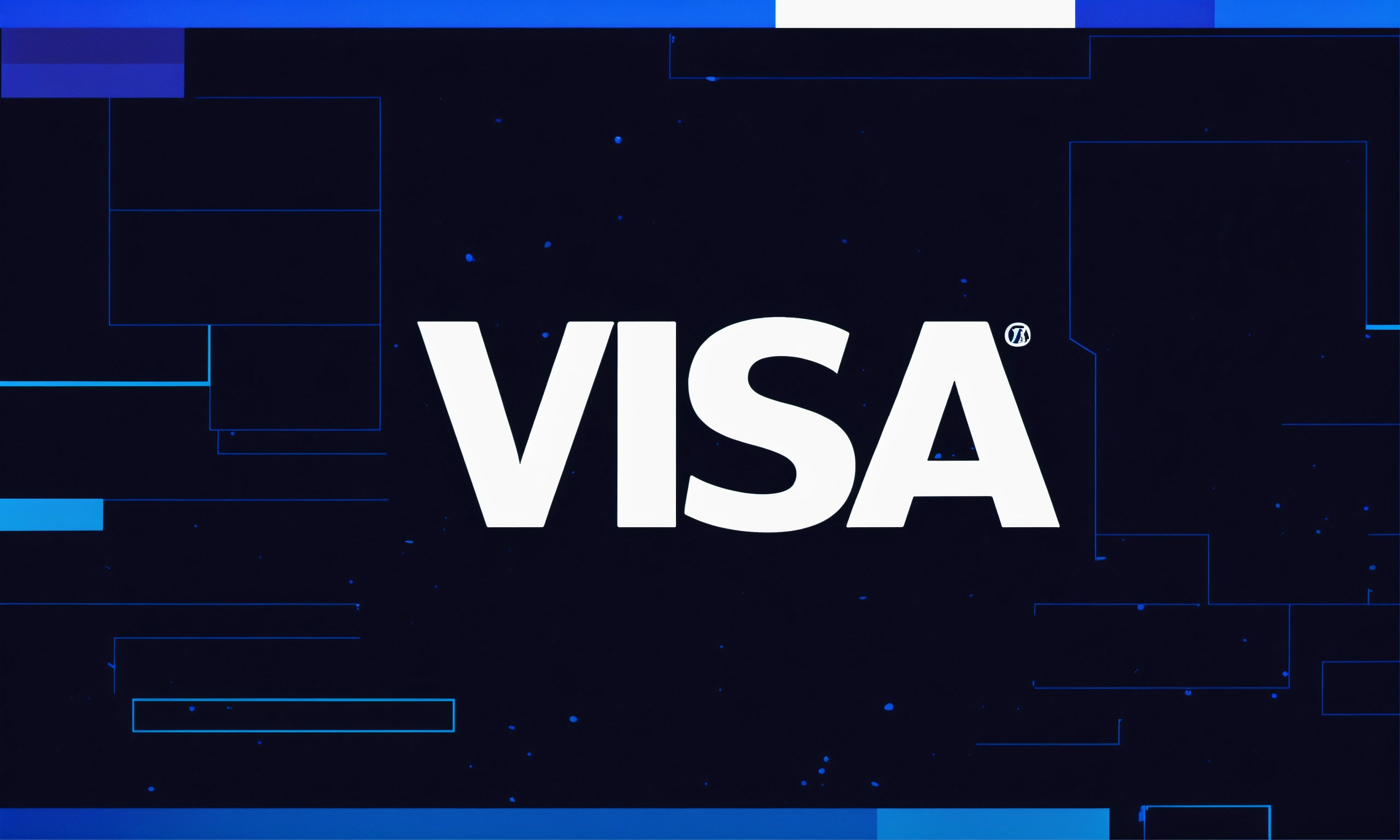 Visa logo on a black and blue background